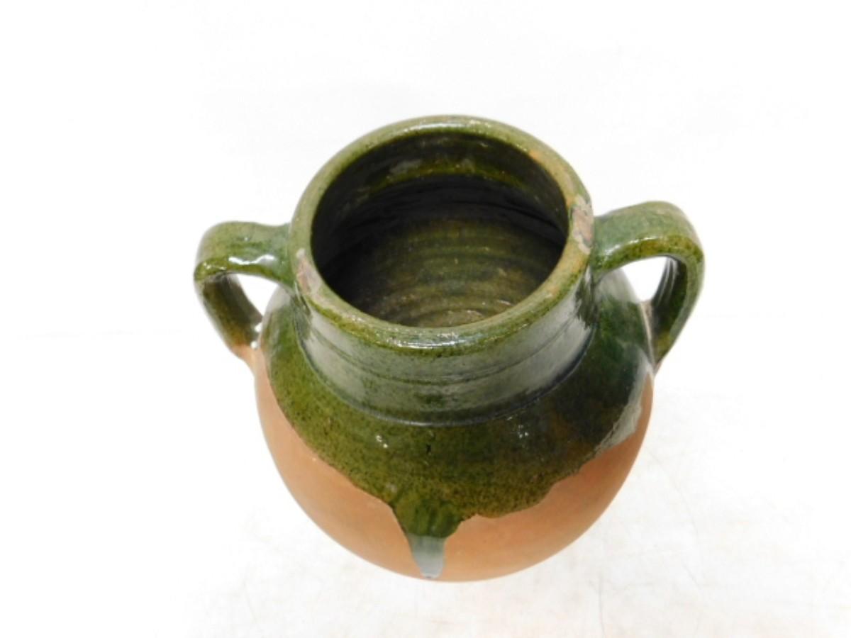 French Green Glaze Terra Cotta Double Handled Confit Pot   (H)