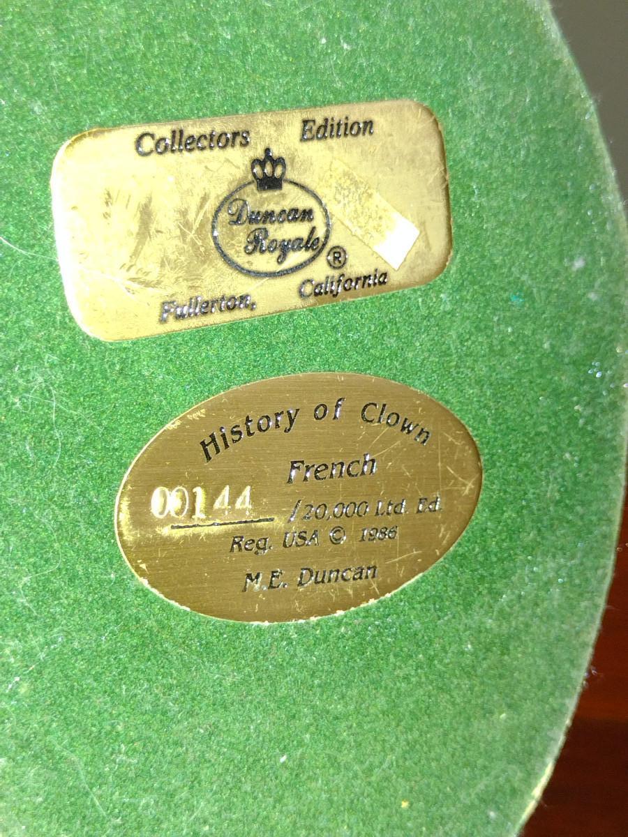 "French" History of Clown by Duncan Royale Vintage Figurine (1986)- Limited Edition and Numbered with Box