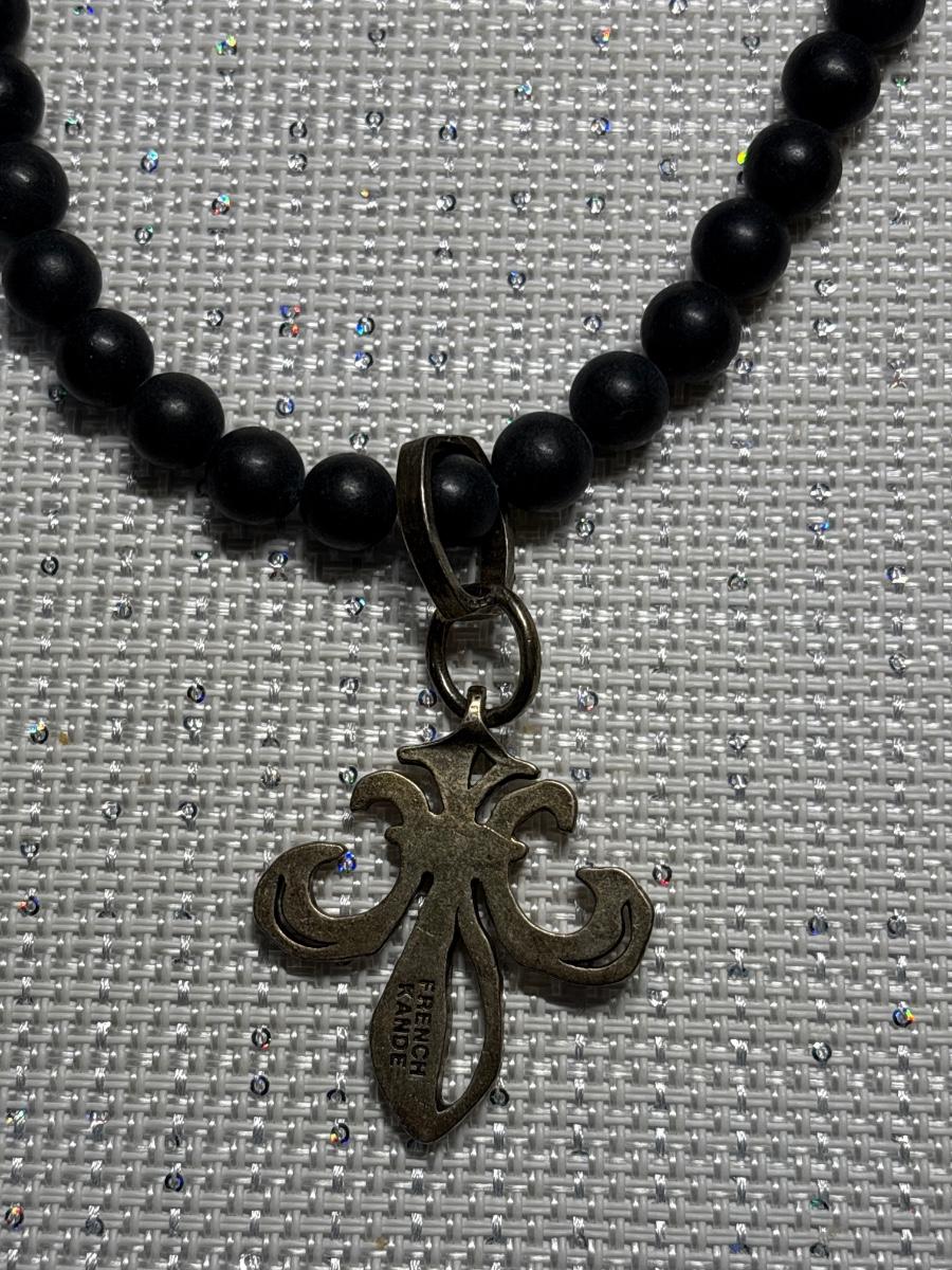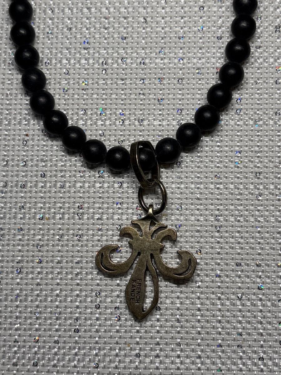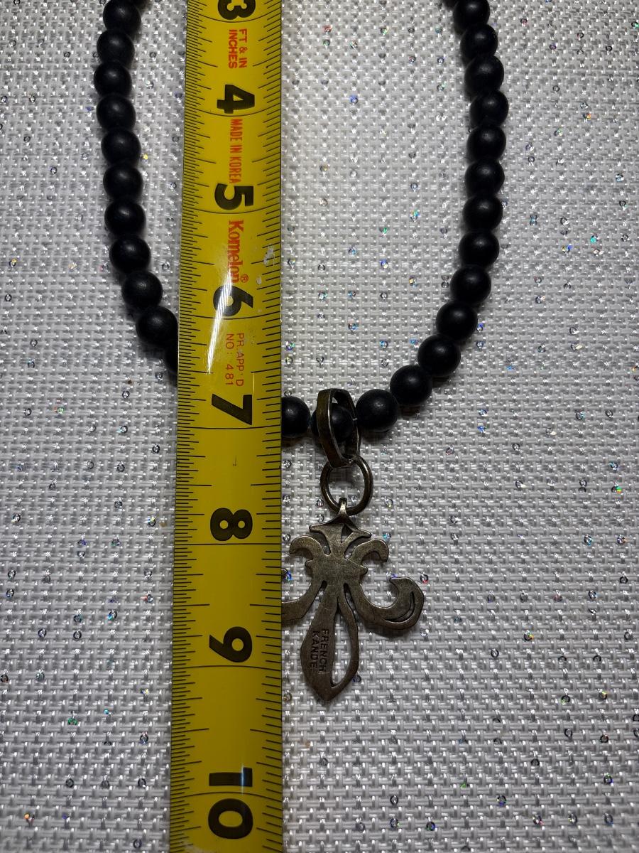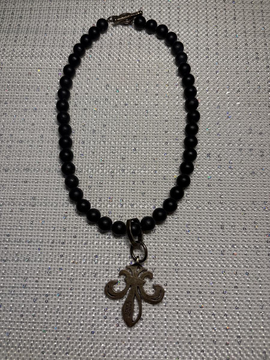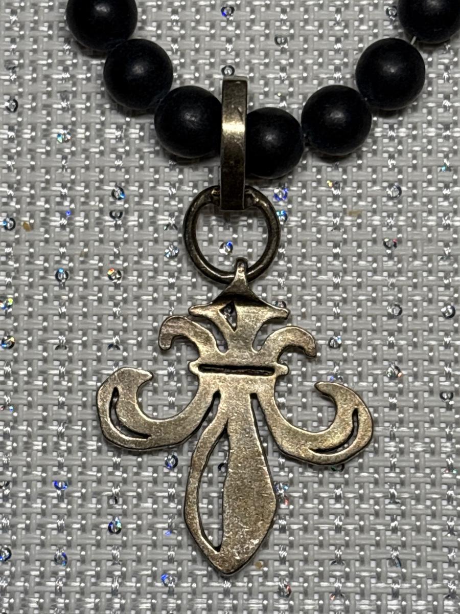 Black beads with silver pendant & toggle clasp