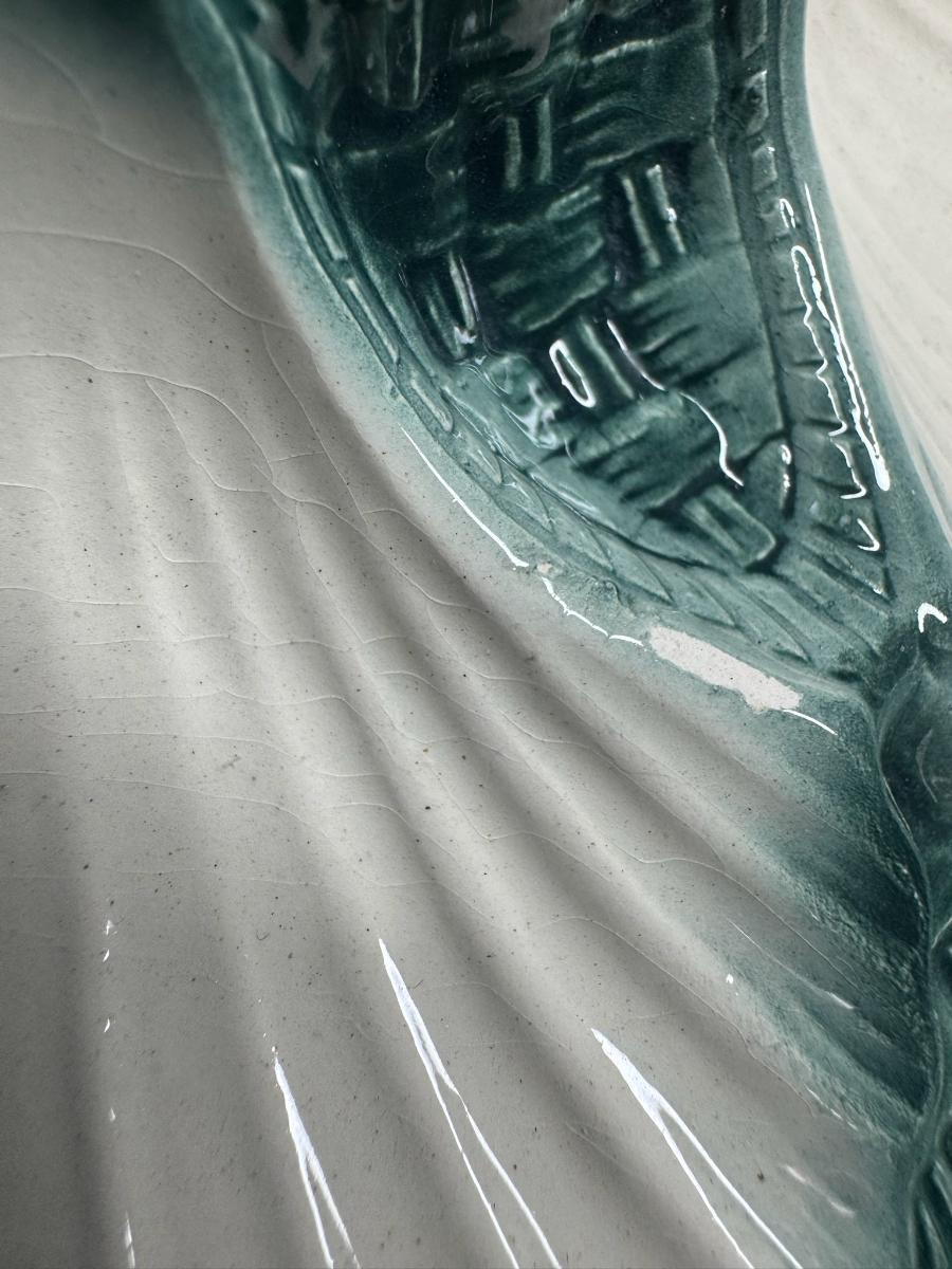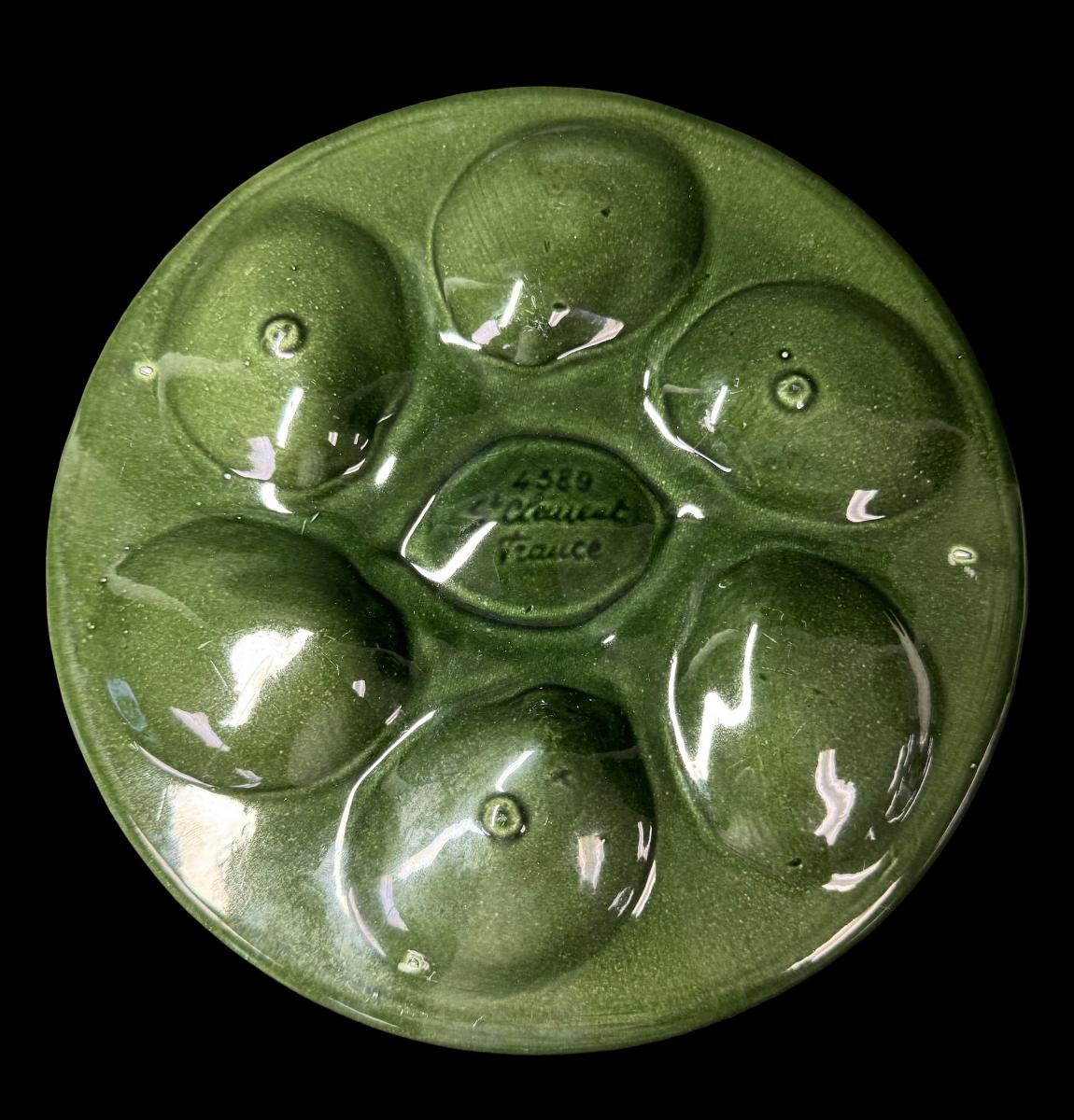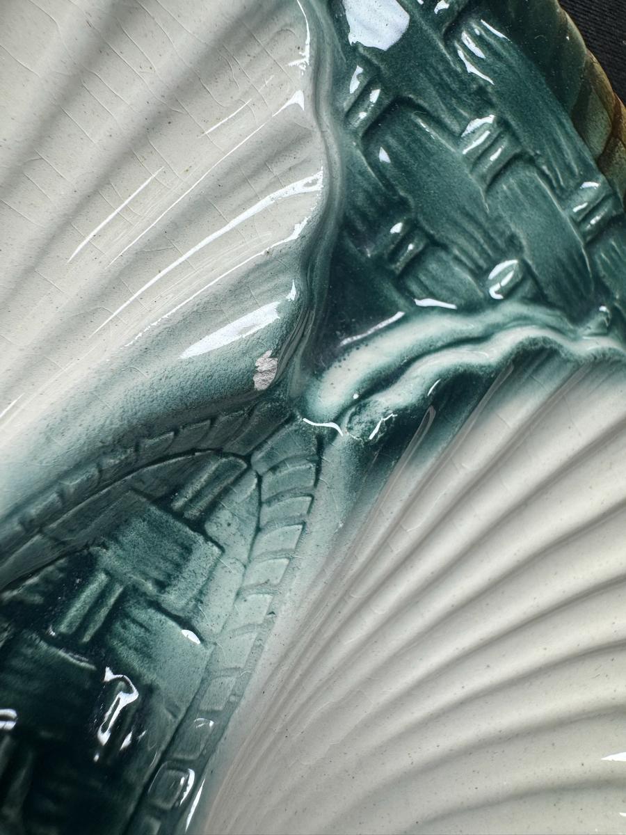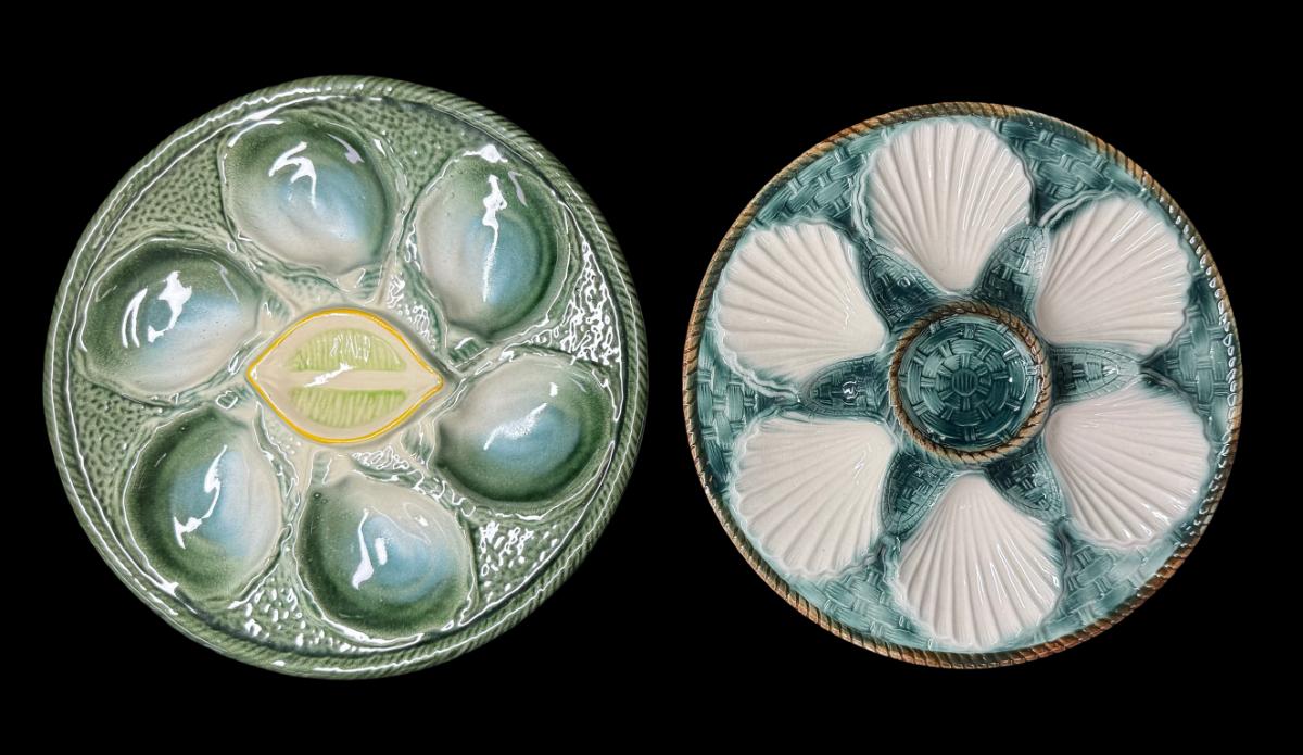 Includes a St. Clement green and yellow plate, and a Longchamp majolica oyster plate. The Longchamp has minor chips near the edge of the shell. No other chips or cracks to note. Measurement of largest: 10” Diameter. Pre-auction estimate: $300-$400. [JL]