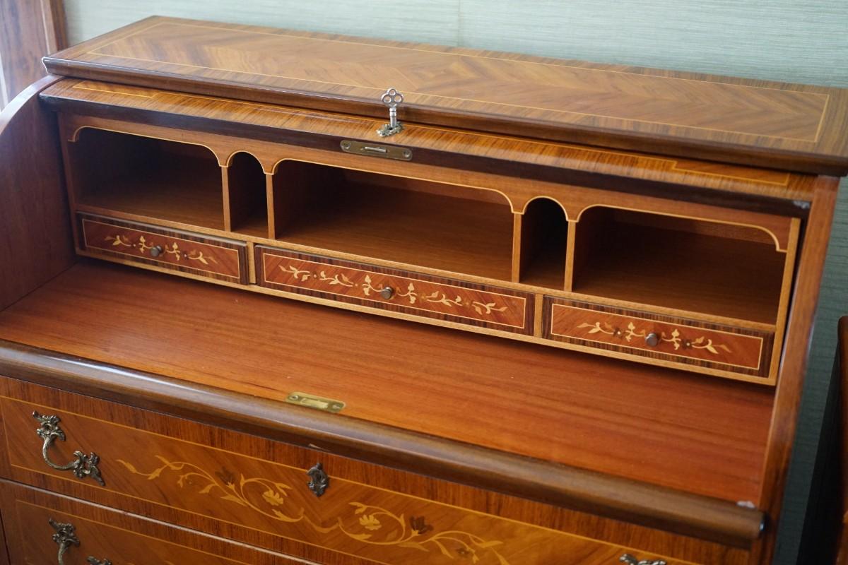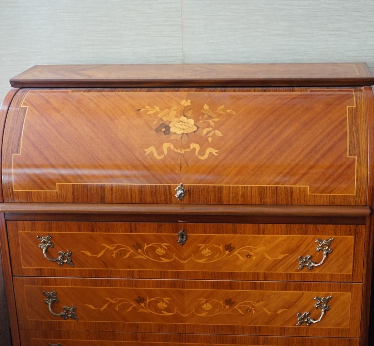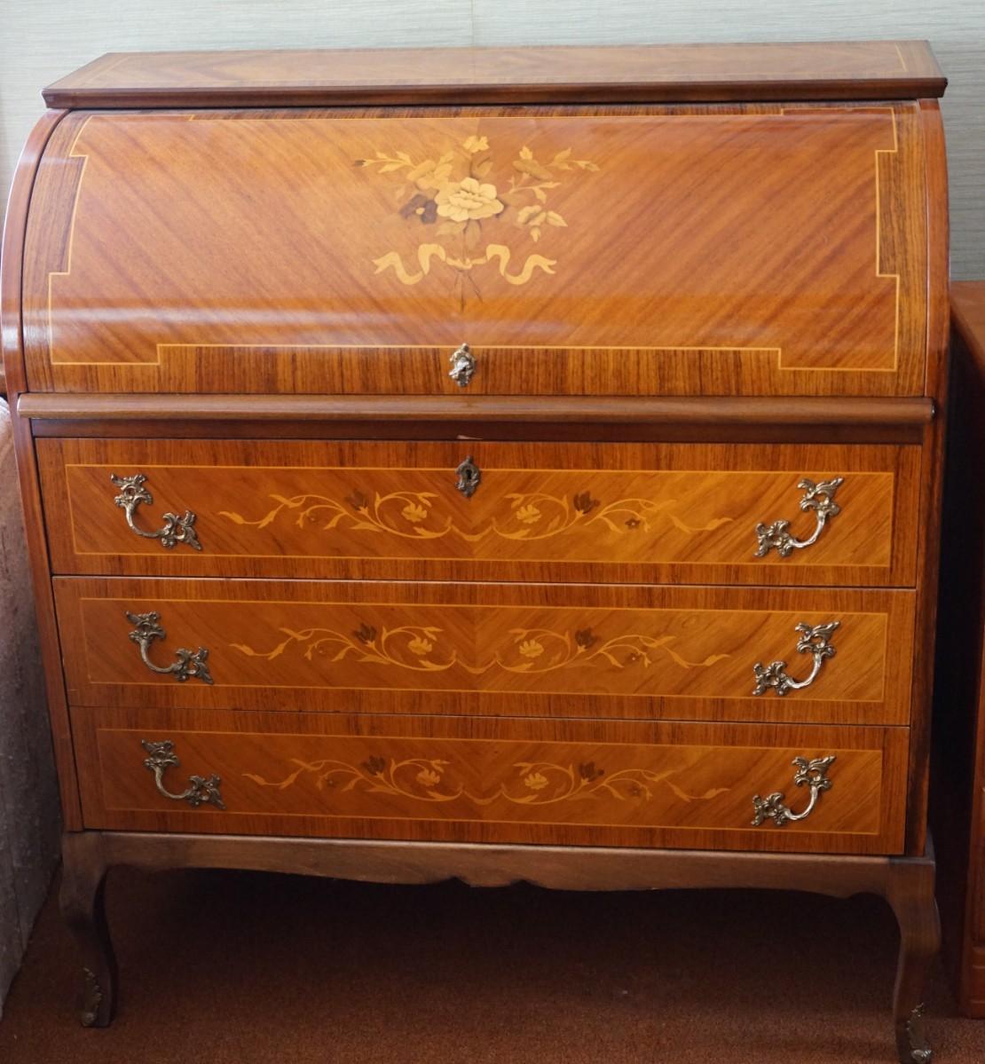 FRENCH MARQUETRY CYCLINDER ROLL TOP DESK VARIOUS WOOD INLAYS