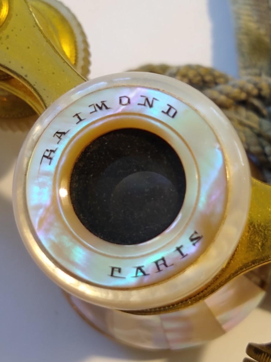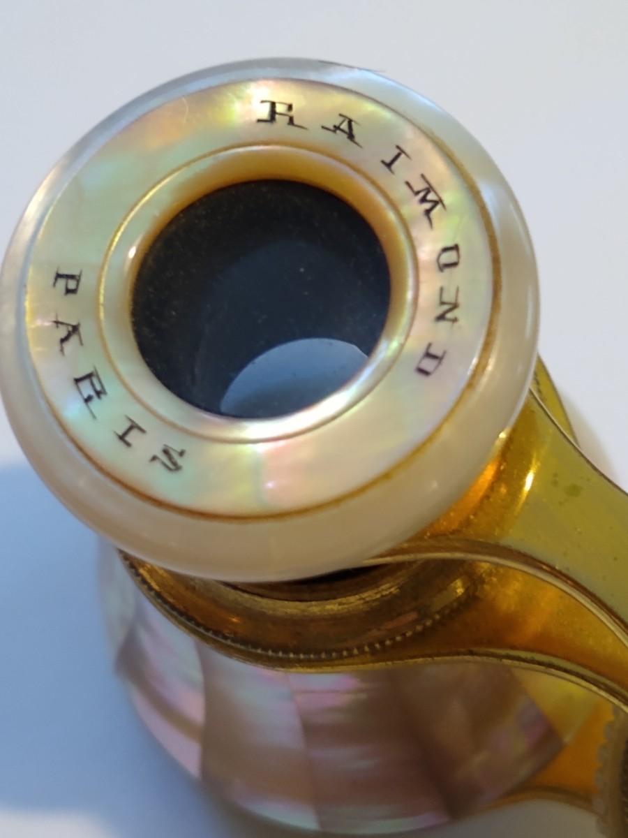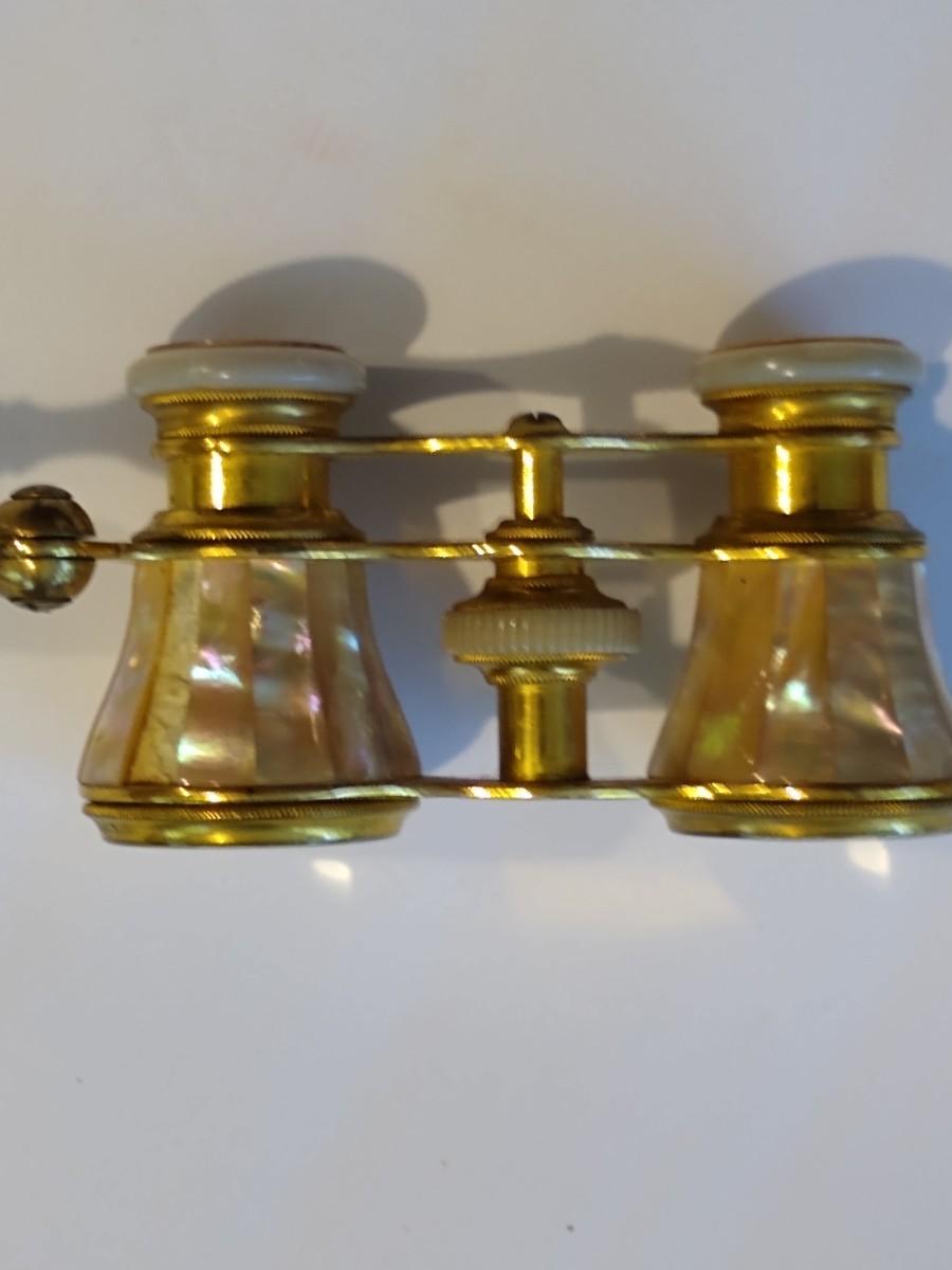 Antique French Opera Glasses Mother Of Pearl in velvet pouch. One panel of mother of pearl missing.