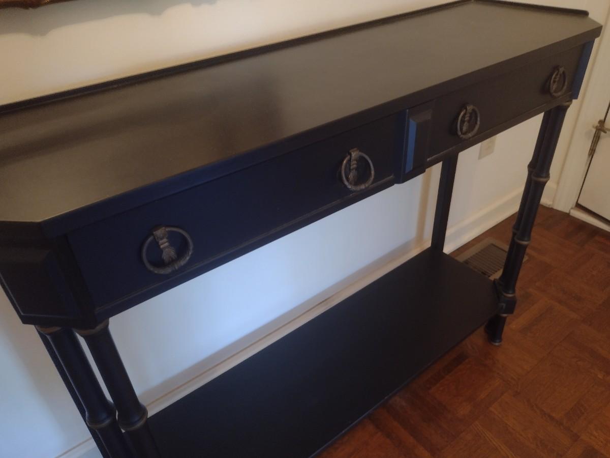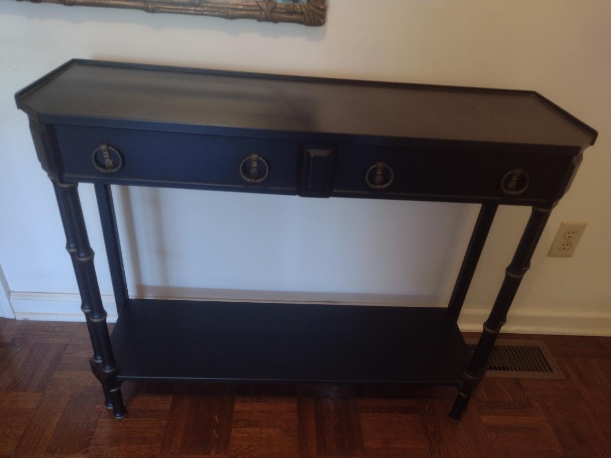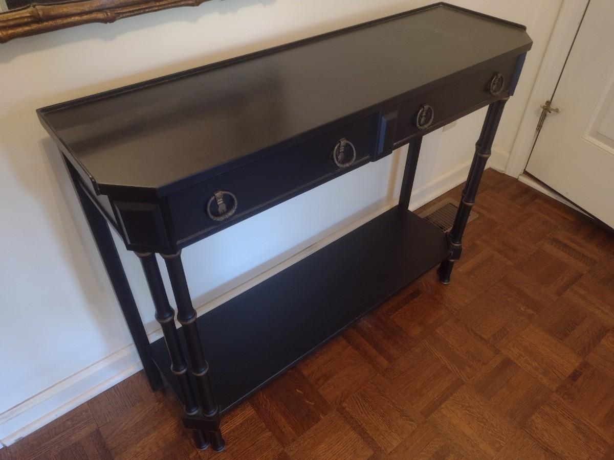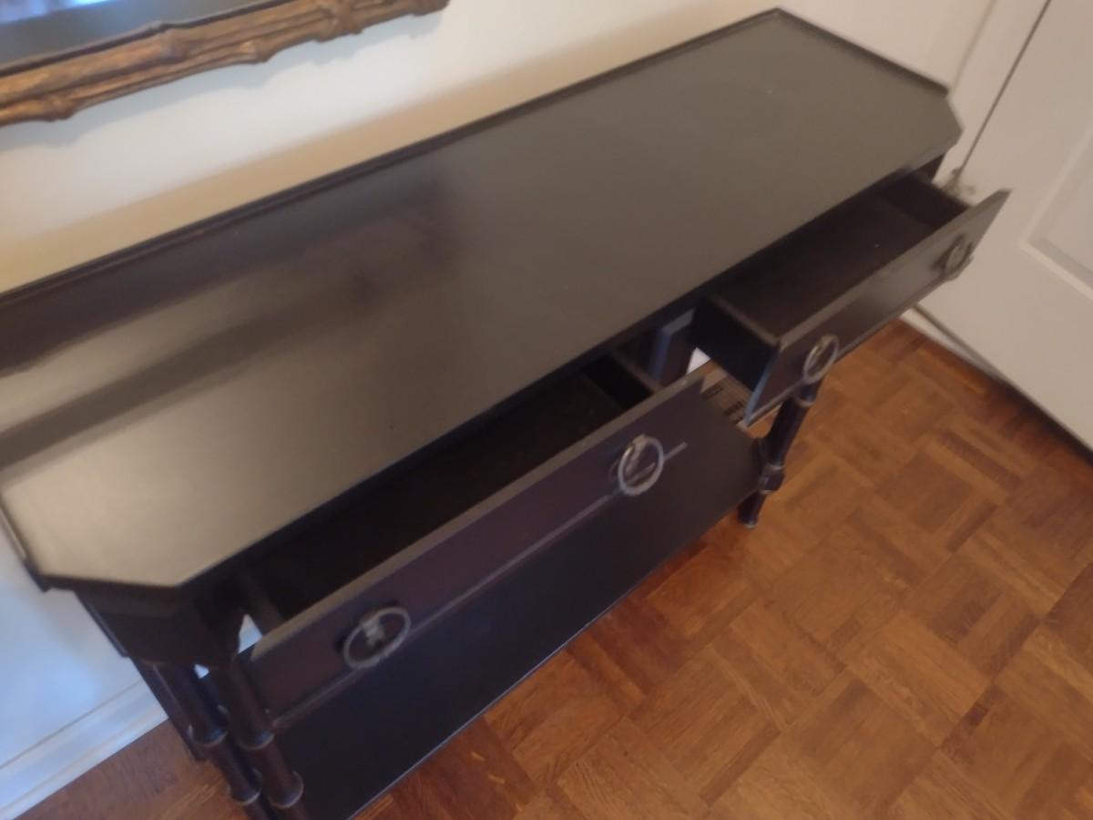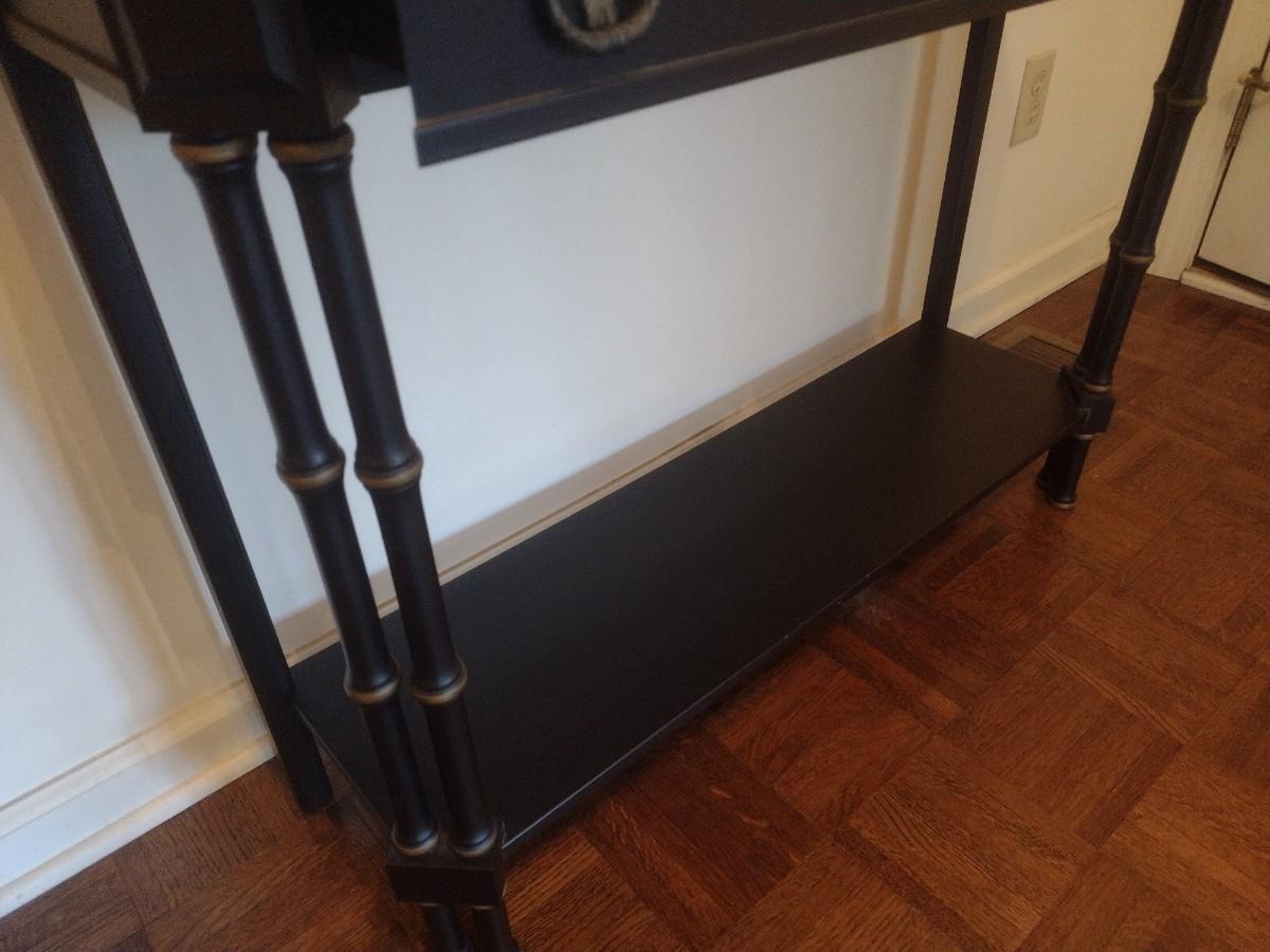 French Provencial Two Tier Console Table Black Finish Double Drawer