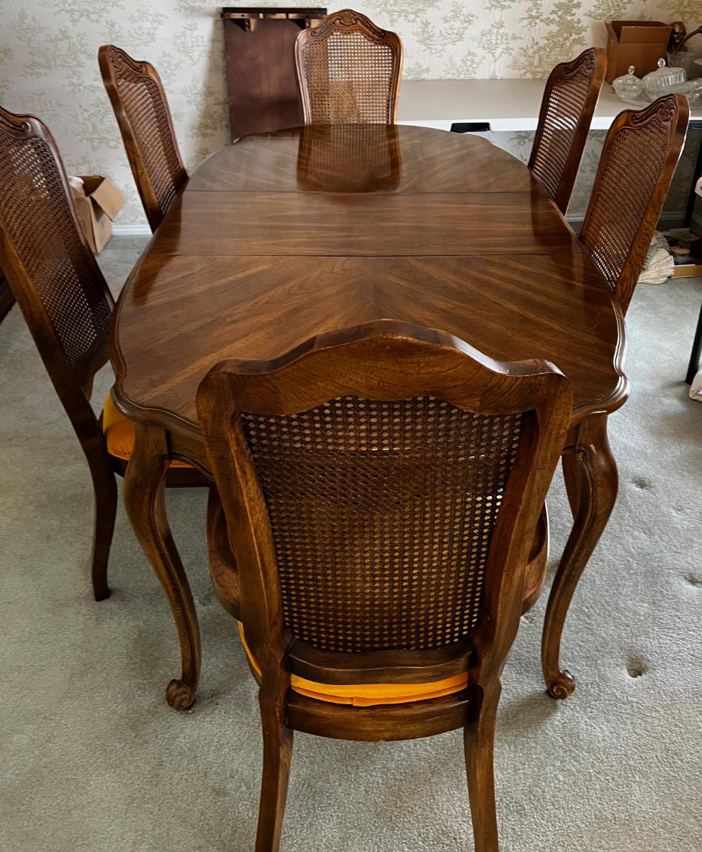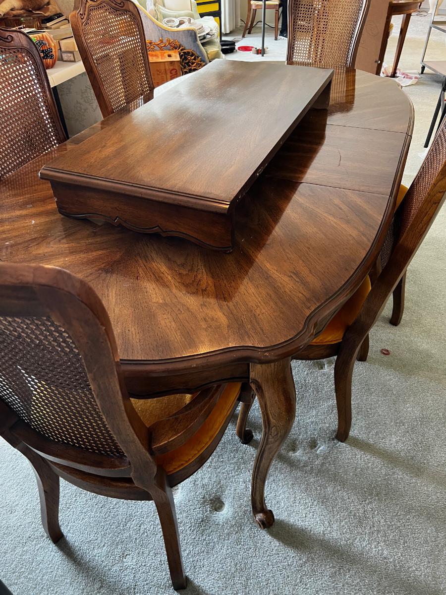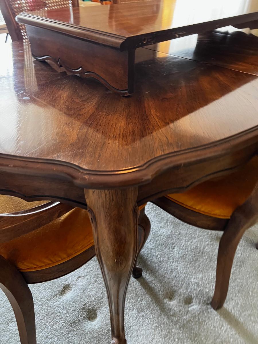 French Provincial Dining Table with 6 chairs and 2 leaves