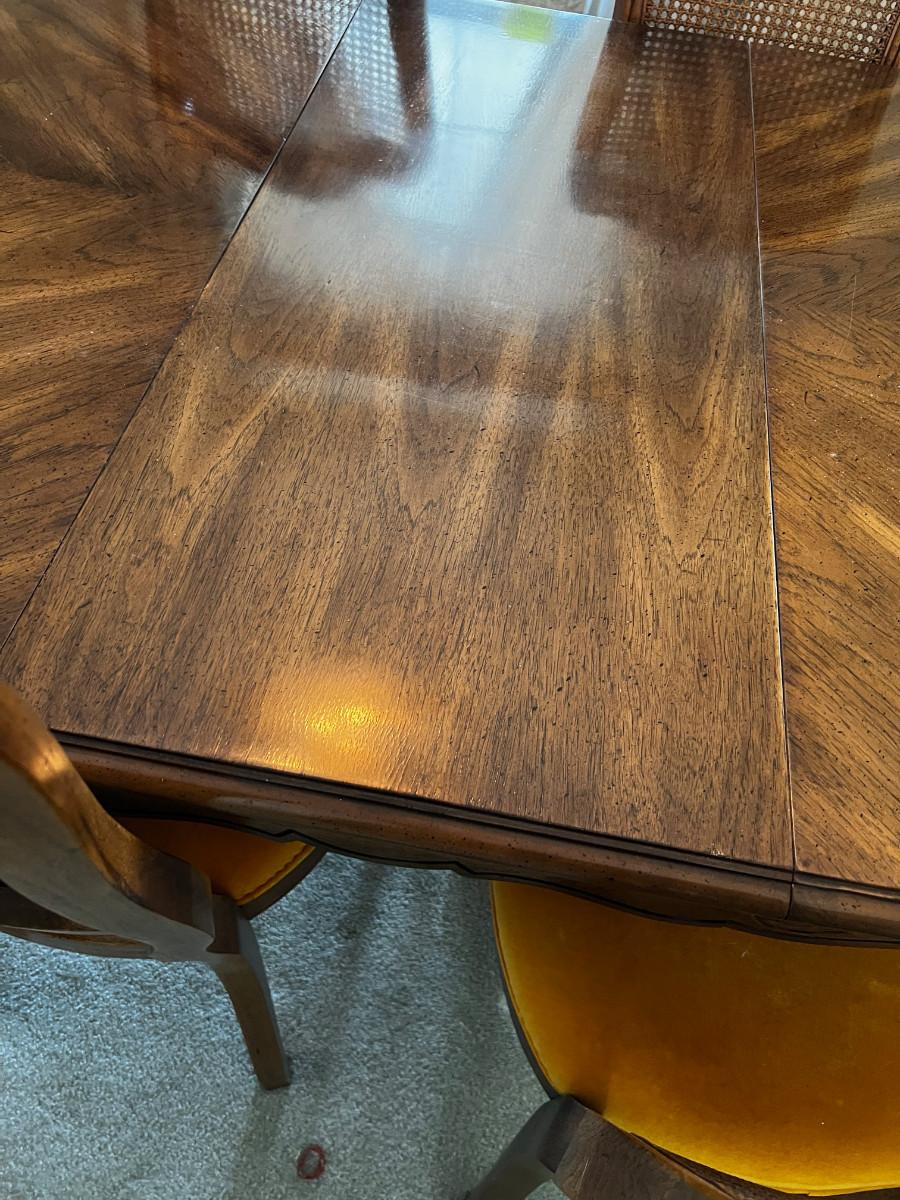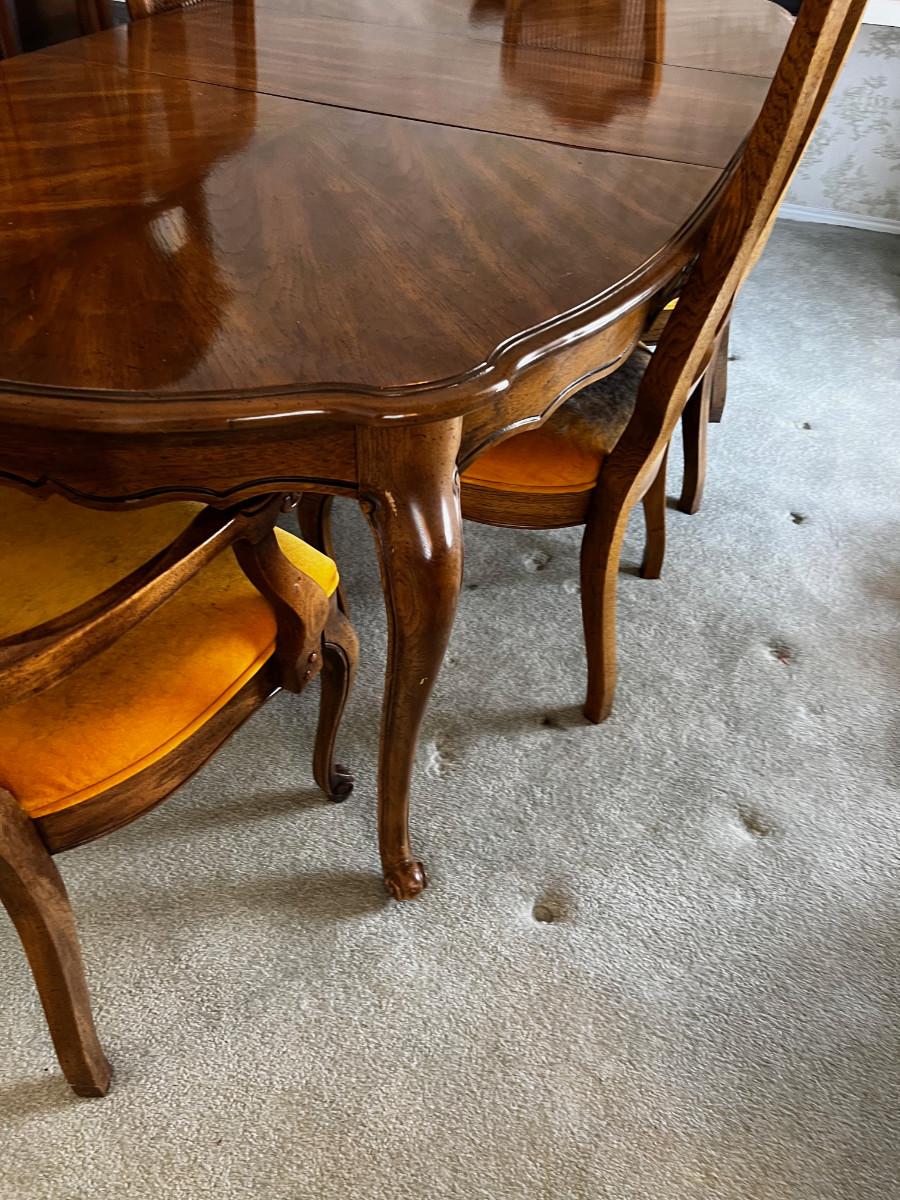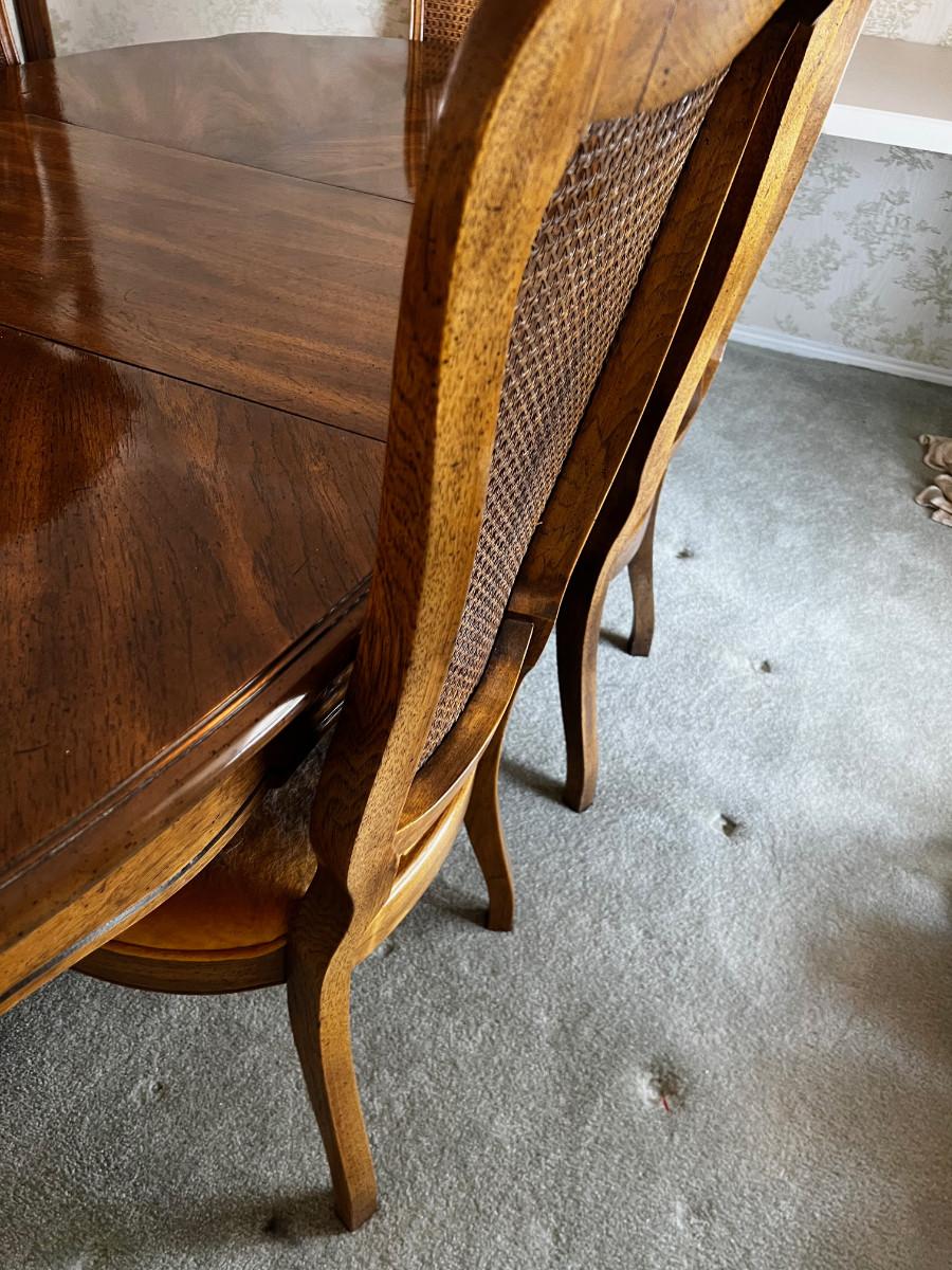 French Provincial Dining Table with 6 chairs and 2 leaves