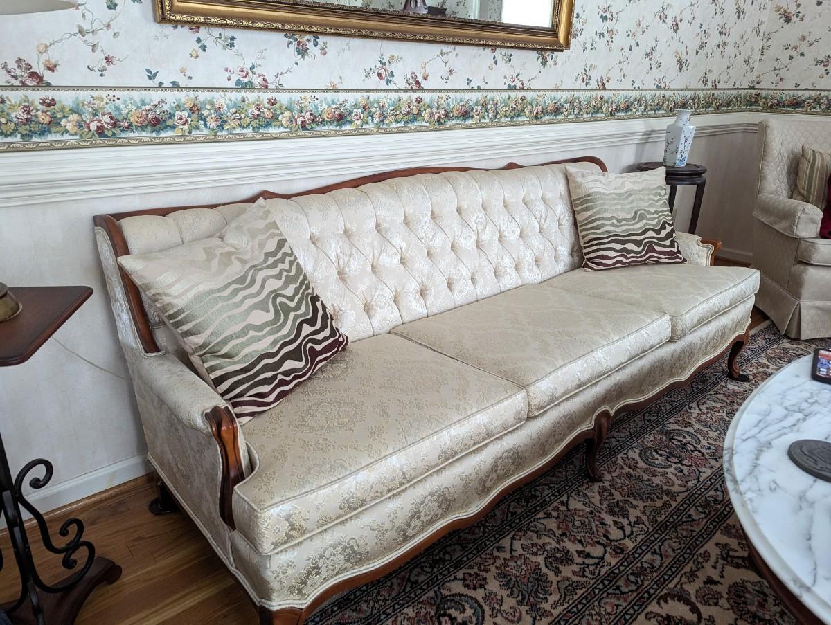 Mid century Vintage French Provincial Sofa with Button Tufted back