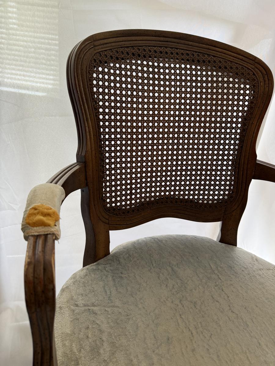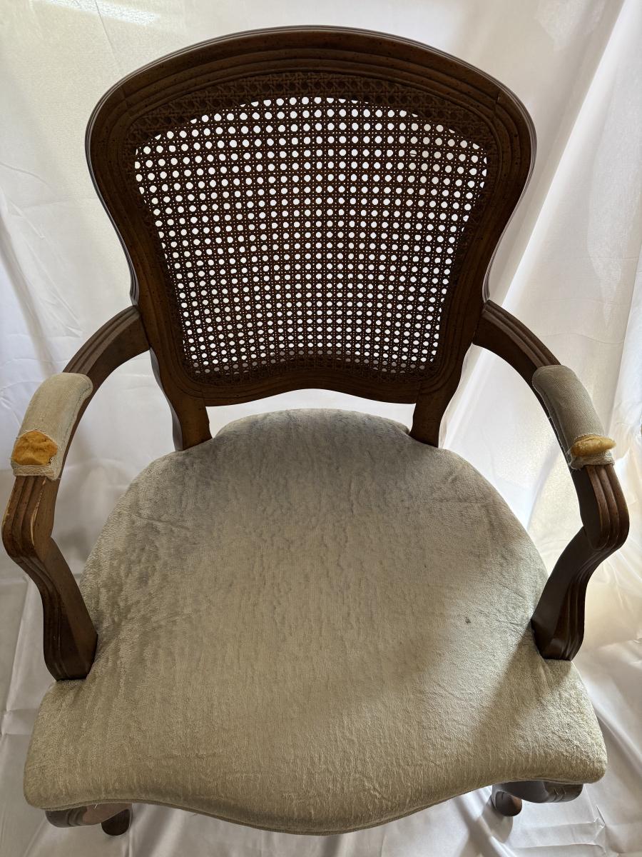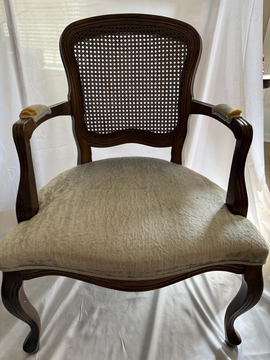 French Provincial style chair w/ cane back. H-34’ W-26’