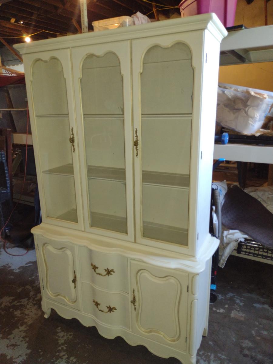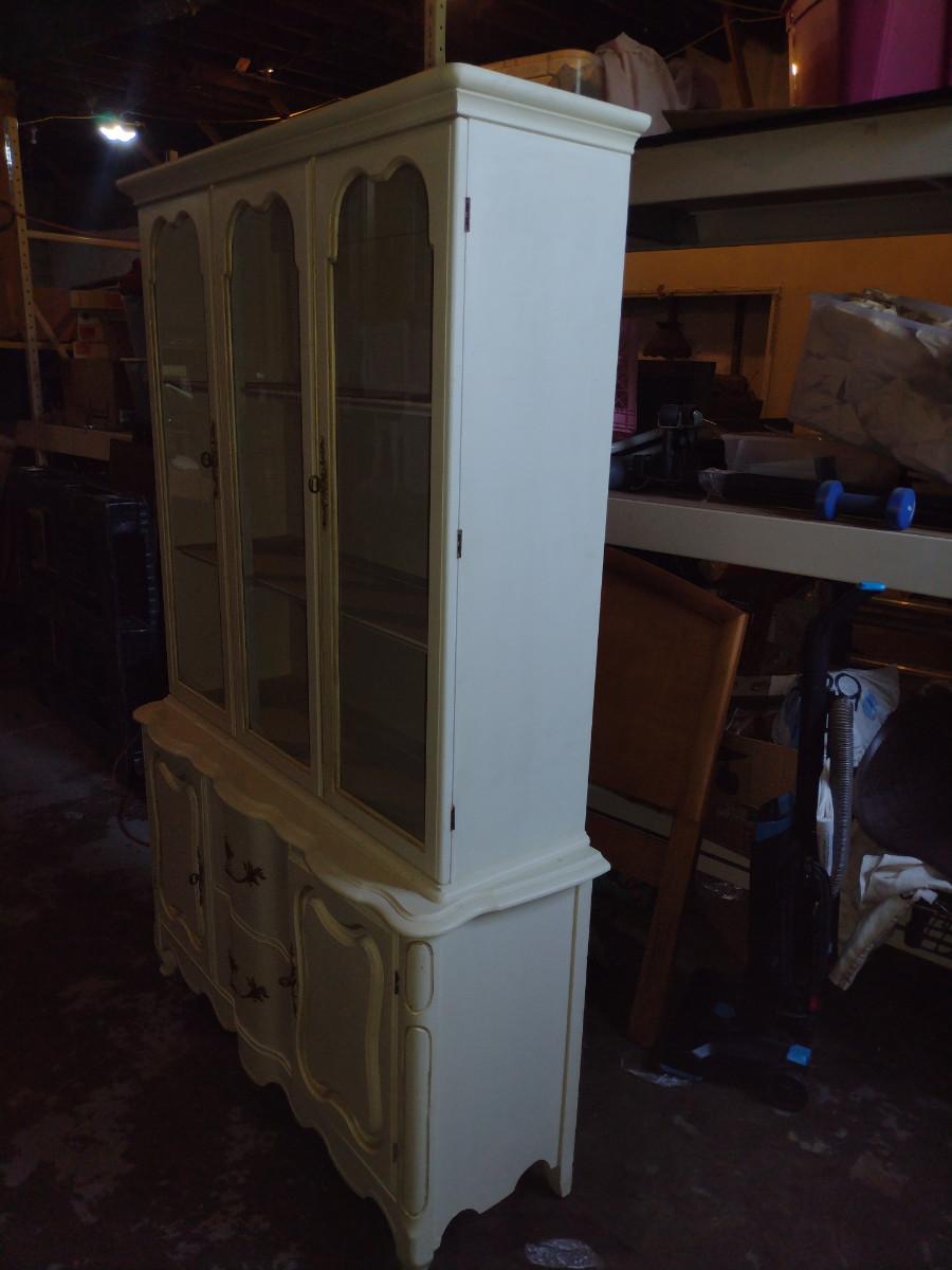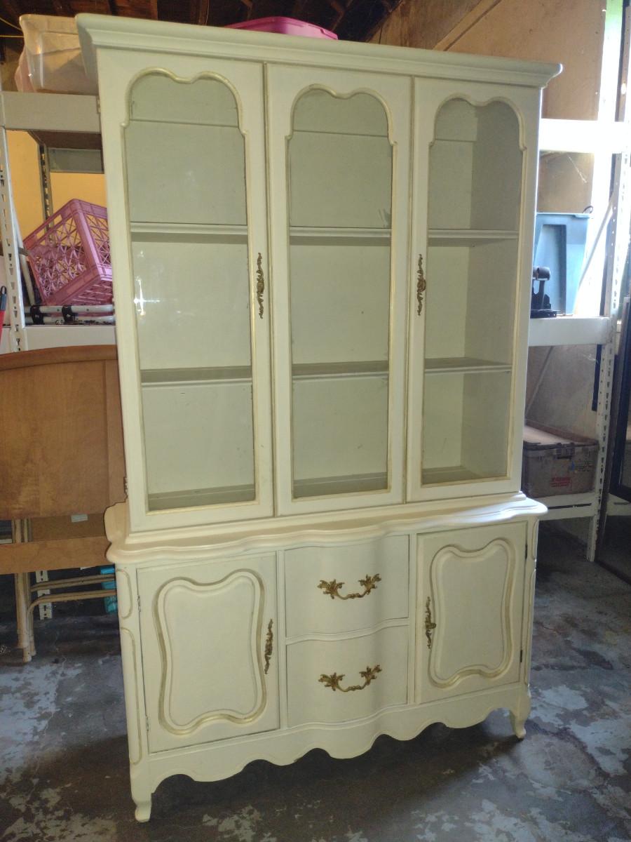 French Provincial Style China Hutch. Measures approx 45" x 15 1/2" x 71 1/2" tall. Item is one piece.
