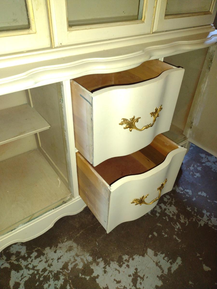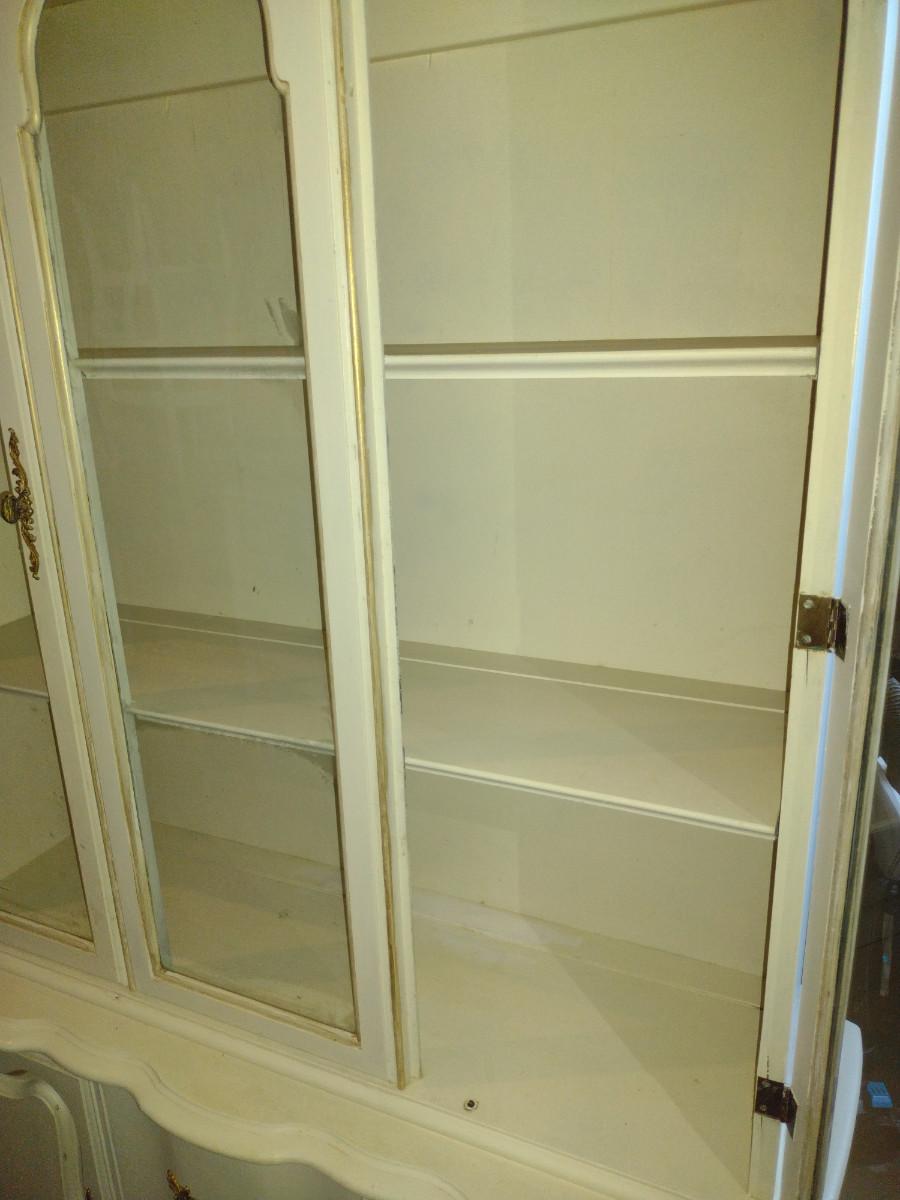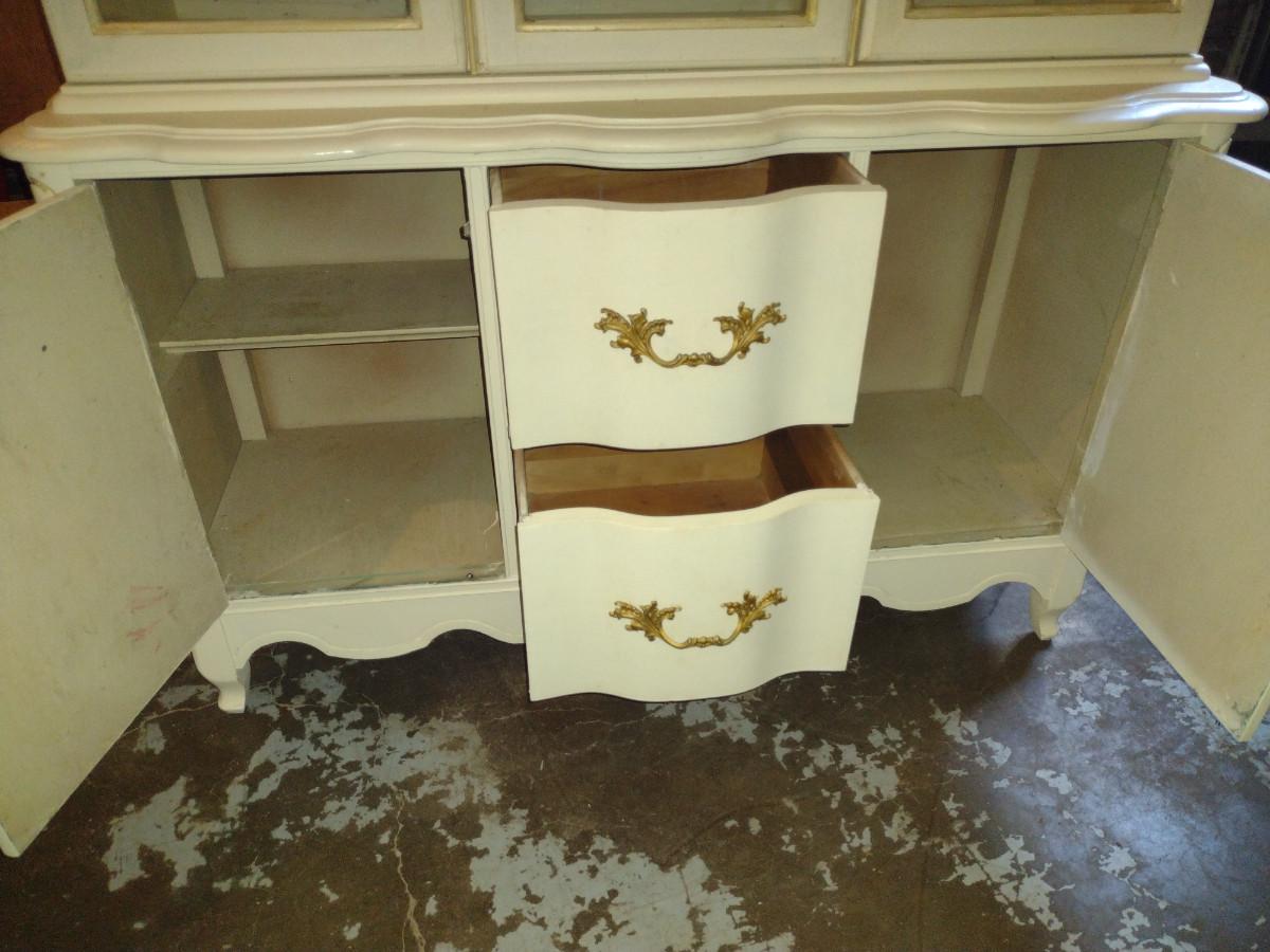 French Provincial Style China Hutch. Measures approx 45" x 15 1/2" x 71 1/2" tall. Item is one piece.