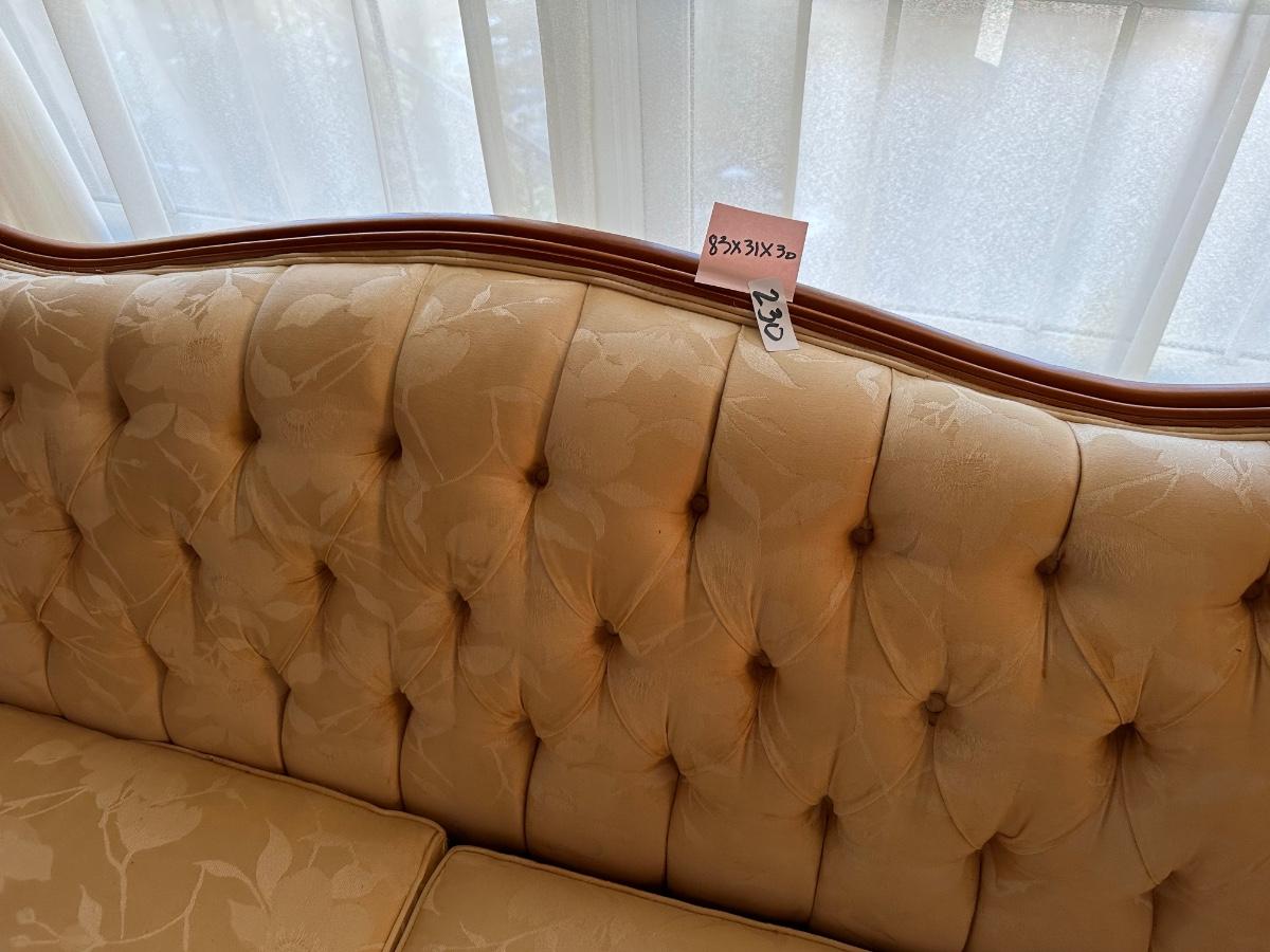 FRENCH PROVINCIAL TUFTED BACK SOFA, 83X31X30 AS PICTURED
