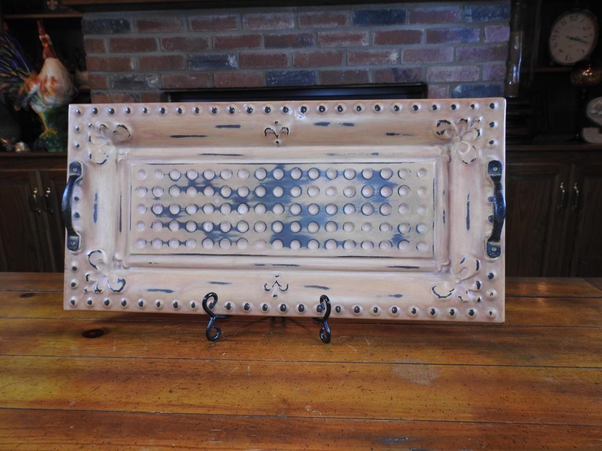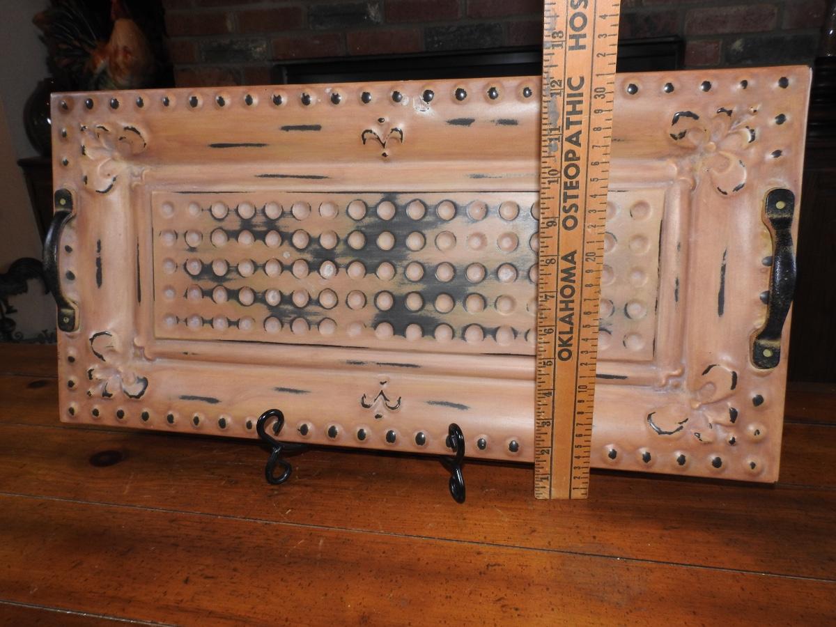 Lightweight, dimpled tray. Could be used for a serving tray or wall decor. measures 12 x 24. Lovely