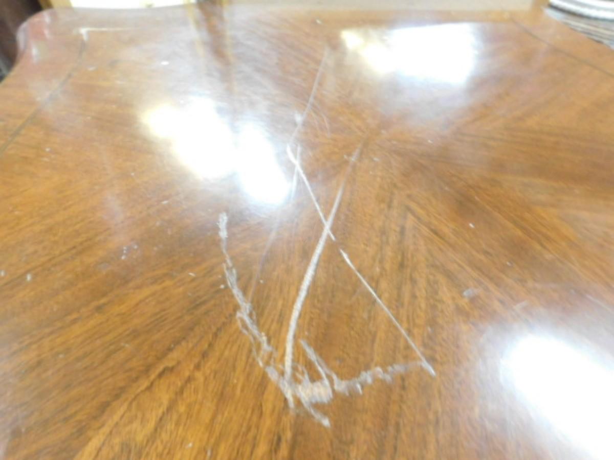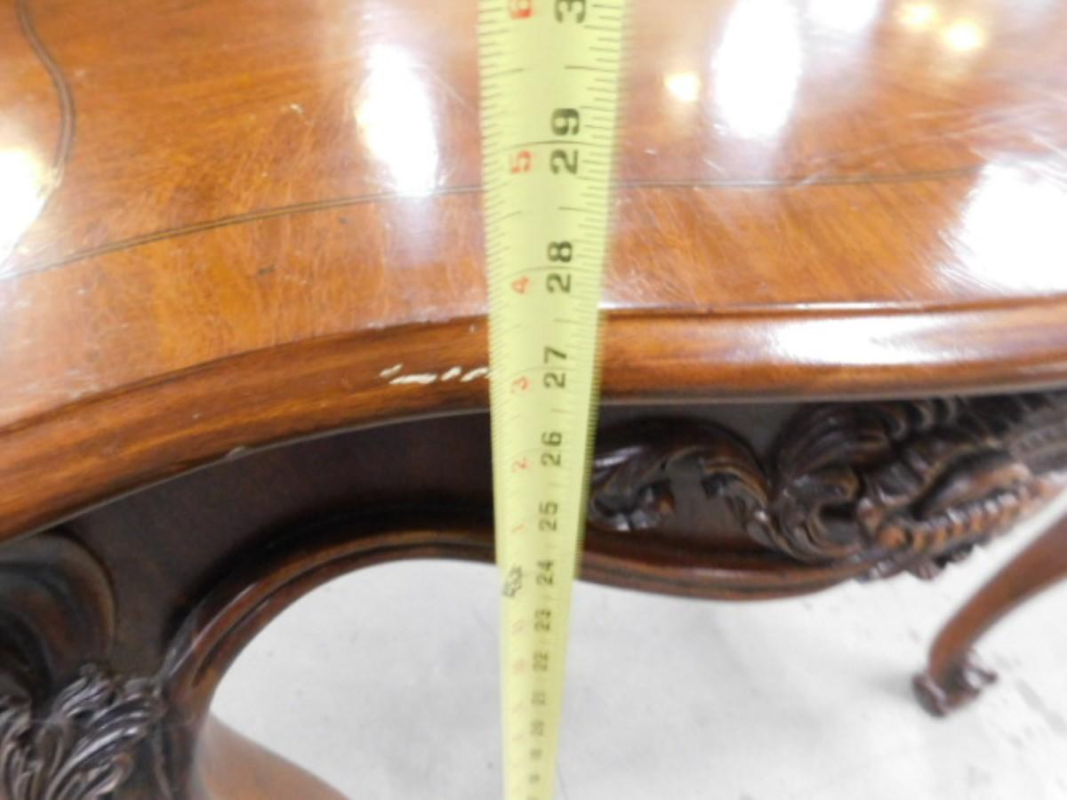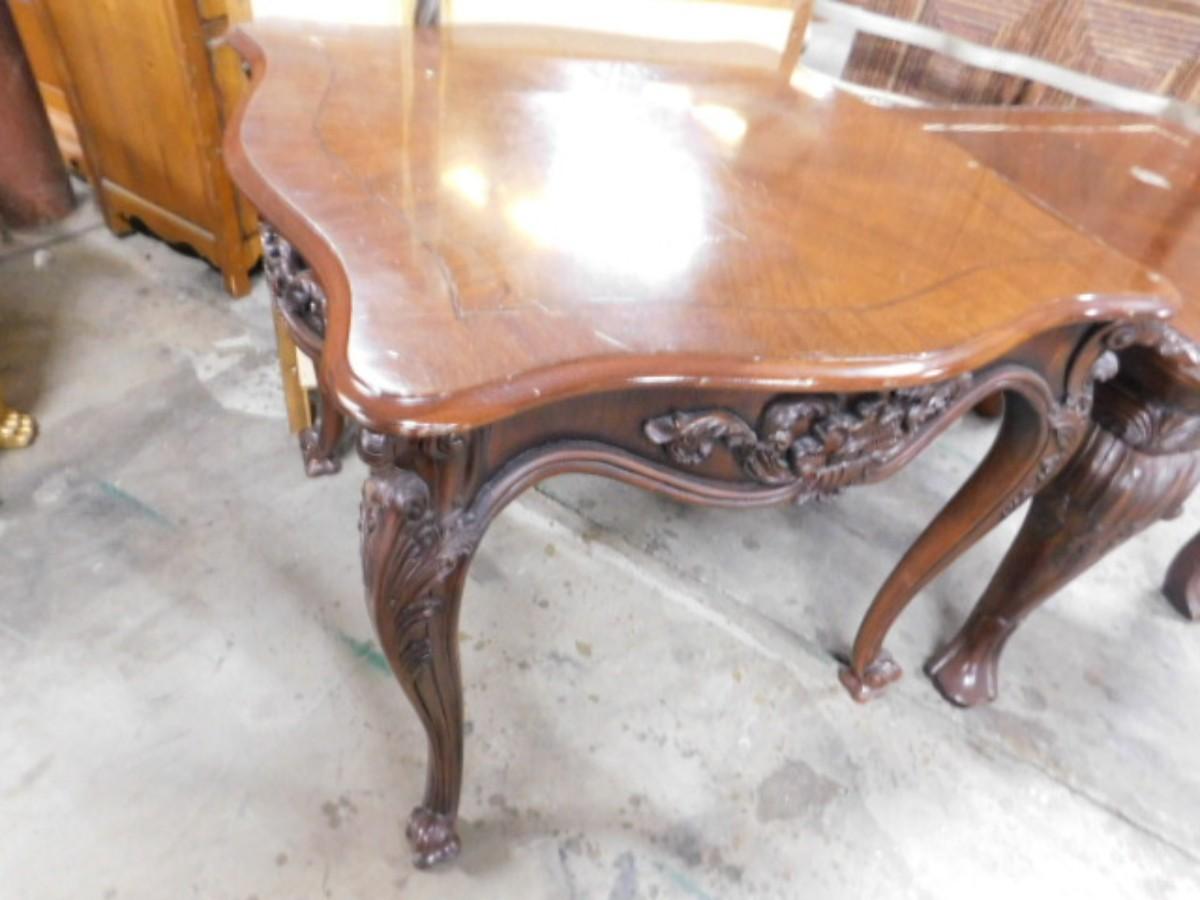 Henredon French Regency Mahogany Finish Side Table with Cabriole Legs Choice B. Has a noticeable scratch on surface as shown. Expect some wear or scratches to the finish. Shipping option available via freight or local mover at Buyer's expense. Buyer must have all shipping scheduled within the stated dates and times of pickup. Recommended local mover is Beaty Bros. Moving 828-201-2982
