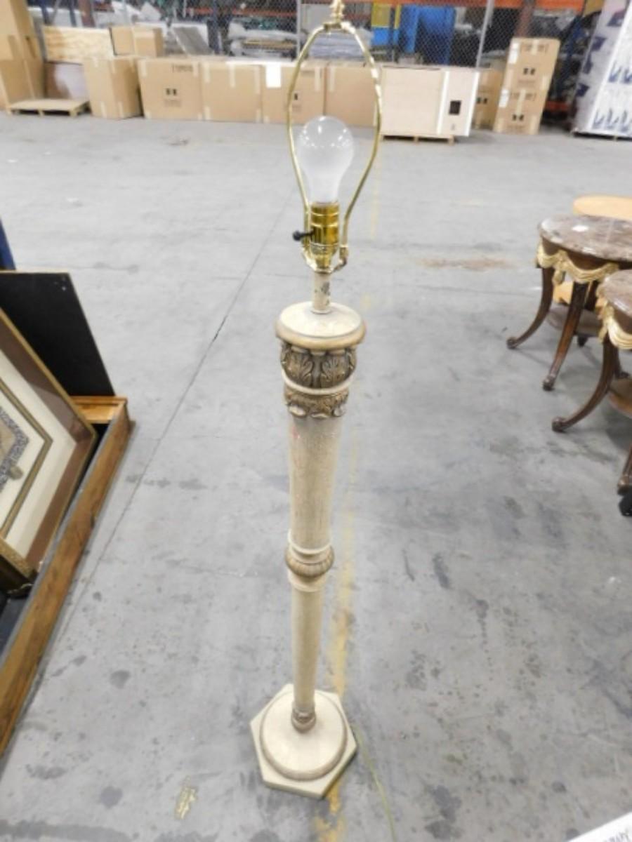 French Regency Style Solid Resin Post Floor Lamp. Expect some wear or scratches to finish. Shipping option available via freight or local mover at Buyer's expense. Buyer must have all shipping scheduled within the stated dates and times of pickup. Recommended local mover is Beaty Bros. Moving 828-201-2982