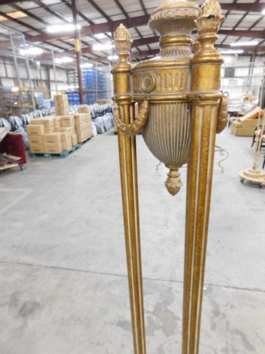 French Regency Wrought Metal Gilt Post Floor Lamp #1 of 3 Some of the drapery accents are missing. Expect some wear or scratches to the finish. Shipping option available via freight or local mover at Buyer's expense. Buyer must have all shipping scheduled within the stated dates and times of pickup. Recommended local mover is Beaty Bros. Moving 828-201-2982