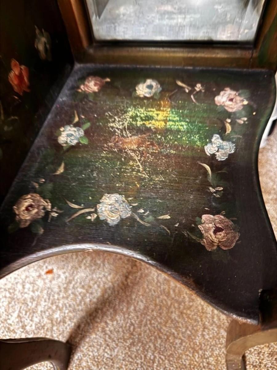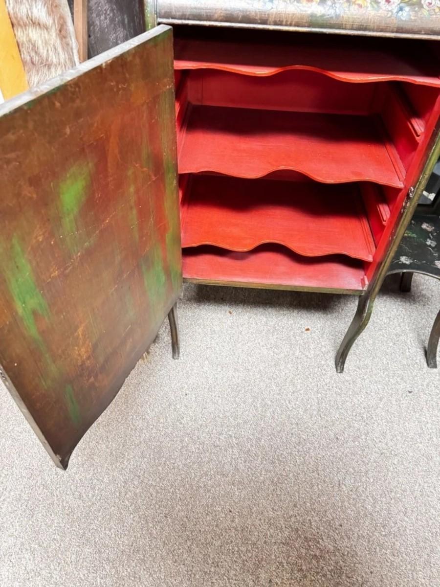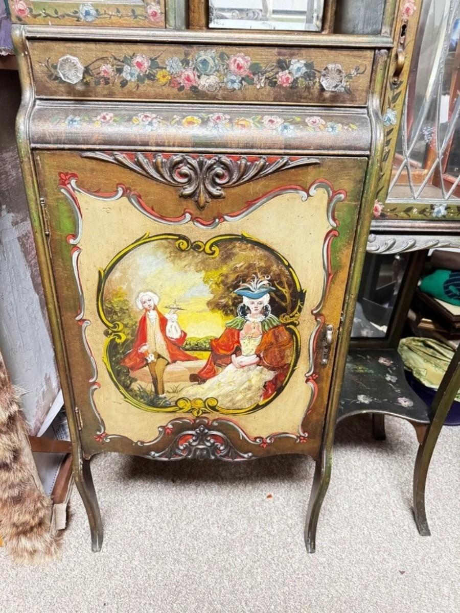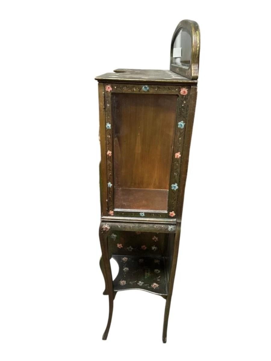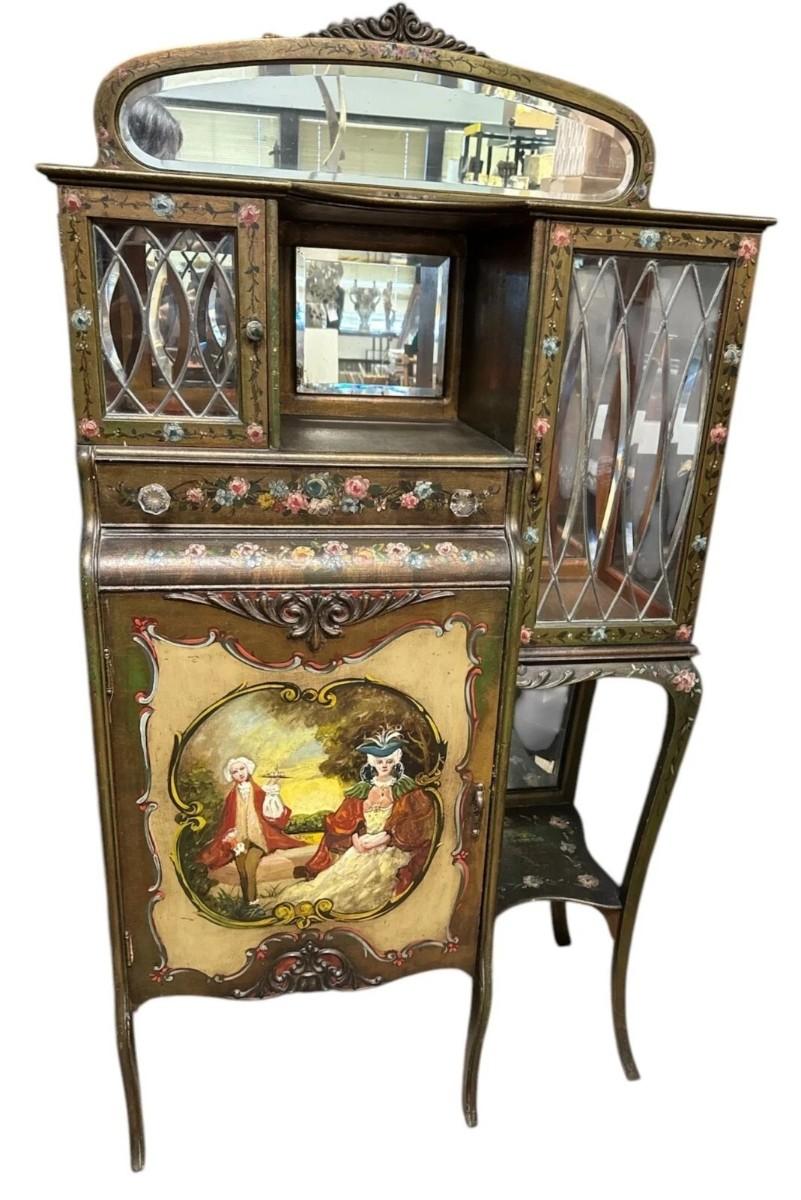 Antique Hand-Painted French Victorian Style Cabinet W/ Glass Doors & Mirror