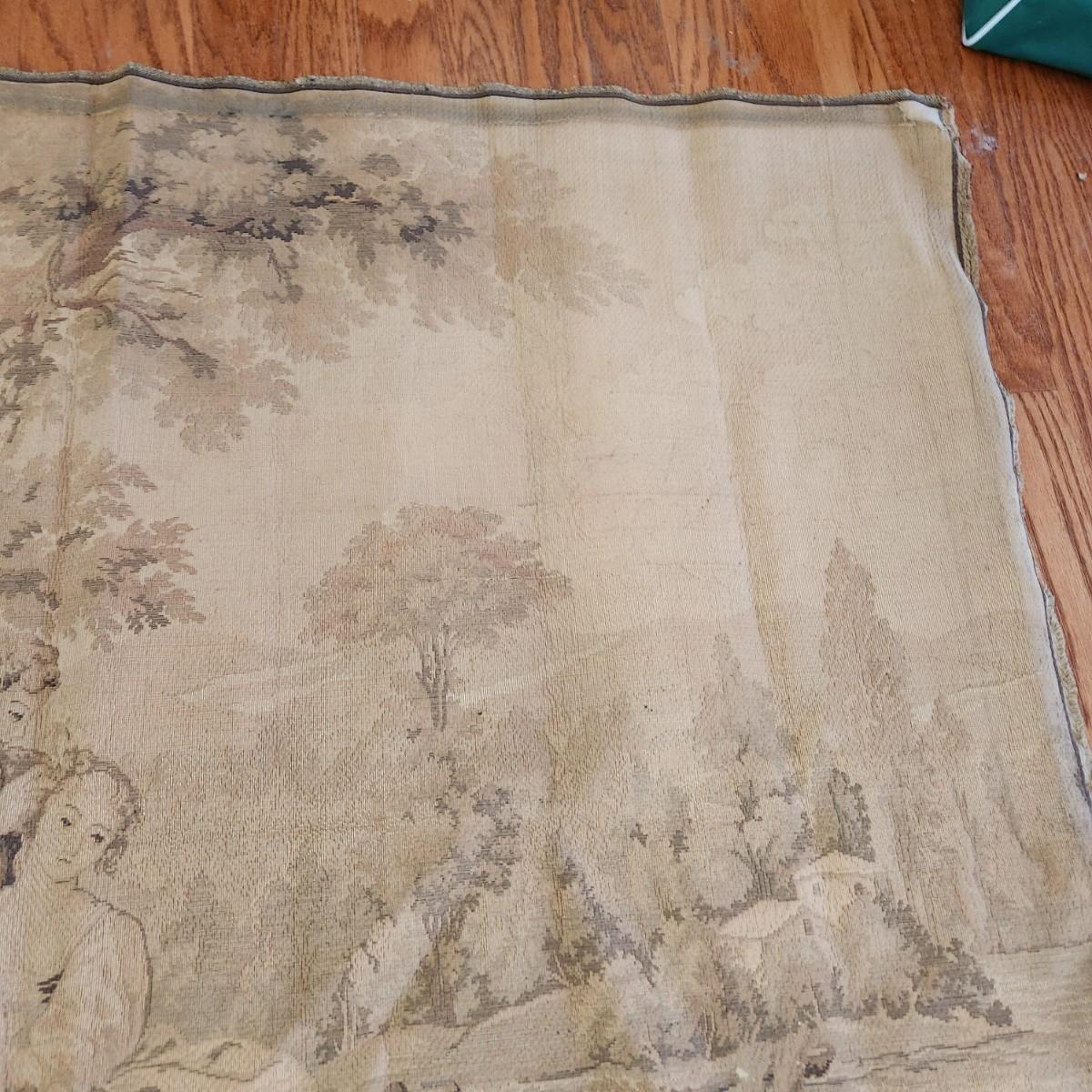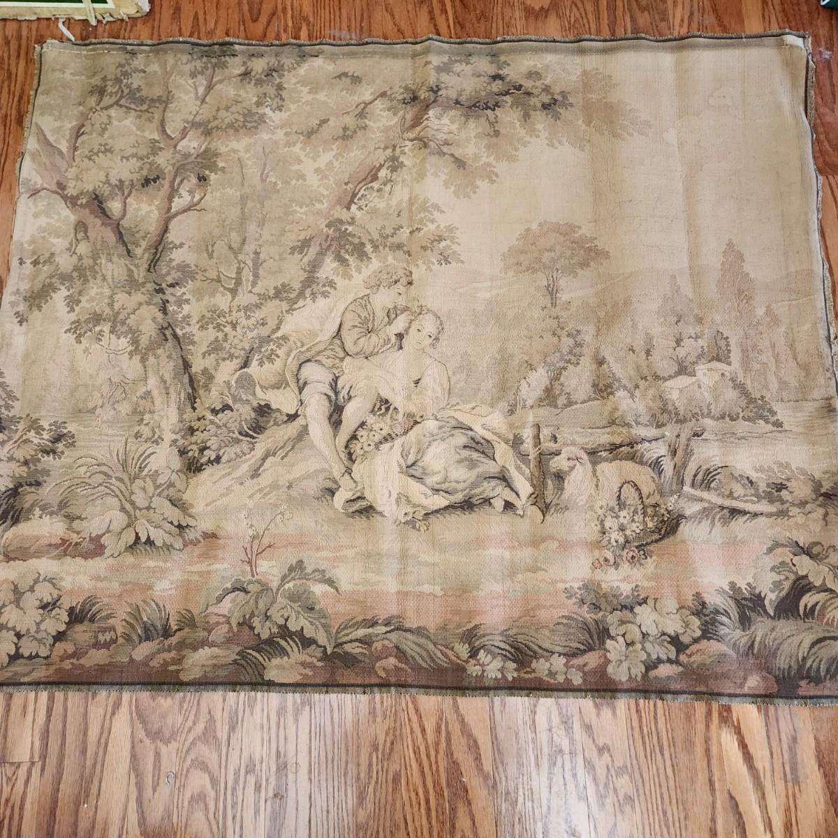 French Tapestry Man Woman Sheep in Field 39"x47"