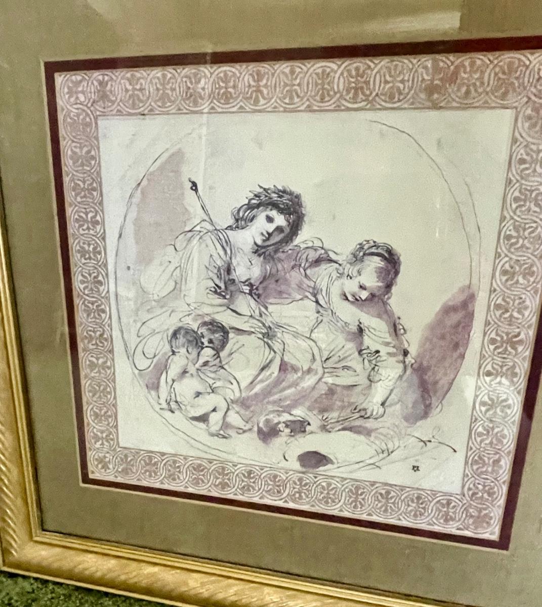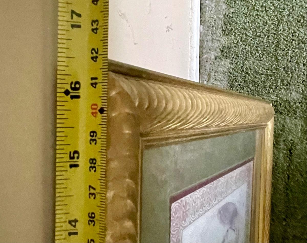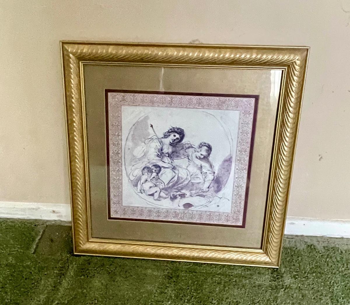 Gold matting and frame. Approx. 16" x 16". Great condition.