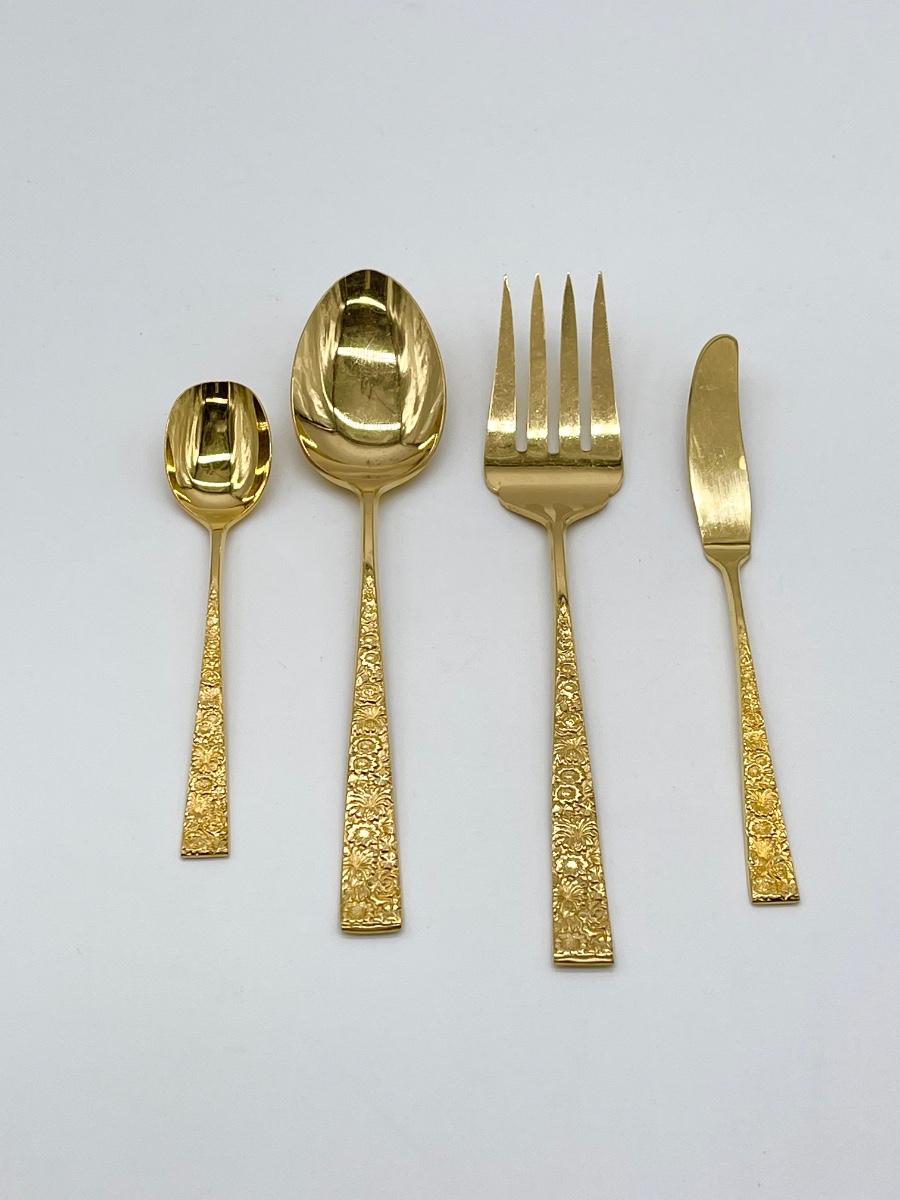 84 pieces ~ Includes: 16 each ~ Knives, Dinner Forks, Salad Forks, Soup Spoons, Teaspoons & 4 serving pieces ~ Sugar Spoon, Serving Spoon, Serving Fork and Spreader