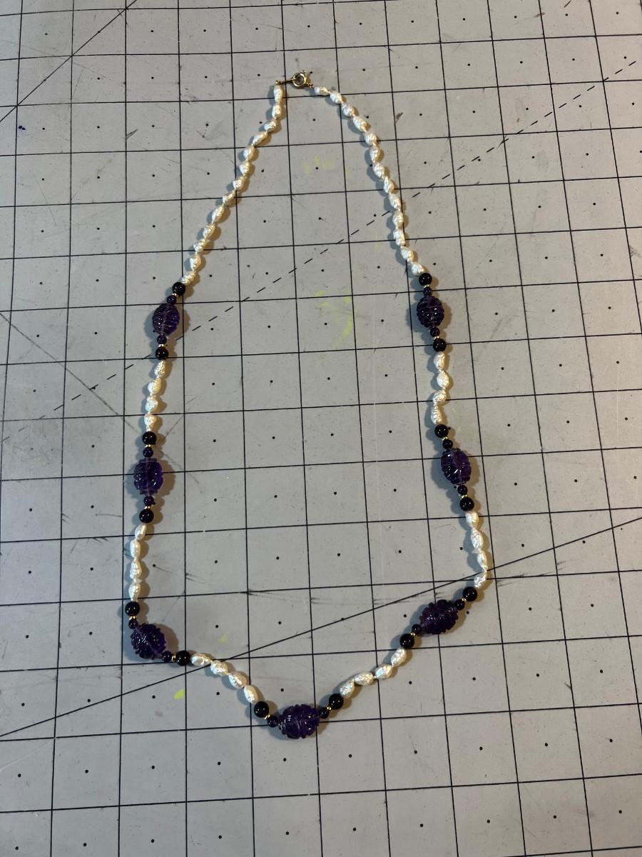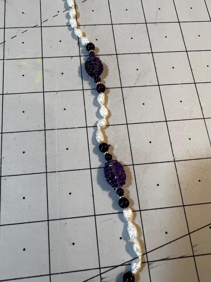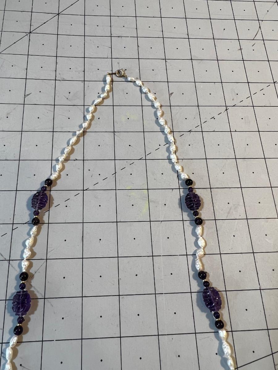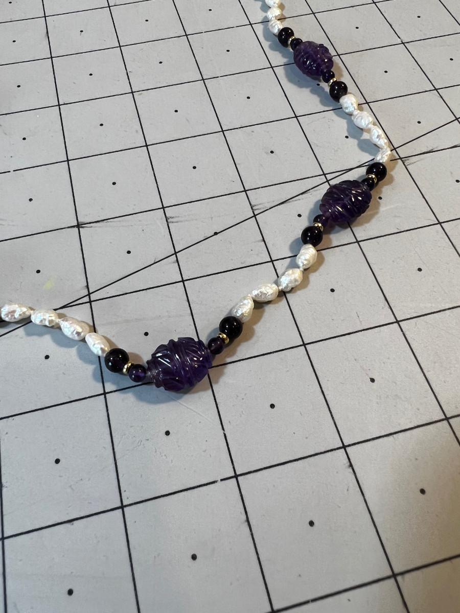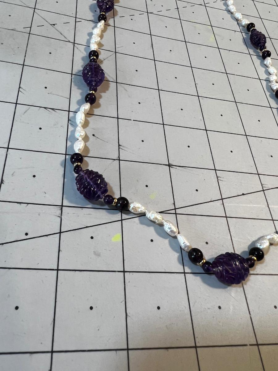 14K Clasp - 26" Long. Carved Stones. Beautiful!