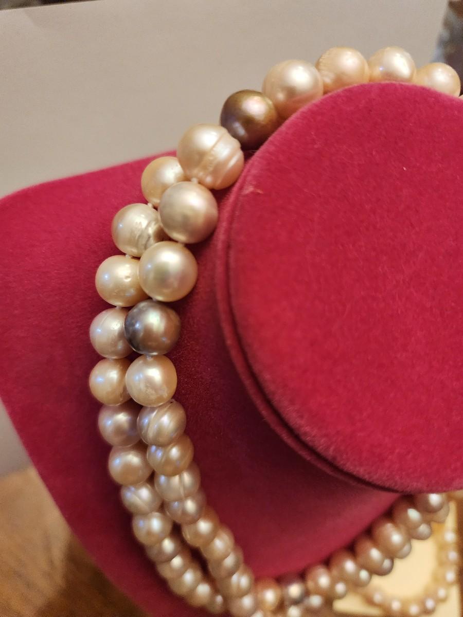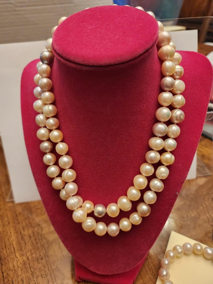 Two pieces. 30 inch strand necklace. Baroque white but with one off pearls for luck. Bracelet is the same. This is a set. Also JTV jewelry.