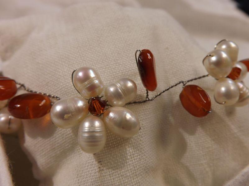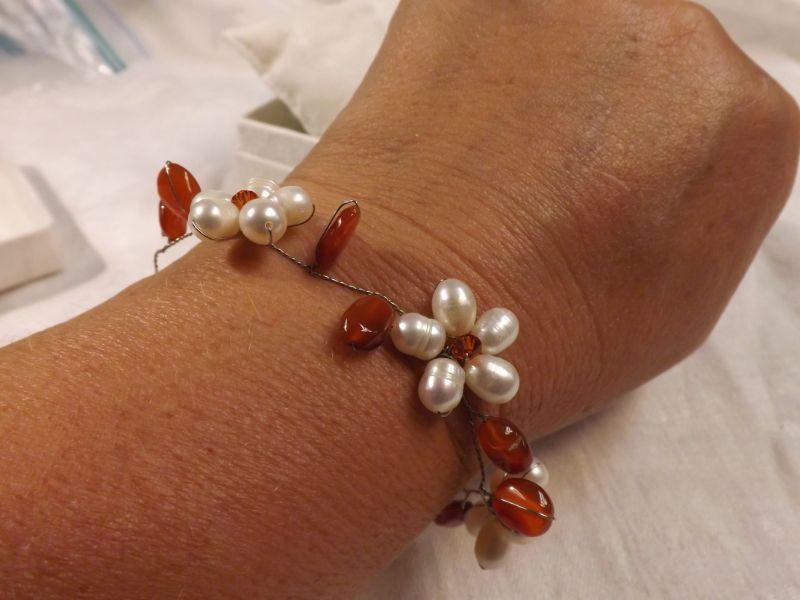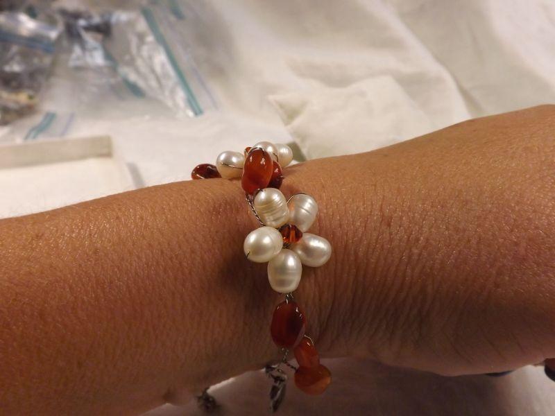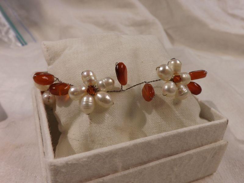 Beautiful Bracelet with freshwater pearls and agate wrapped with thin wire to create the look of flowers and leaves. Quite beautiful! **Please read Terms and Conditions before placing a bid. Pick up is Wednesday, September 25 from 4pm to 7pm and Saturday, September 28 from 9am to 1pm in Williamstown, NJ. All sales are final. All sales are as is, where is. Please review all photos. Any props included in photos are not included in listing. All measurements are approximate.