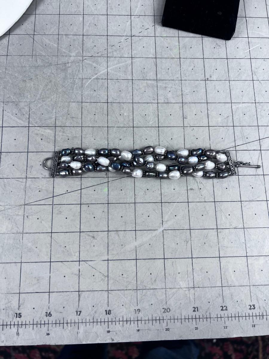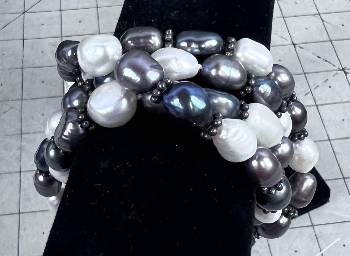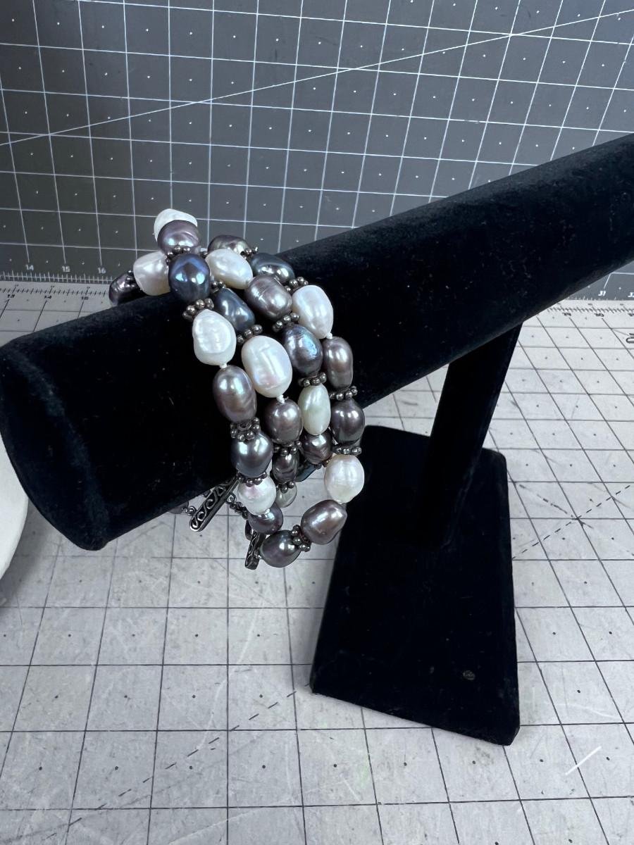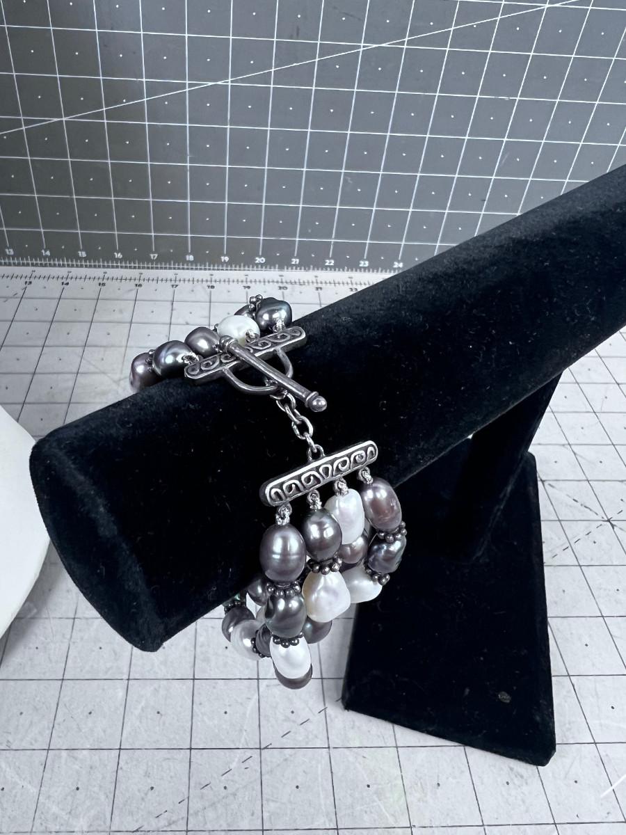 Freshwater Pearl White & Gray plus 925 Silver Bracelet