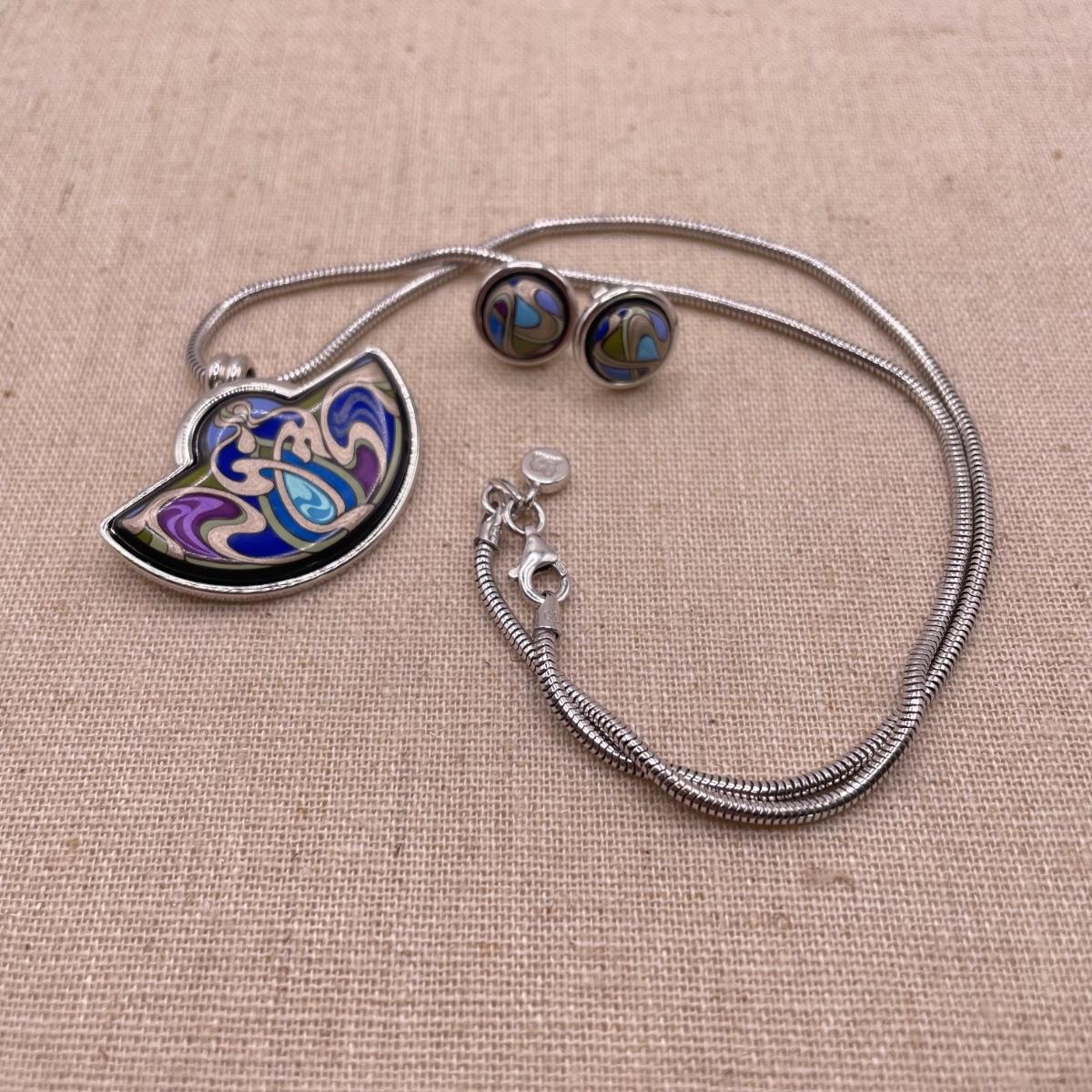 Stunning pendant and earring set marked "Free Wille Made in Austria". Pendant is paired with a 16” chain marked "925" and "Italy". See images for all markings. All sales are final. No returns or refunds. Please bid accordingly.