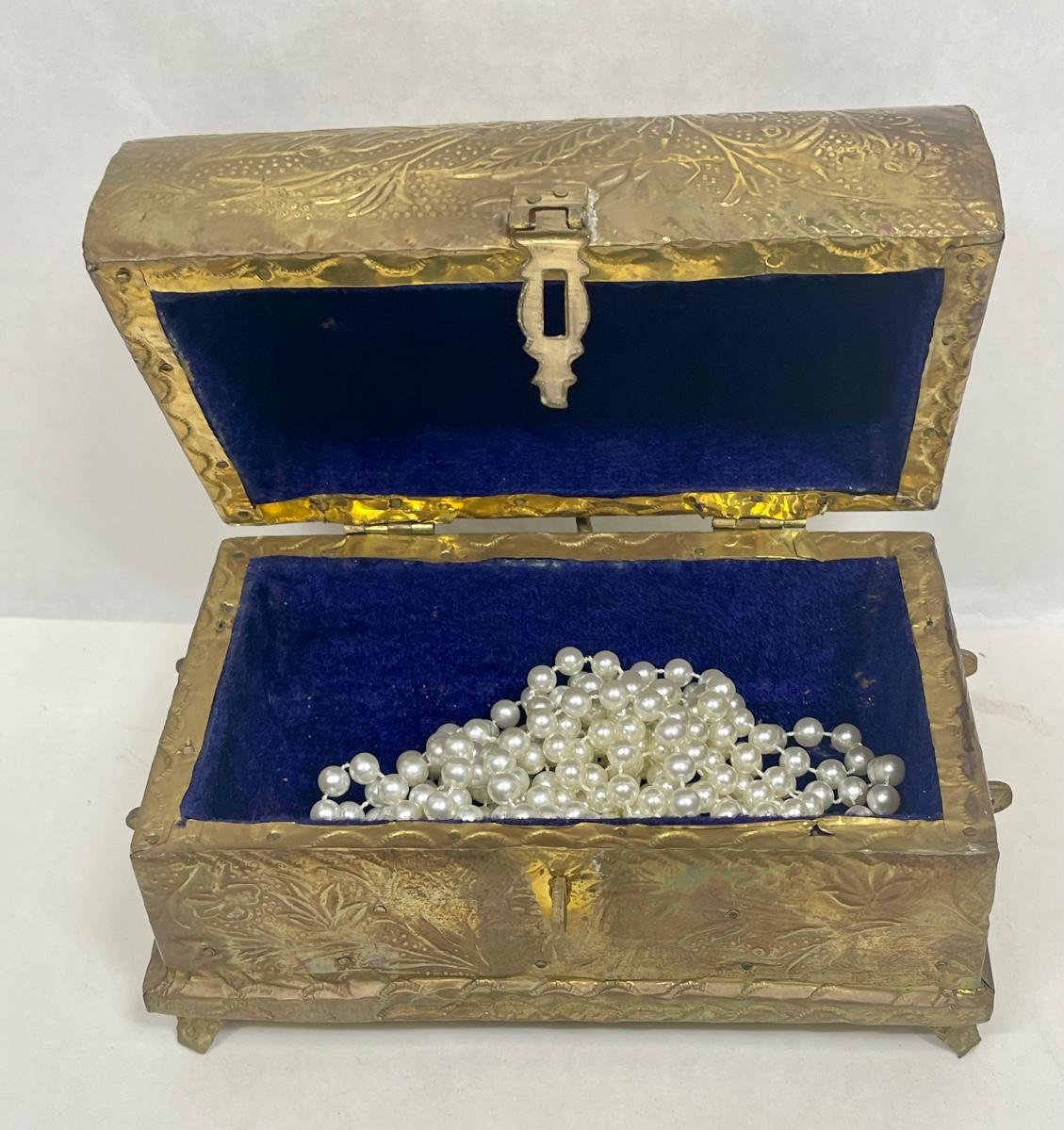 Treasure Chest with brass foil covering from India with plastic beads inside