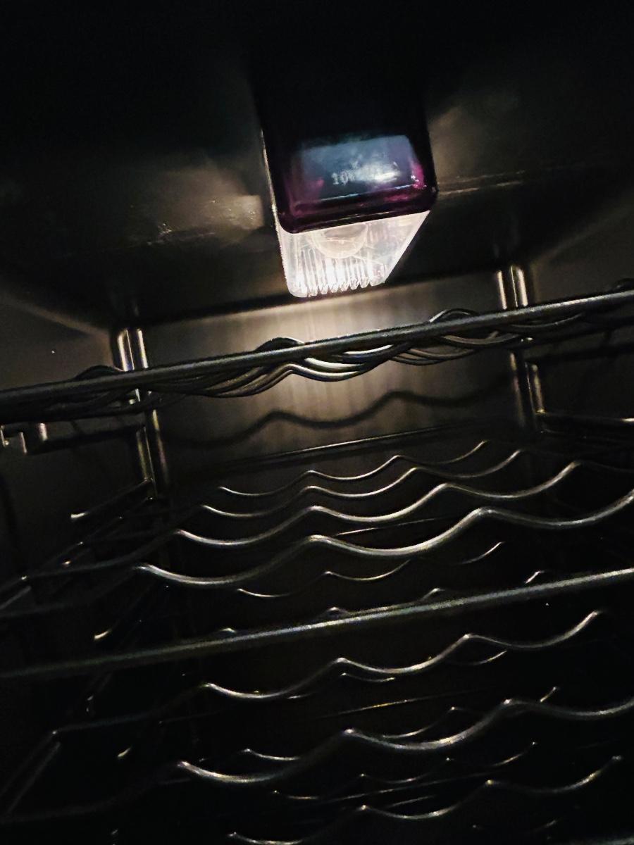 This wine cooler holds up to 34-bottles, keeping your wine at the ideal storage temperature with adjustable temperature control.