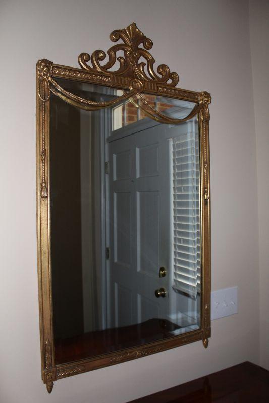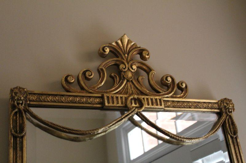 26 1/2x46 Beveled Mirror french style gilt lion head rope swag