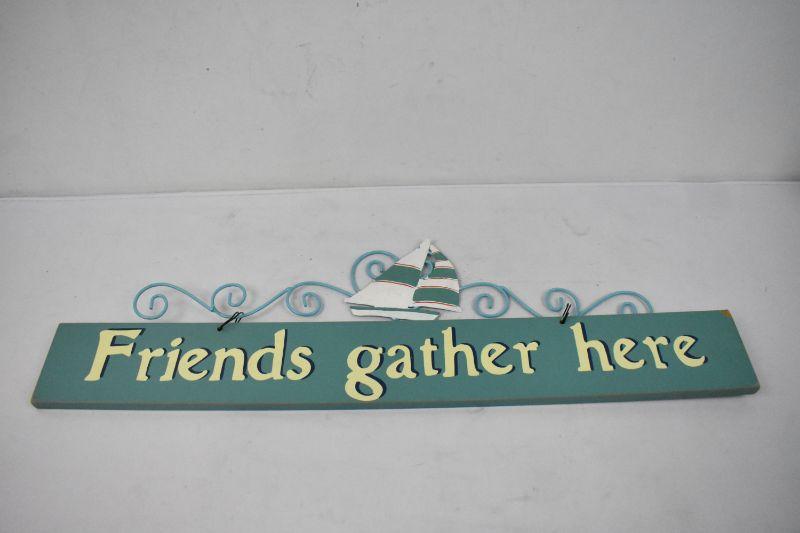 "Friends Gather Here" w/ Sail Boat Wooden Wall Decor