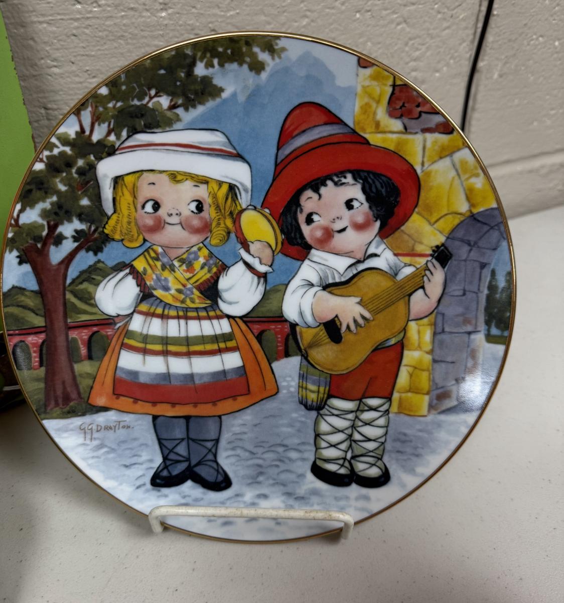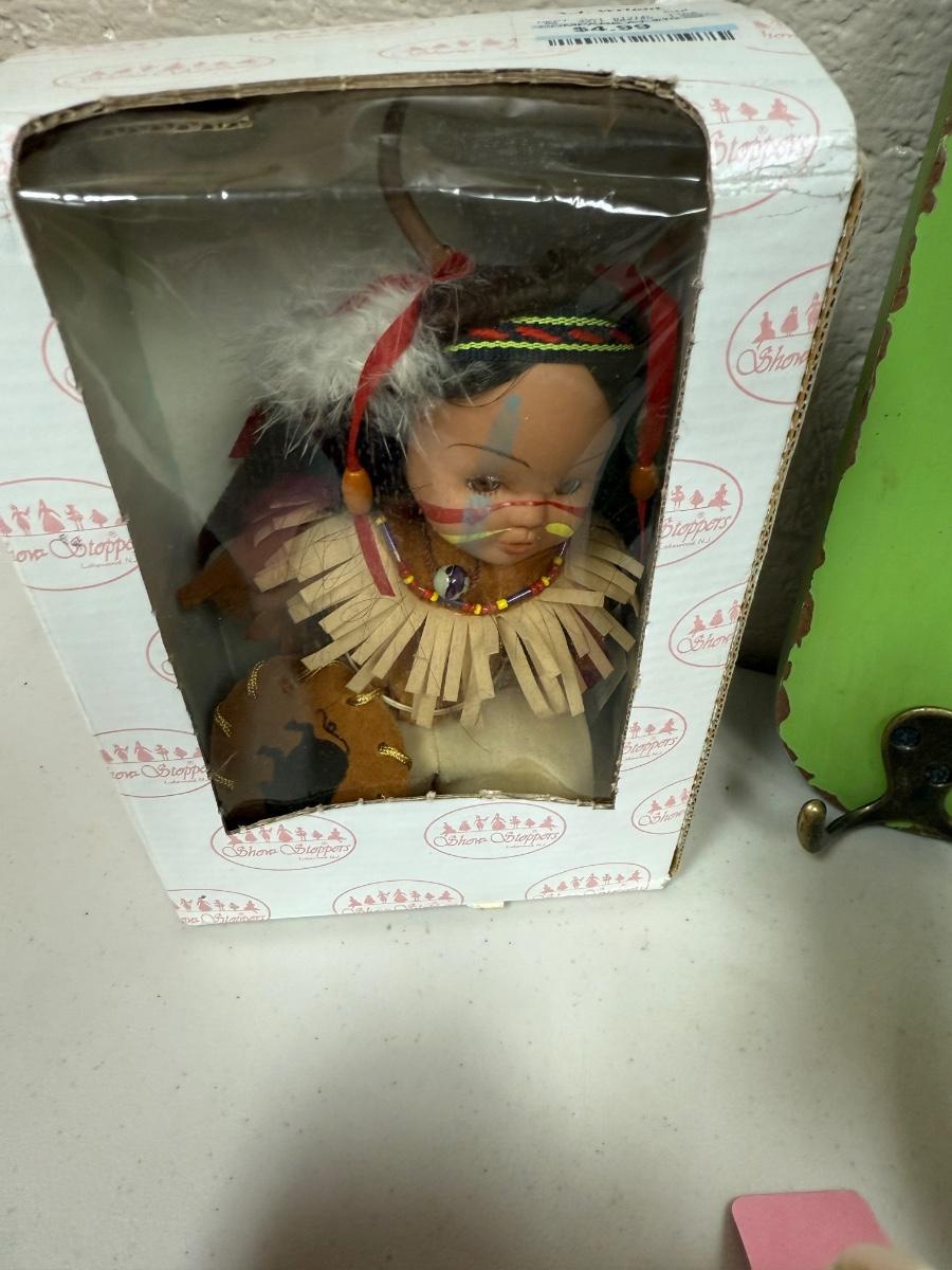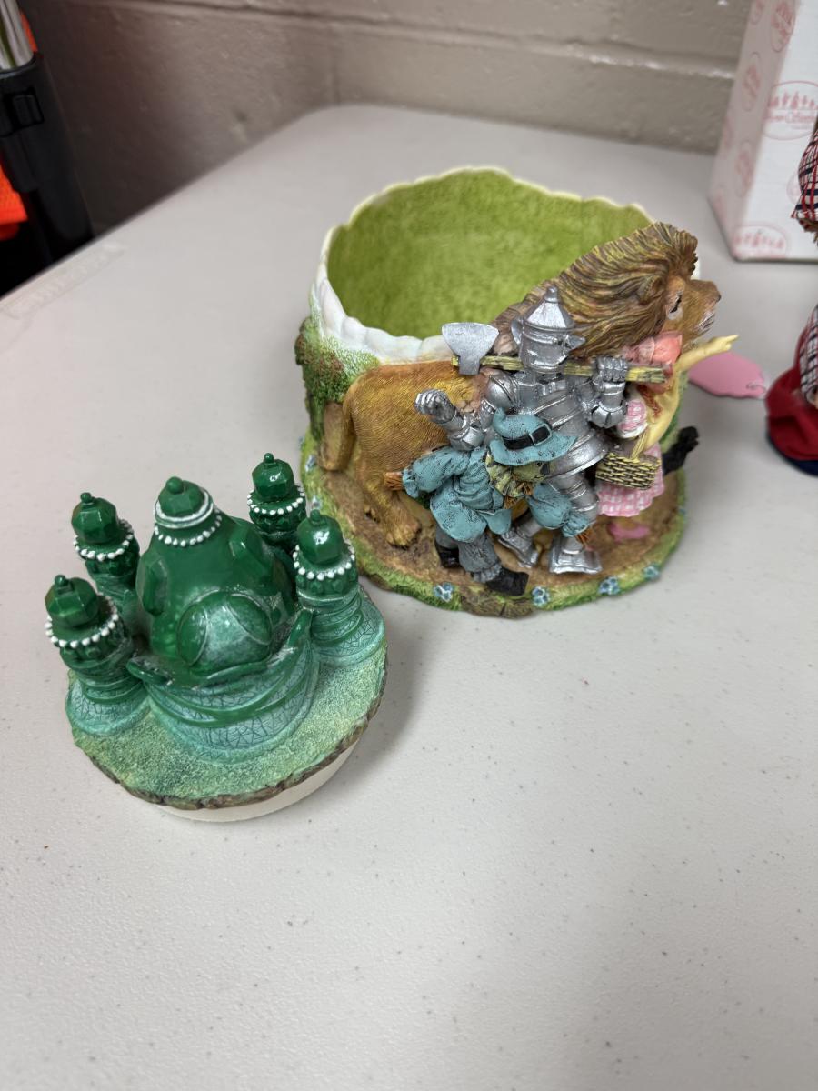 Music boxes, bookend, collectible plate by Drayton, Precious Moments, Wizard of Oz, Indian doll, butter pats/childrens dishes