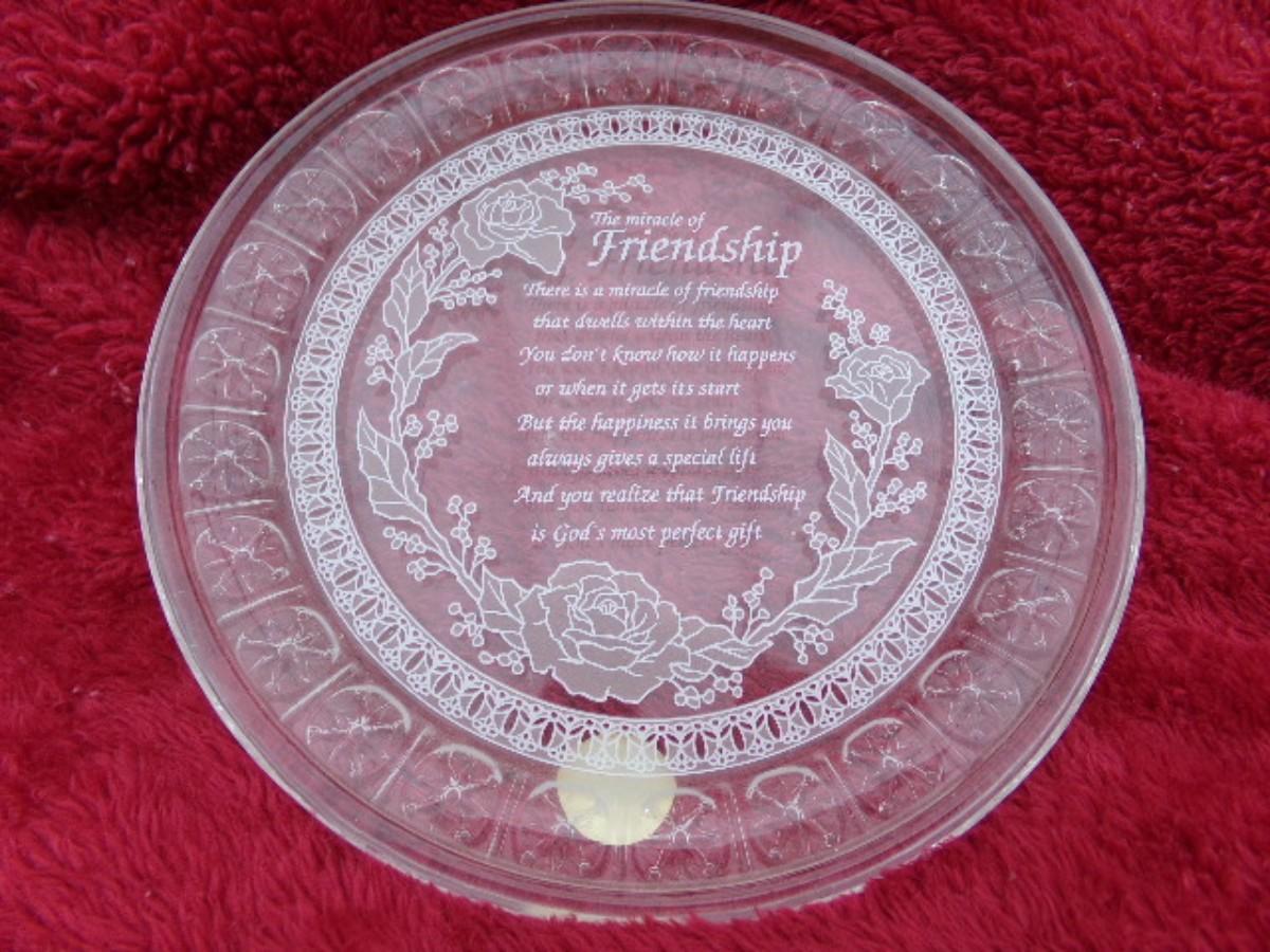 Friendship gift, 24% leaded crystal plate with inscription. About 7-1/4" dia.