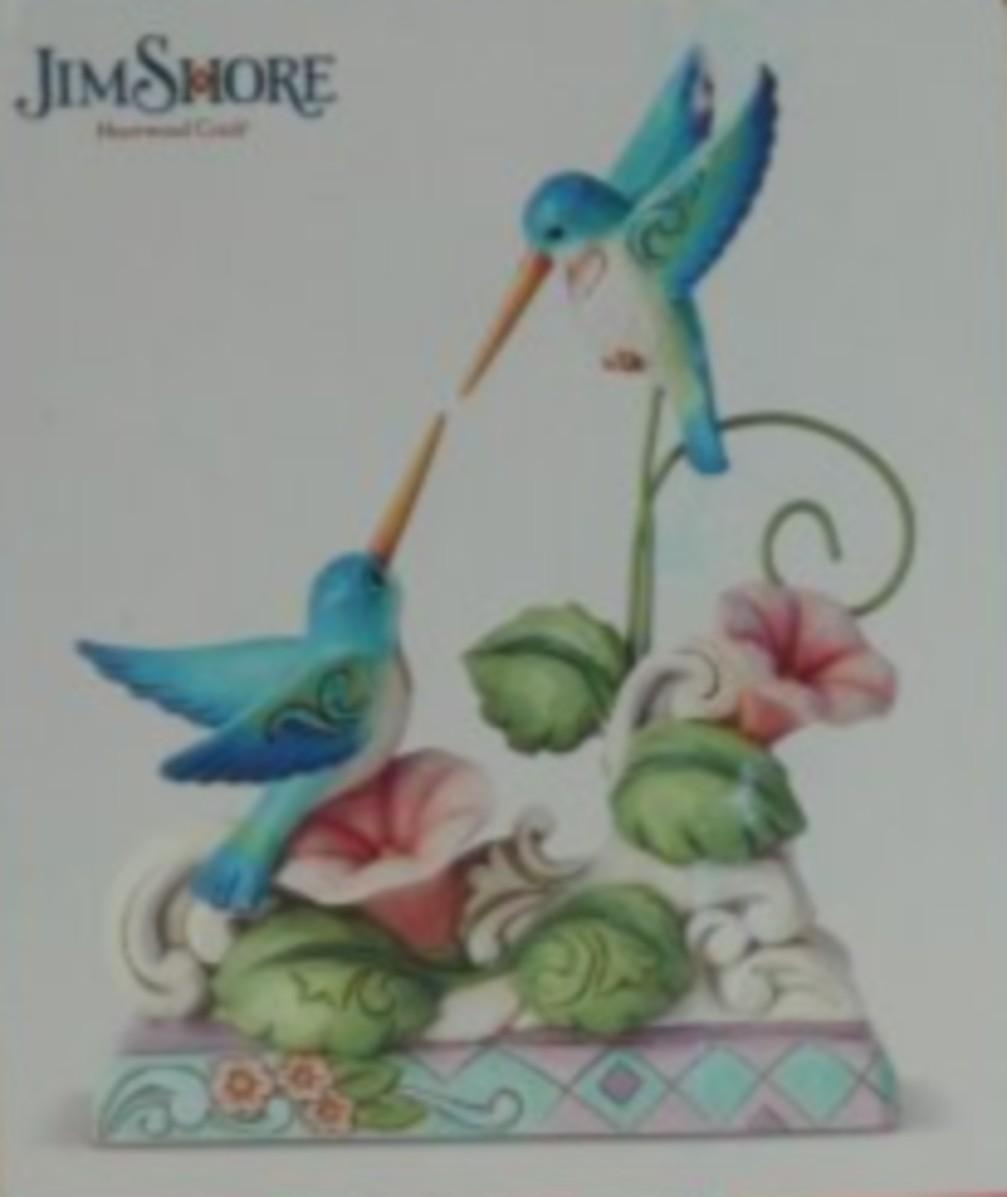 Beautiful "Friendship is Life's Nectar" pair of polyresin hummingbirds figurine by Jim Shore. New in box, never opened. Piece measures 6" x 5" x 2". (D92)