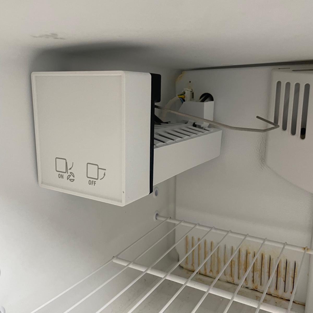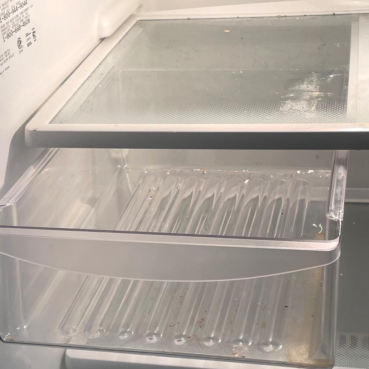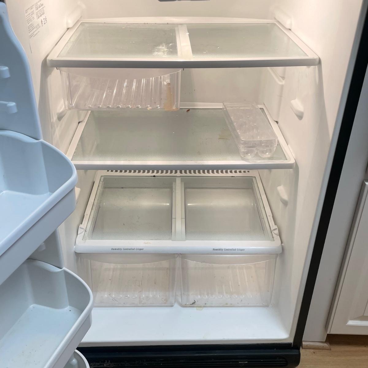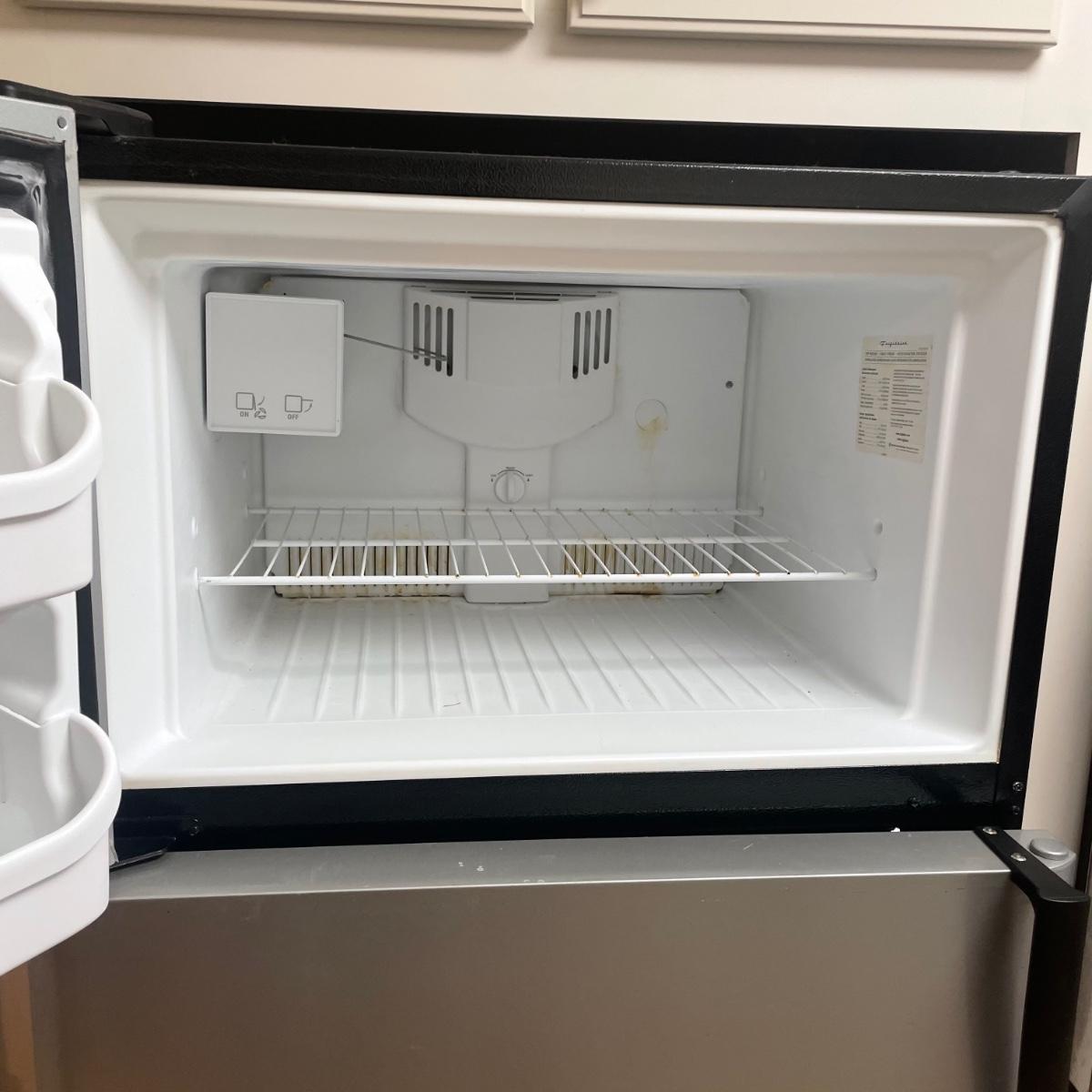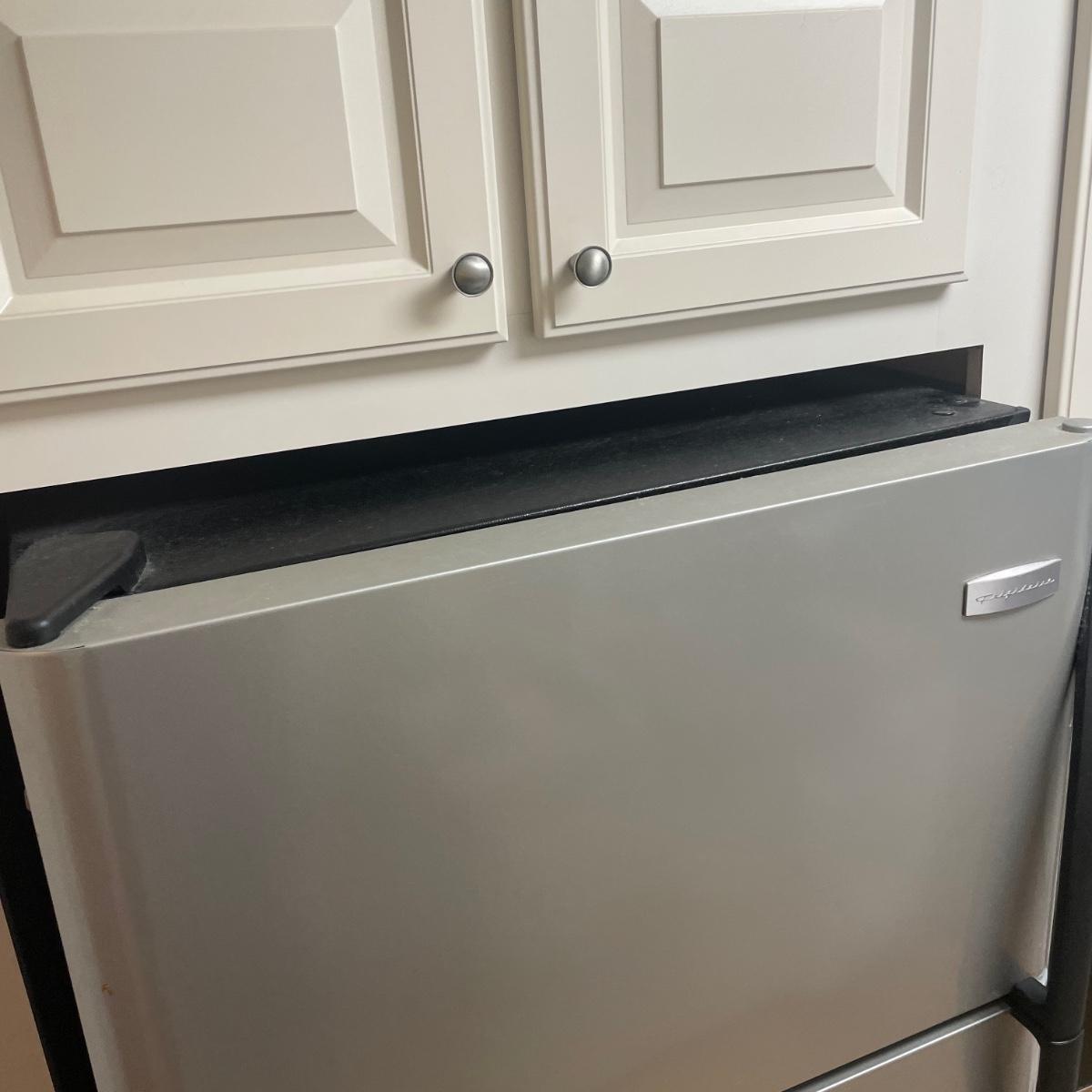 This Frigidaire refrigerator is in good condition with a top freezer. Measures 30” x 34” (including handles) x 66”. Egg holder is includedIt does need a good clean but appears to be working well (ice maker was not tested) and is still plugged in; winning bidder must bring assistance to help move and load this item due to its weight and/or size and note it is inside of built in cabinets, but fortunately is located near to the front door.