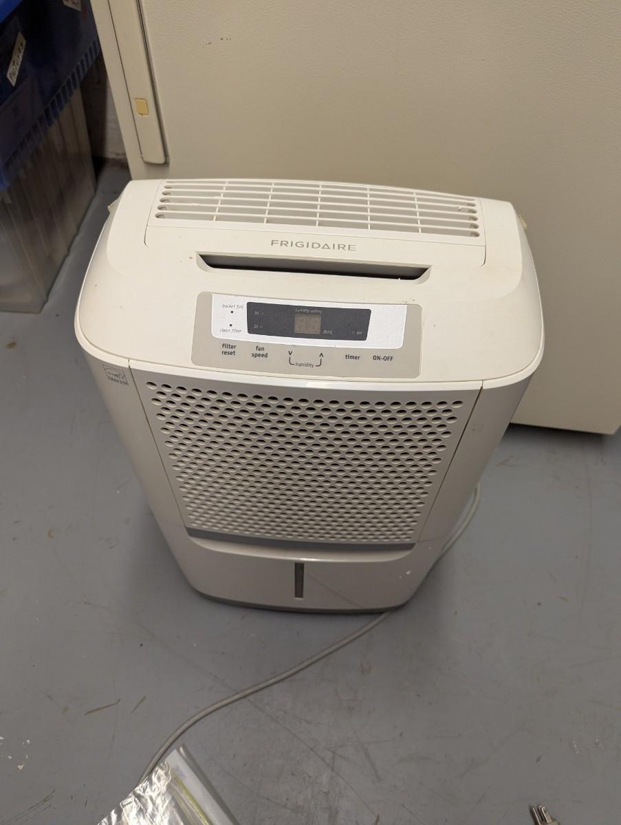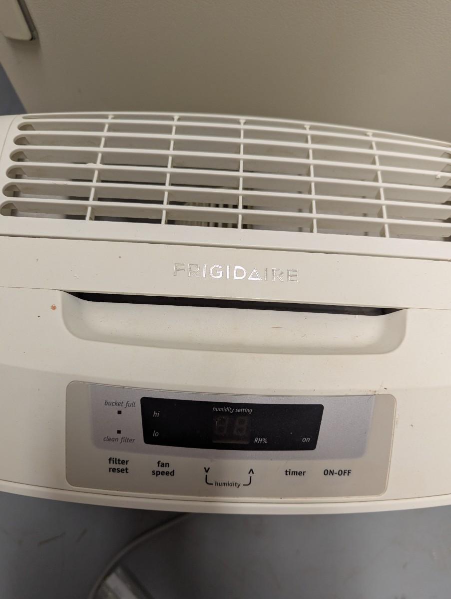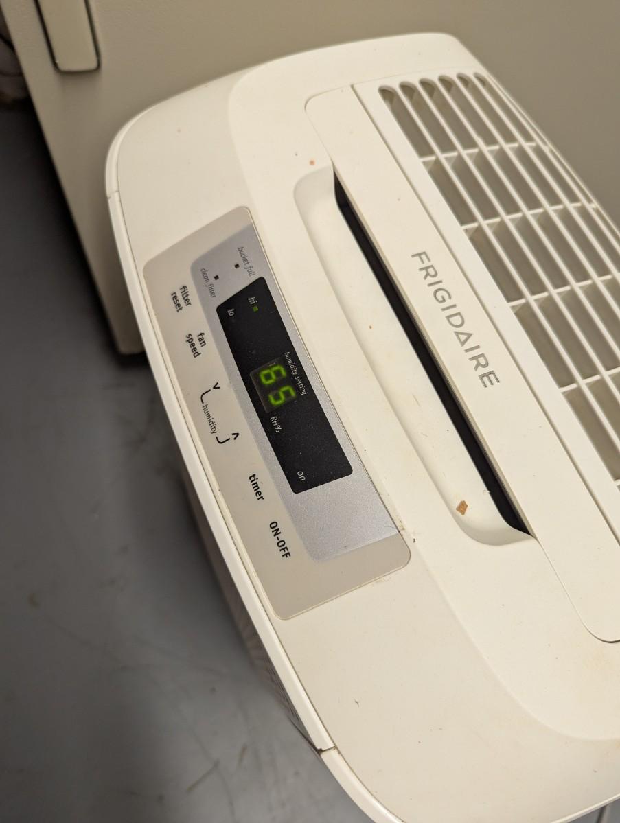 It is down stairs there is a sliding door to go out at the back of the house and go up some stairs to the driveway - dehumidifier did turn on when tested