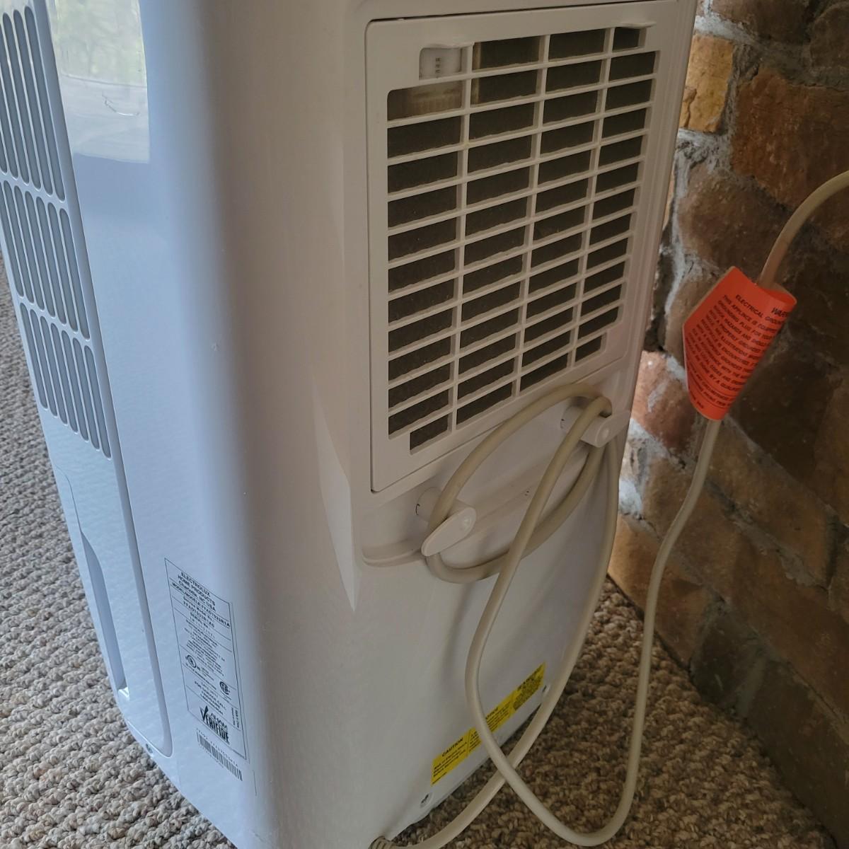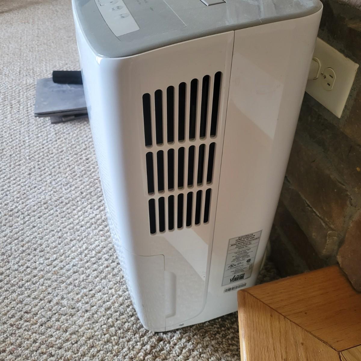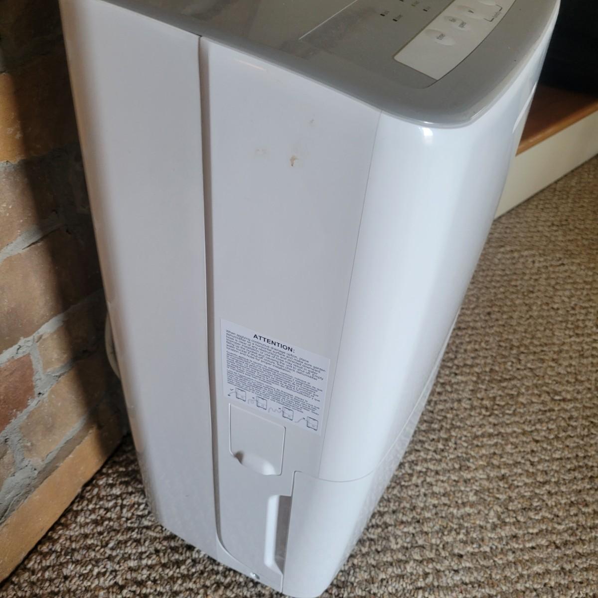 A Frigidaire dehumidifier that powered on when plugged in. This dehumidifier features a timer, three fan settings, humidity settings and a filter reset. Bucket appears to be free of mildew and the unit measures approximately 15" x 11" x 24".H. Local pickup only