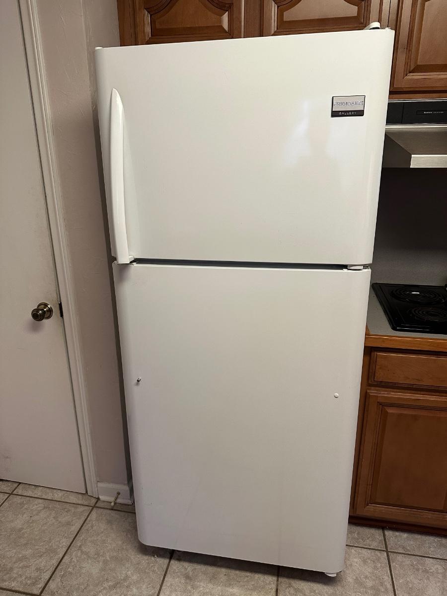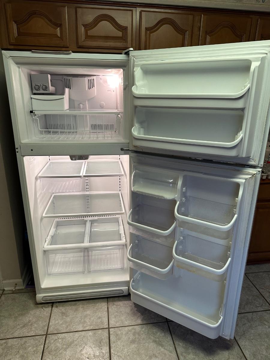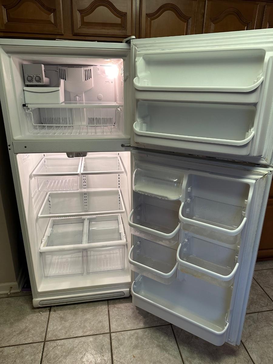 The handle for the refrigerator is missing. Replacement could be purchased or use as it. Door opens easily without.