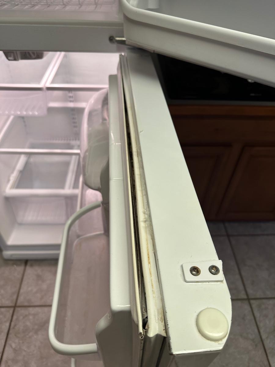 Fridge door gasket has a split at the top but works as it should. Pictured.