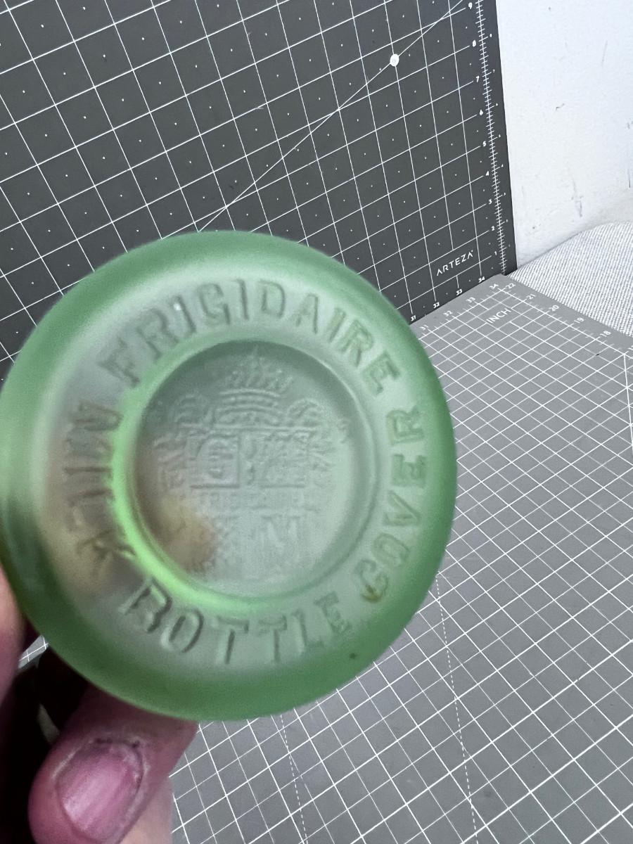 Frigidaire Milk Bottle Cover Satin Green Depression Glass