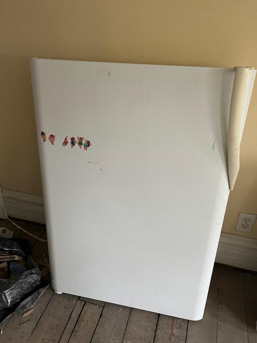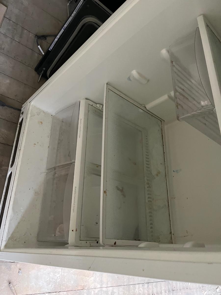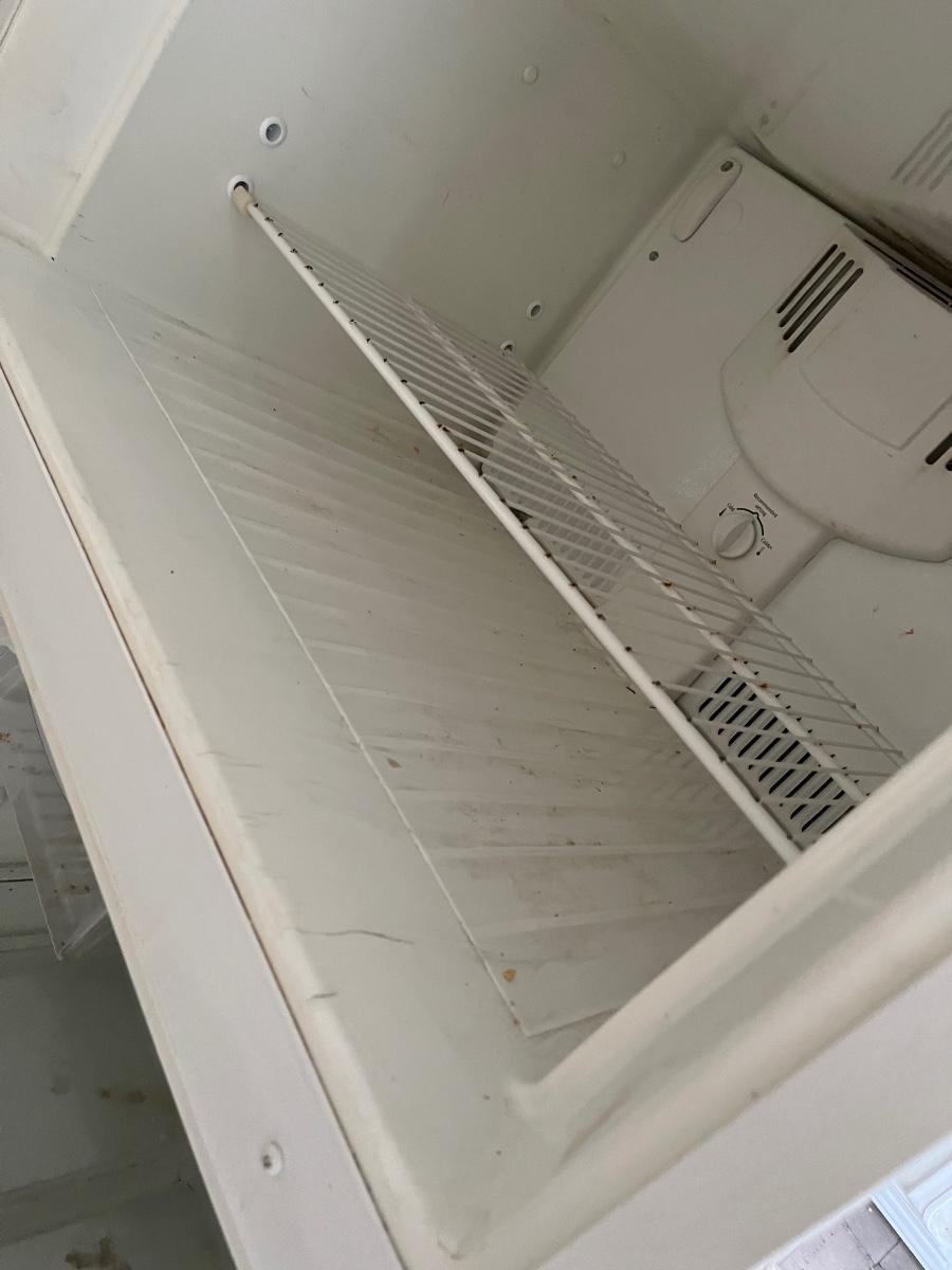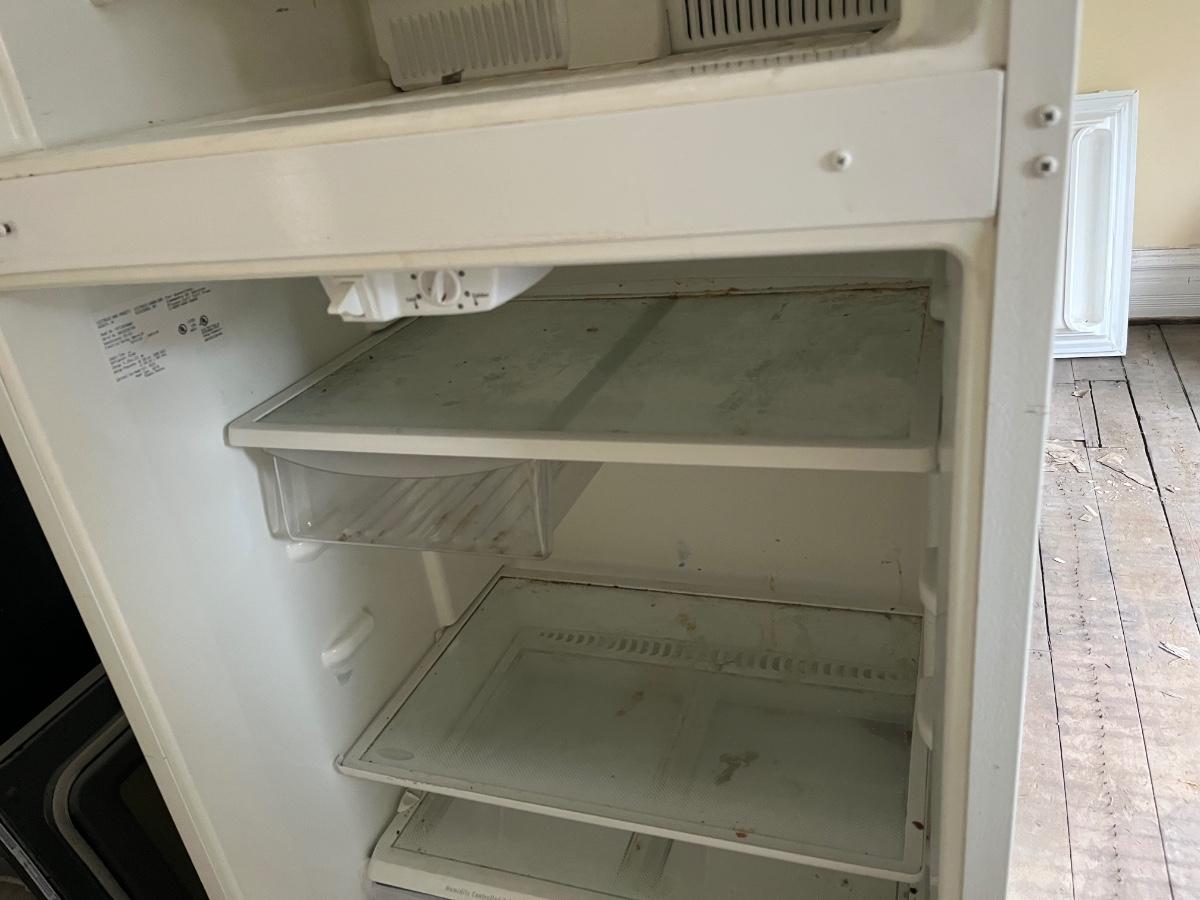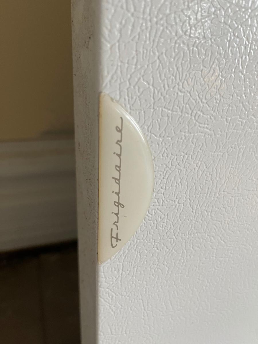 Frigidaire refrigerator that has a freezer compartment and large capacity main compartment. There is no ice maker but there is space to add one.