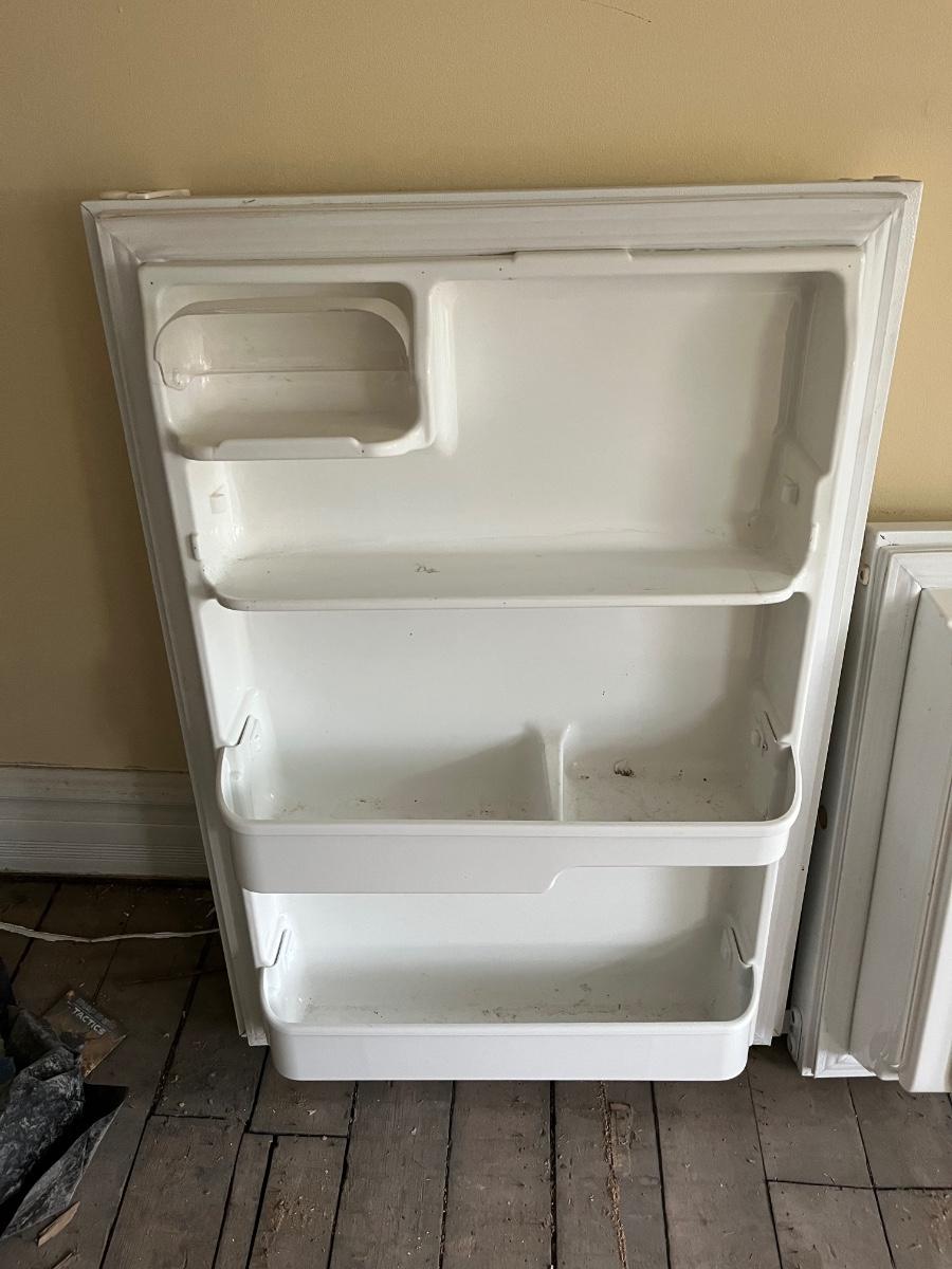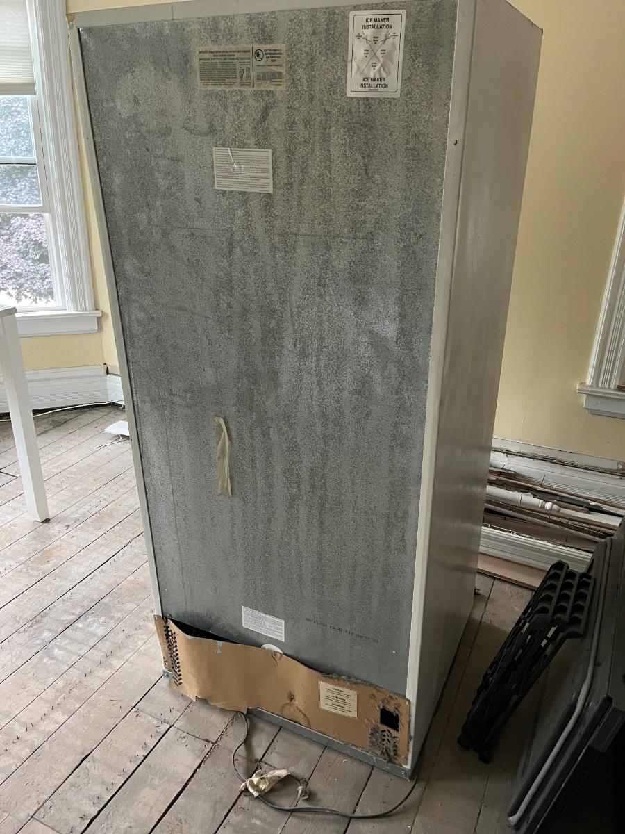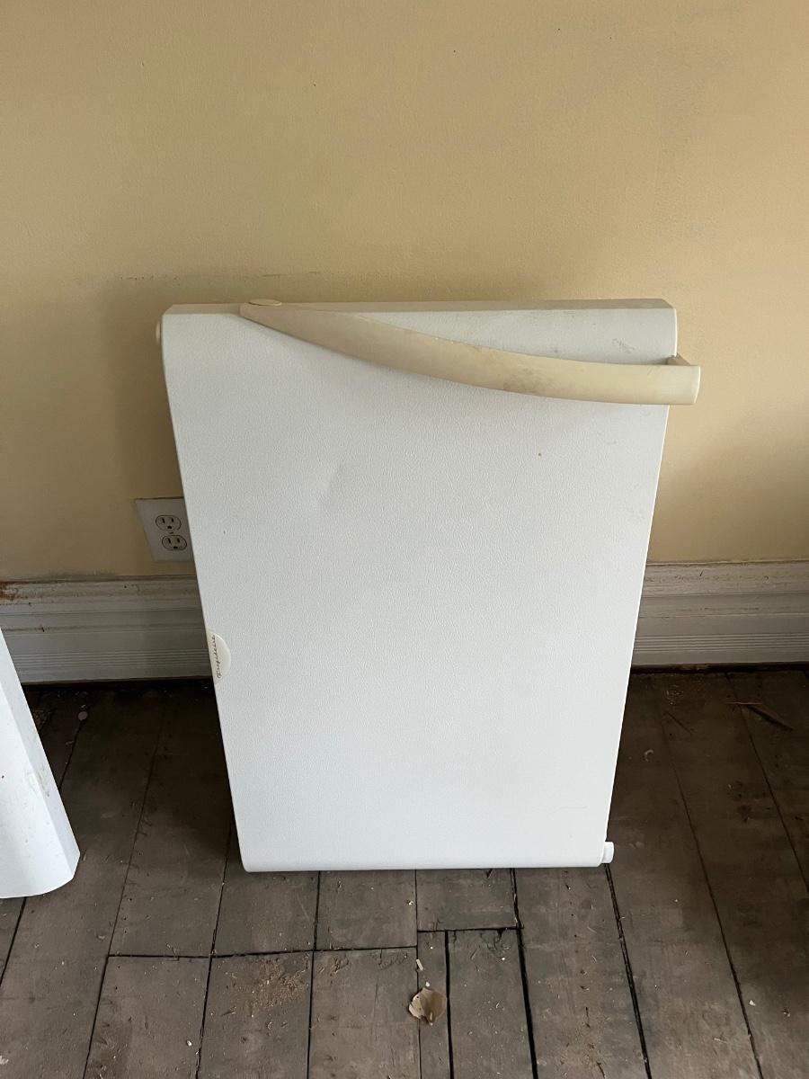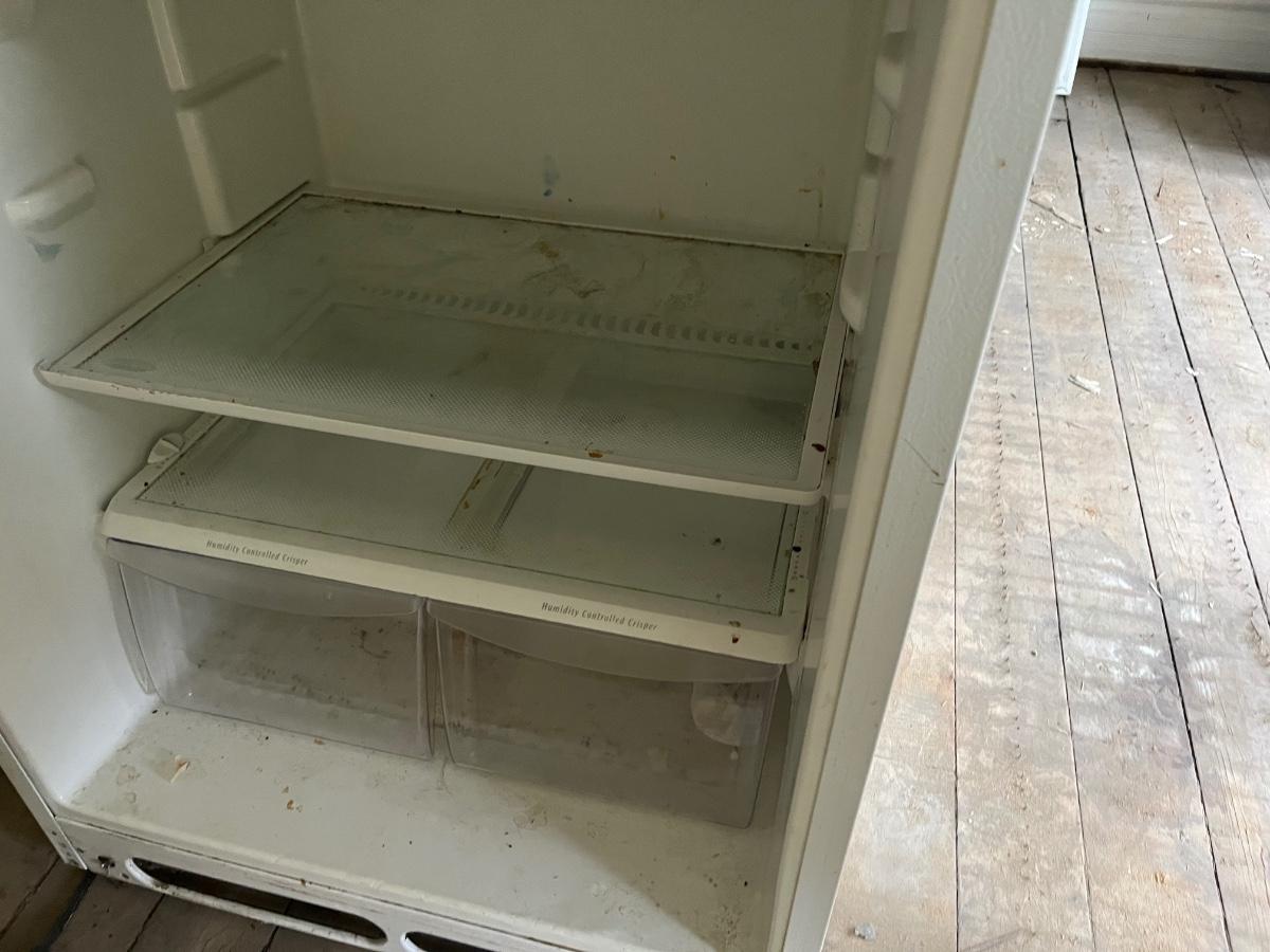 Frigidaire refrigerator that has a freezer compartment and large capacity main compartment. There is no ice maker but there is space to add one.
