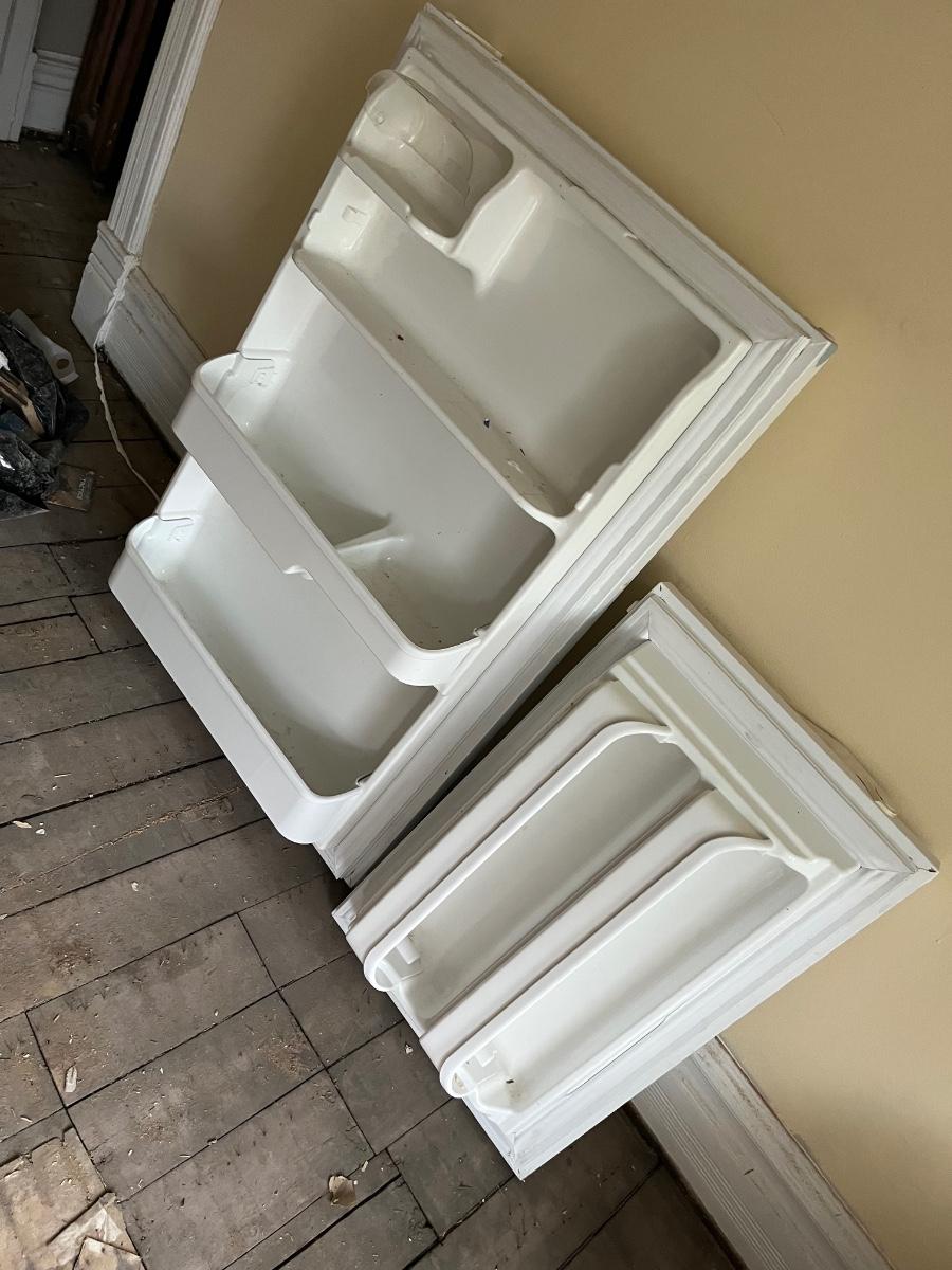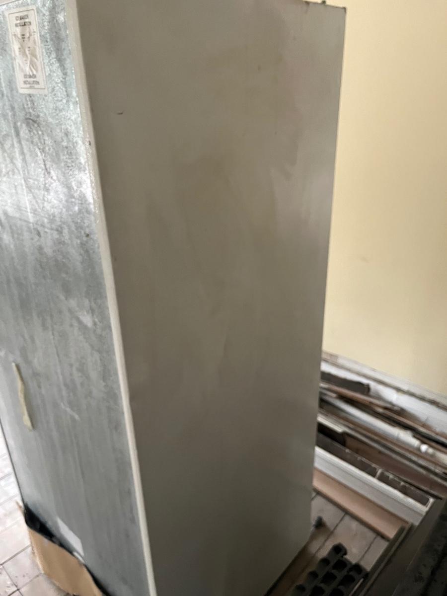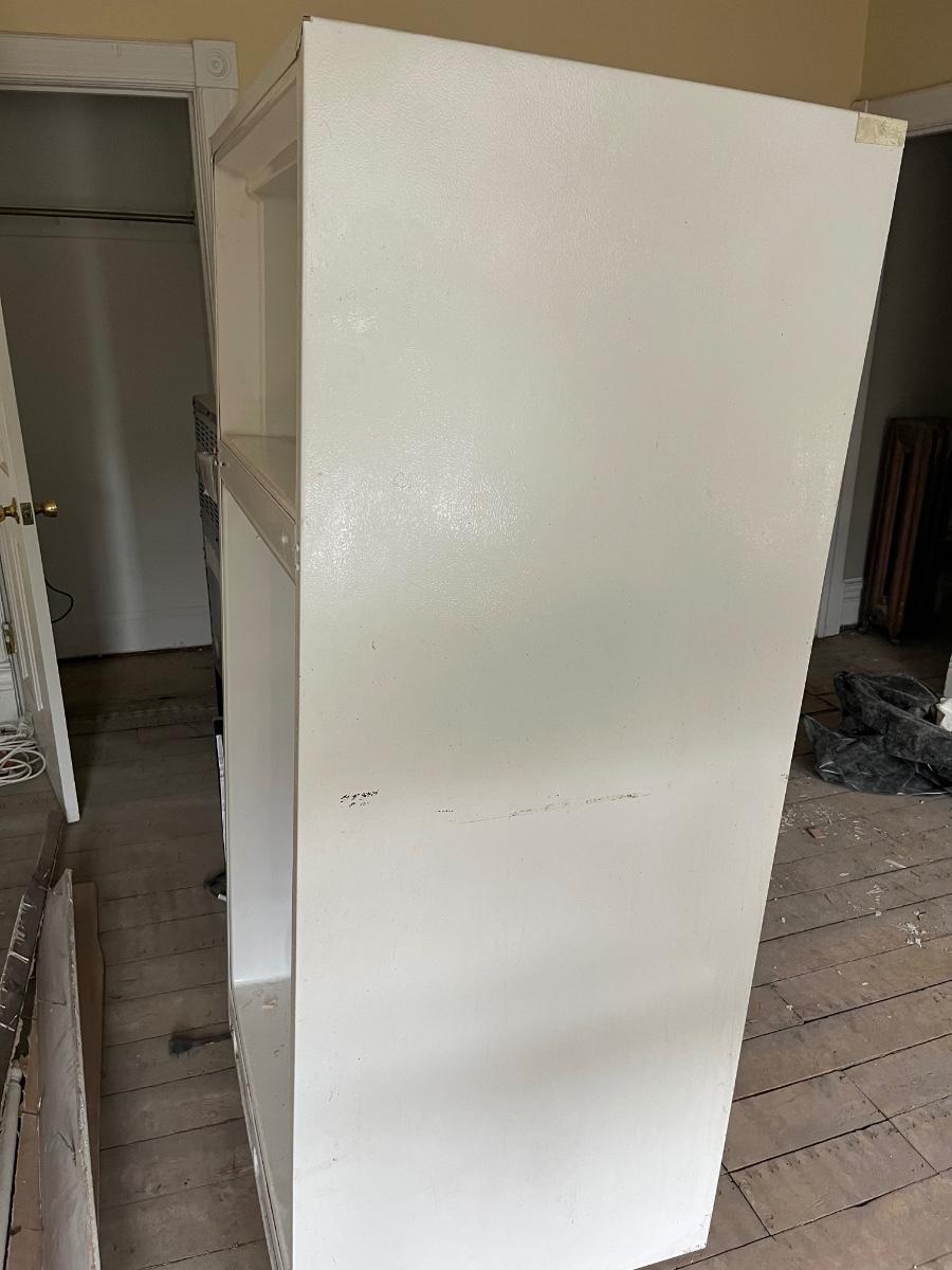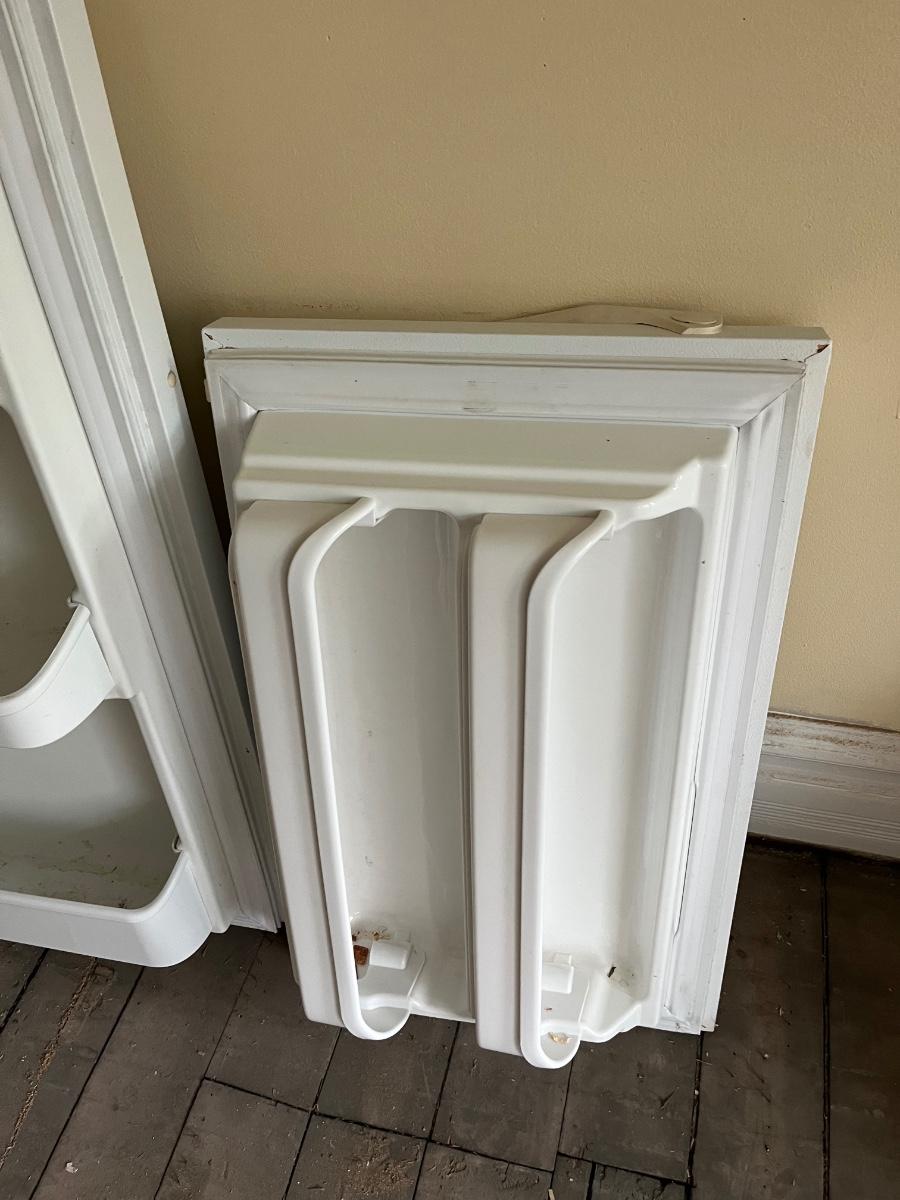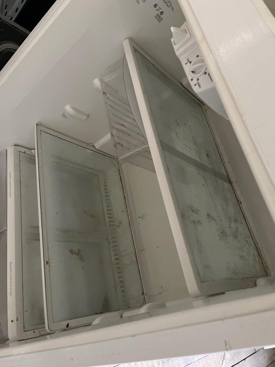 Frigidaire refrigerator that has a freezer compartment and large capacity main compartment. There is no ice maker but there is space to add one.