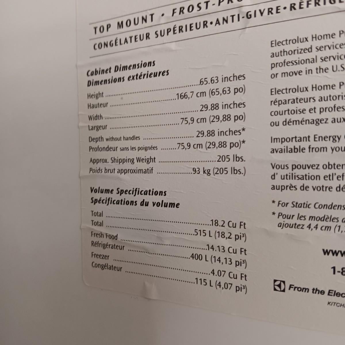 30 X 29 1/2 X 65 1/2 NO ICE MAKER