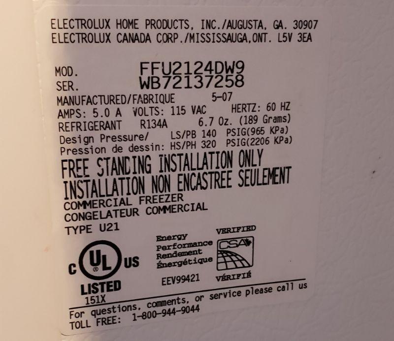 Frigidaire Upright Freezer, 70H, 32W, 29D