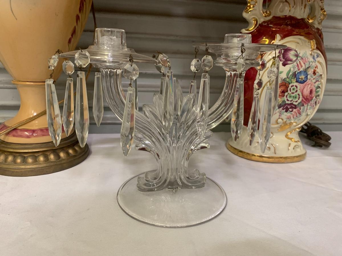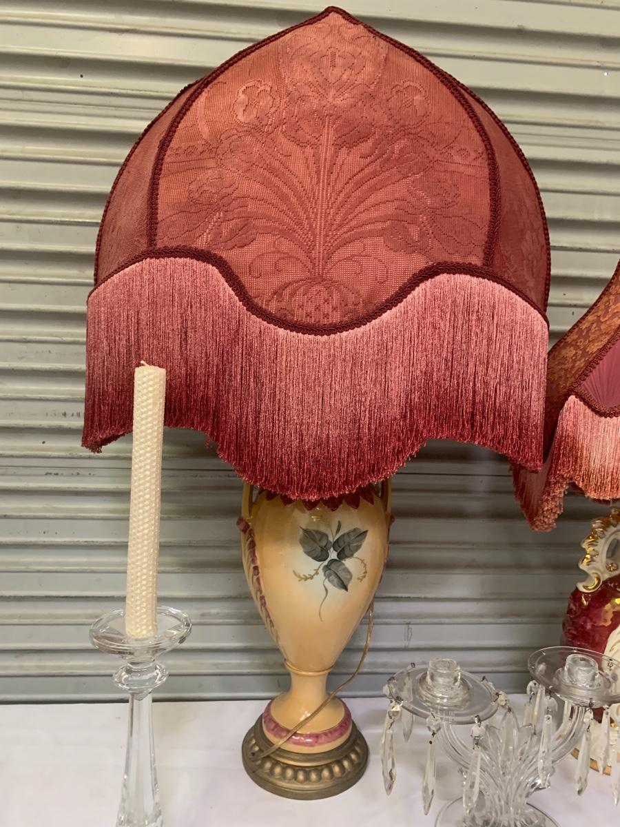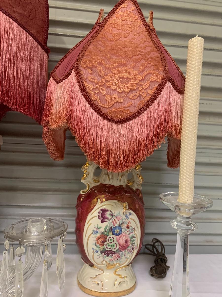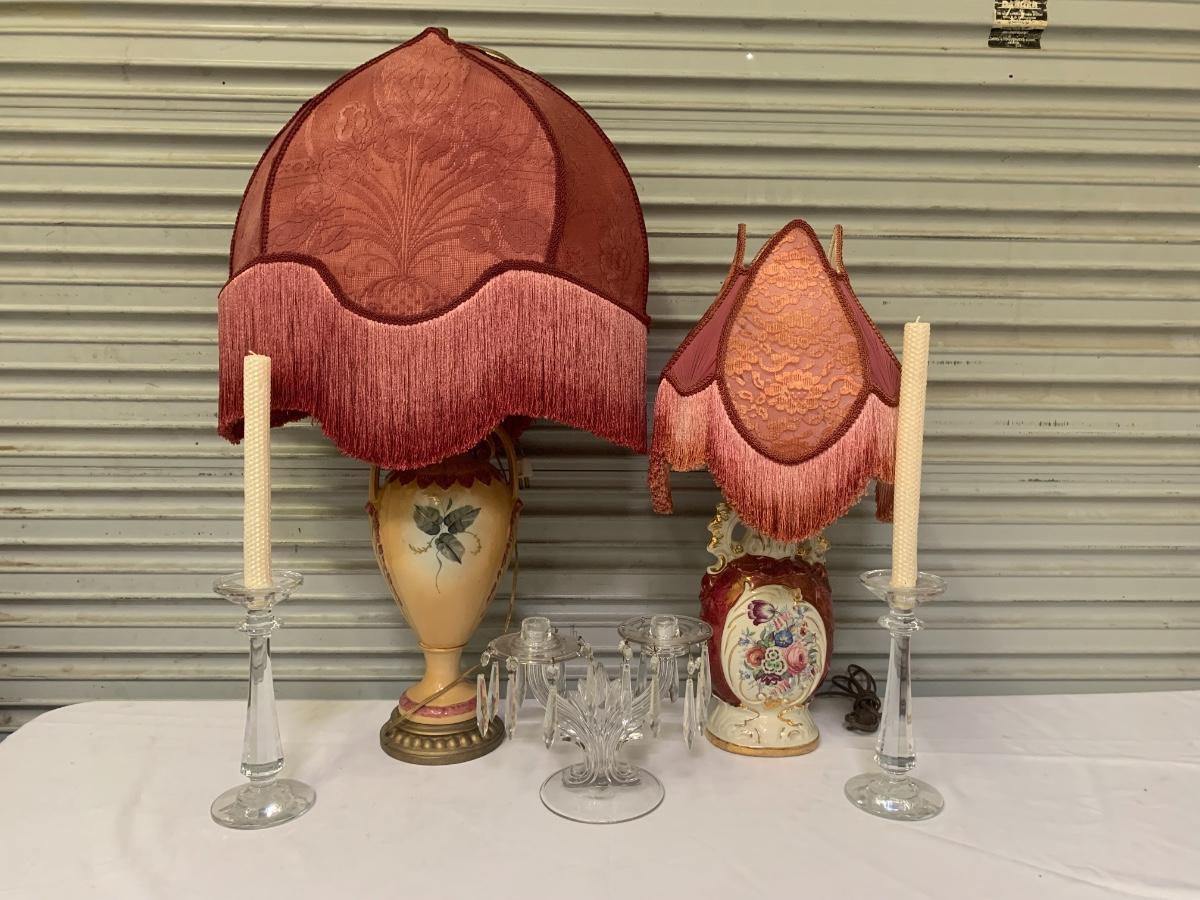 2 Fringe Lamps and 2 sets of candle holders, 2 beeswax candles with sparkles.