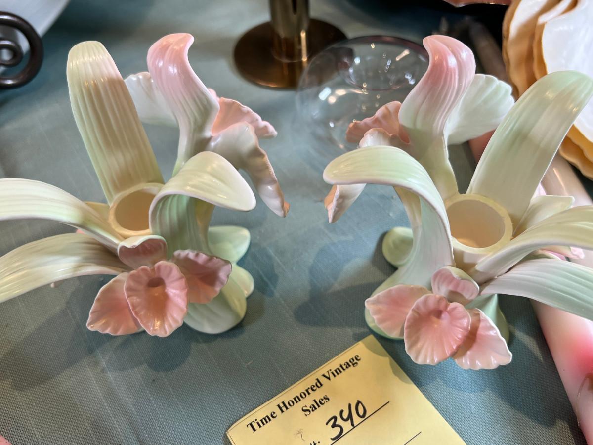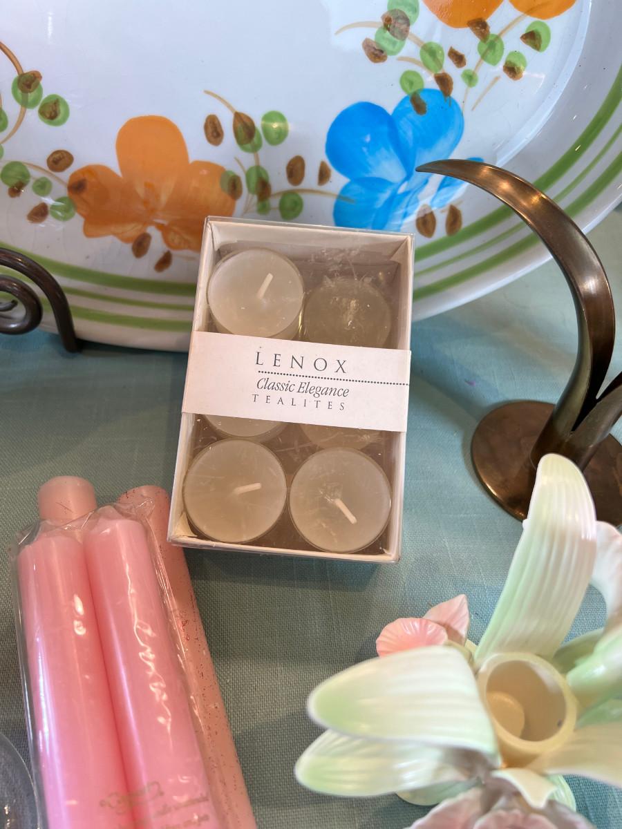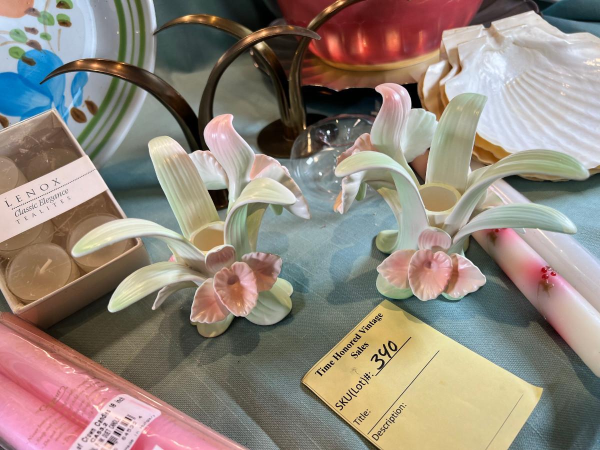 Fritz and Flyod orchid Candle holders, Shell dishes, Lenox candles