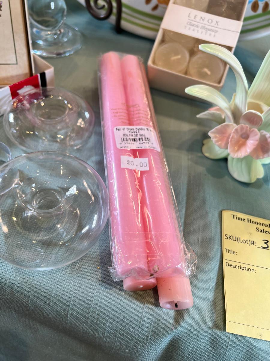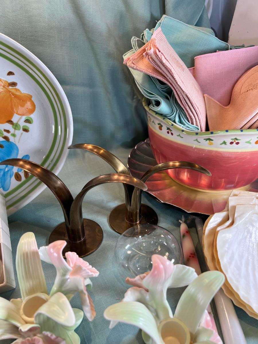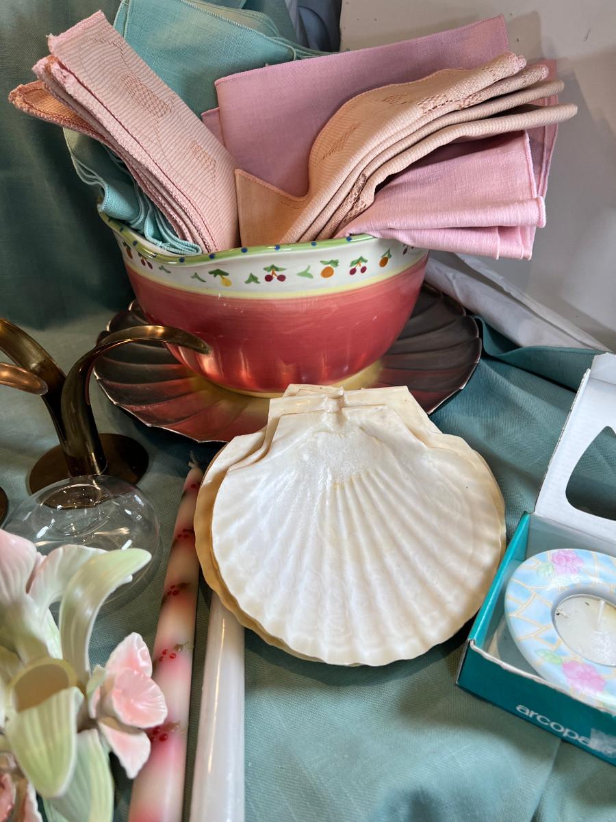 Fritz and Flyod orchid Candle holders, Shell dishes, Lenox candles