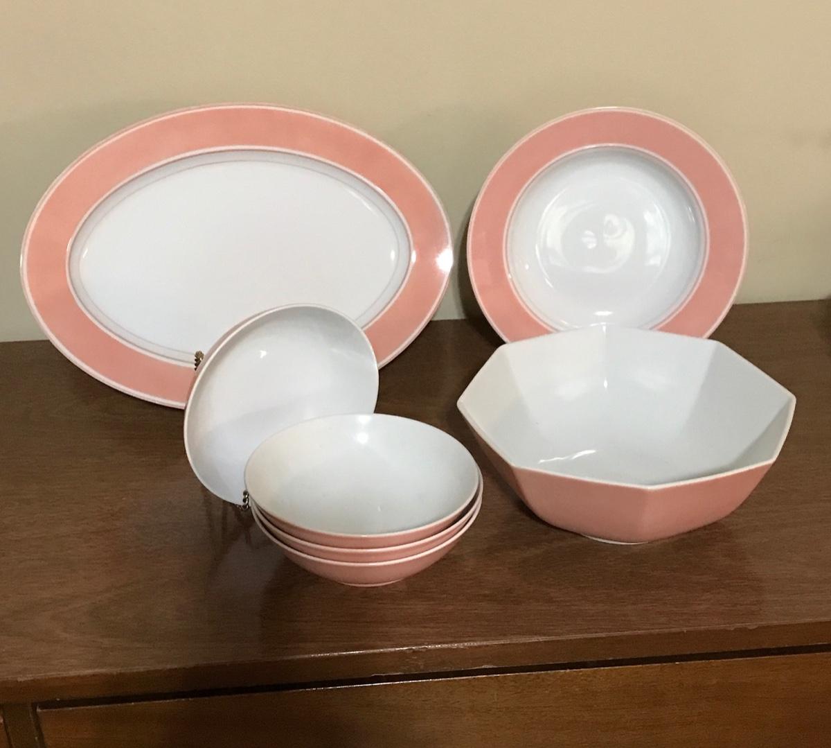 Fritz & Floyd 7 pieces "Rondelet" Pink & White Dinnerware