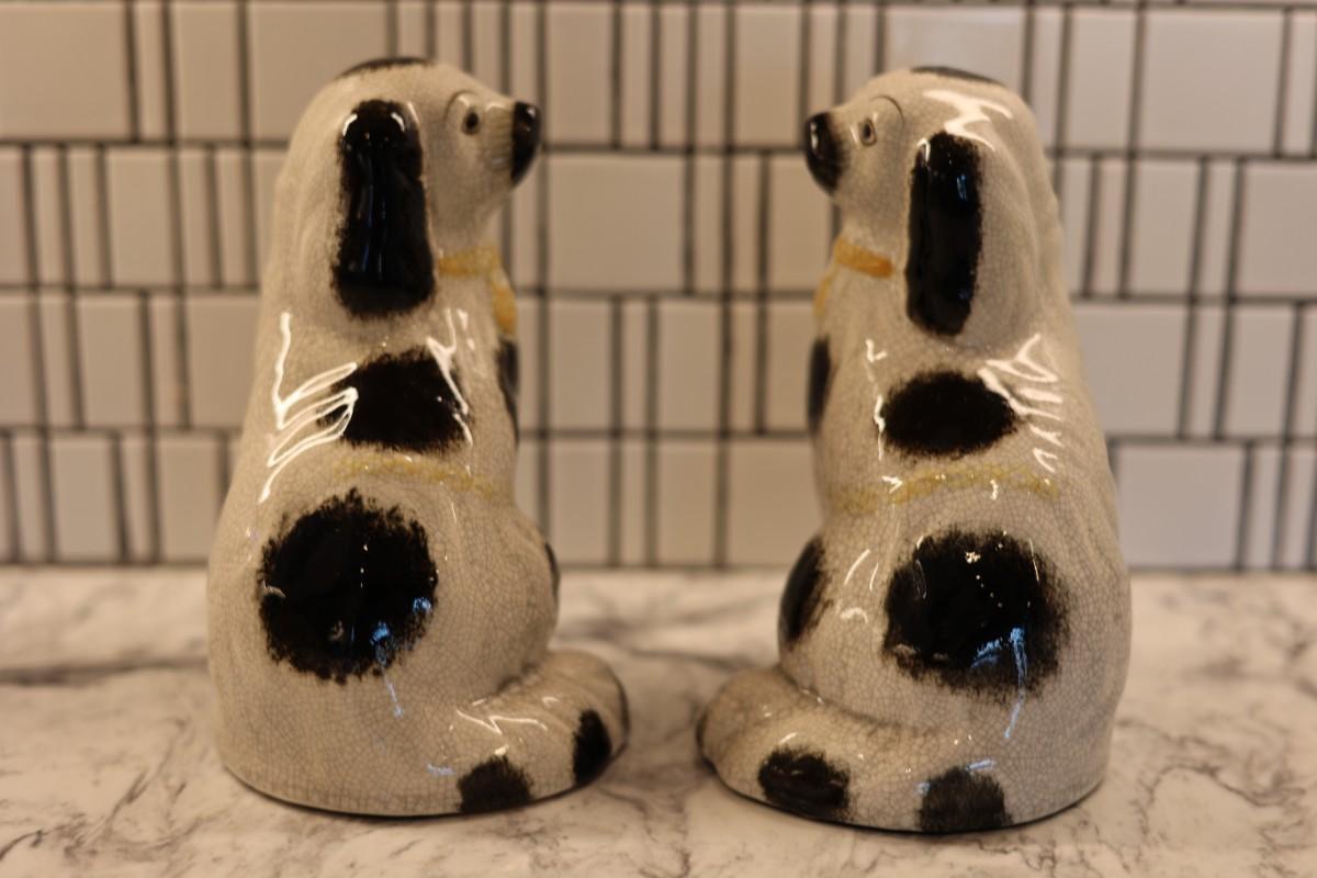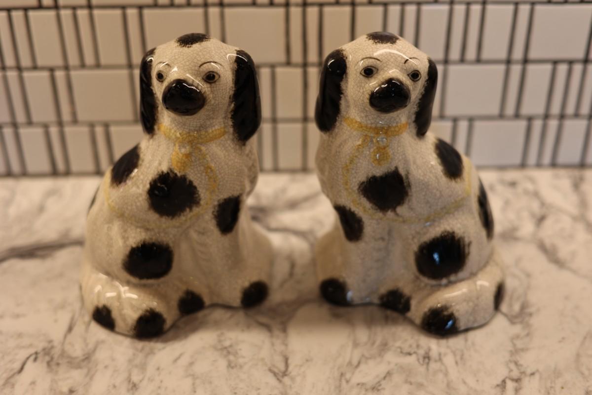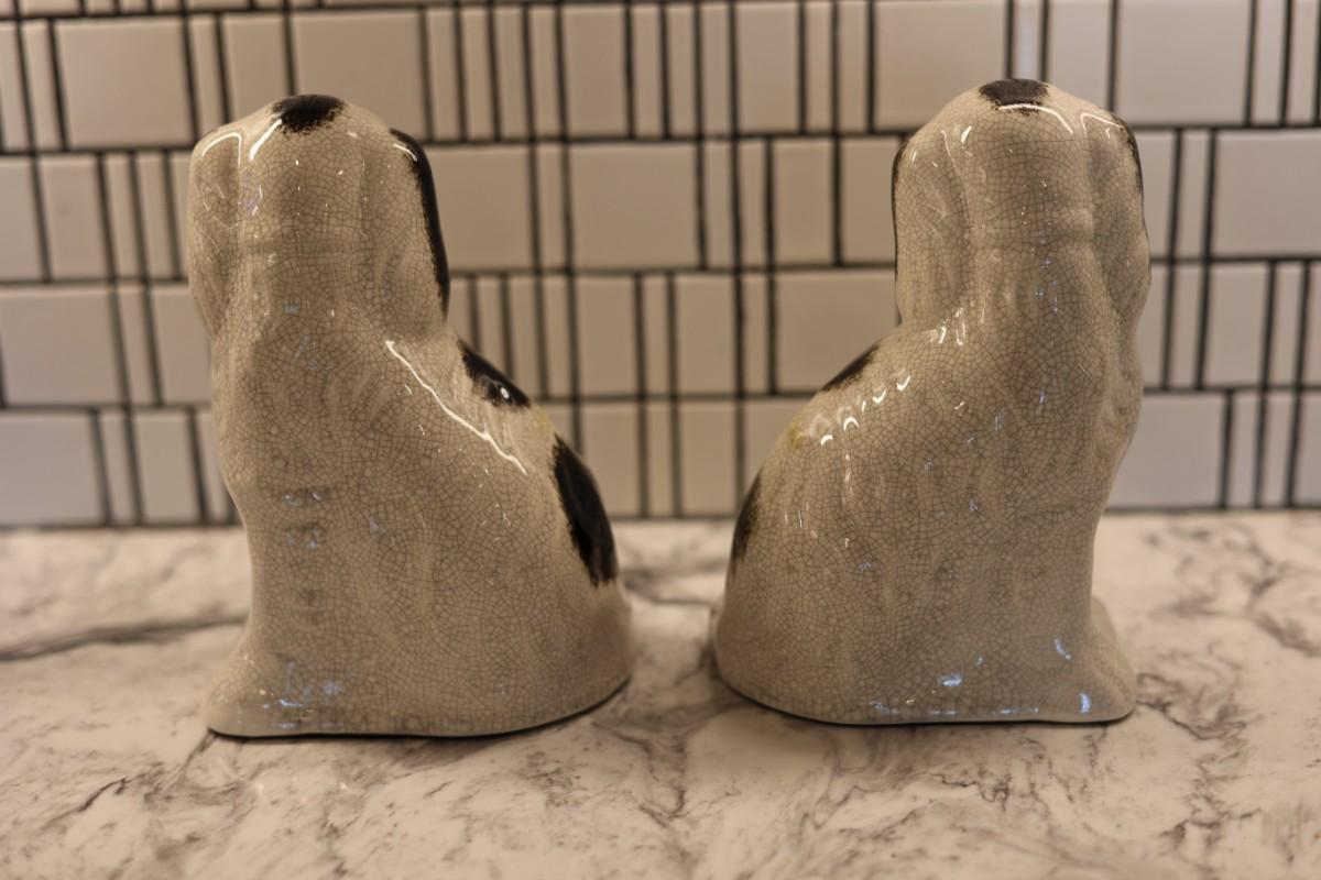 Perfect condition. Fritz and Floyd, black and white staffordshire dogs bookends or can simply be used as decor.
